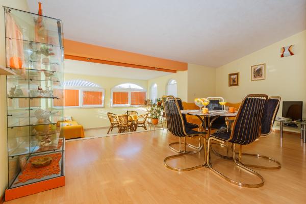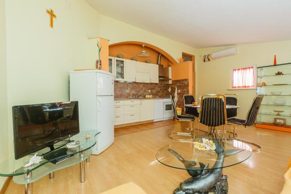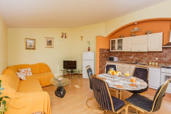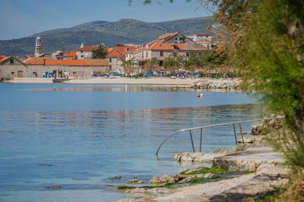 Apartament de Lucia dispune de două camere cu baie proprie. O cameră are acces la o terasa deschisa. Camera de zi și bucătăria sunt spațioase și conectate, cu o terasă închisă, această cameră este, de asemenea, cu aer condiționat. Dacă este necesar, în camera de zi pot dormi 2-4 persoane. In plus, avem posibilitatea de un pat suplimentar si patut pentru copil. Oaspeții au la curte în aer liber și grătar. Imobilul dispune de un loc de parcare. Avantajul proximității apartamentului la: mare (80 m), magazine, aeroporturi, statii de autobuz, clinici, terenuri de joacă, restaurante și cafenele. Apartamentul este situat într-o zonă liniștită, cu nici un zgomot și drumuri. Pentru iubitorii de drumeții, există proximitatea Kozjak, și pentru iubitorii de plante biblice Garden Stomorija. Ea este frumoasă și cu bicicleta de-a lungul coastei golfului, toate Castle Stafilic, la Kastel Gomilice în cazul în care există un port pentru iahturi. Orașul castelului este situat într-o poziție favorabilă în apropierea orașelor Split și Trogir și insulele din apropiere.