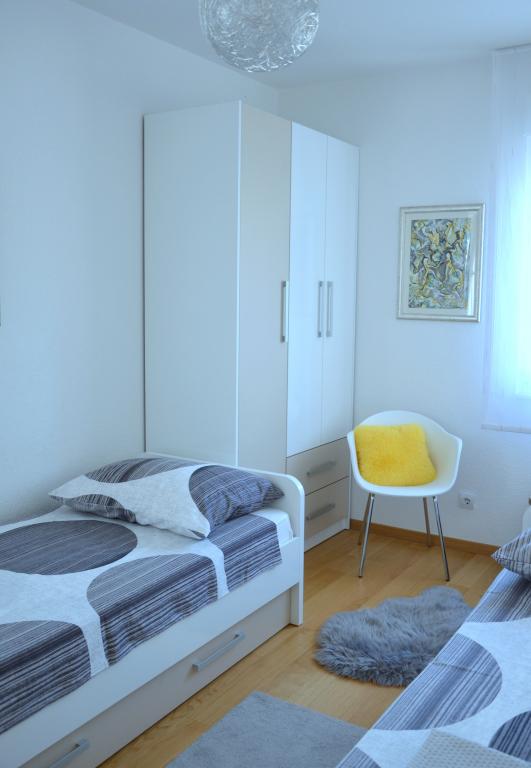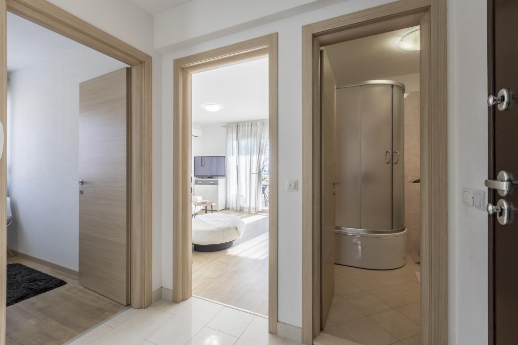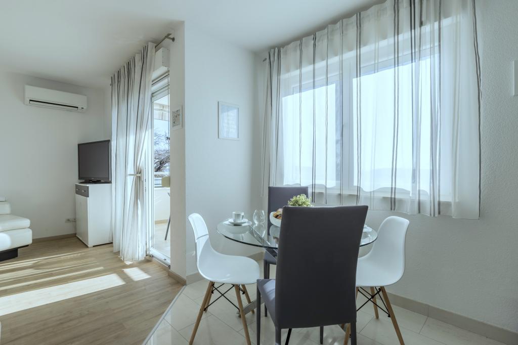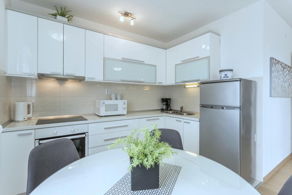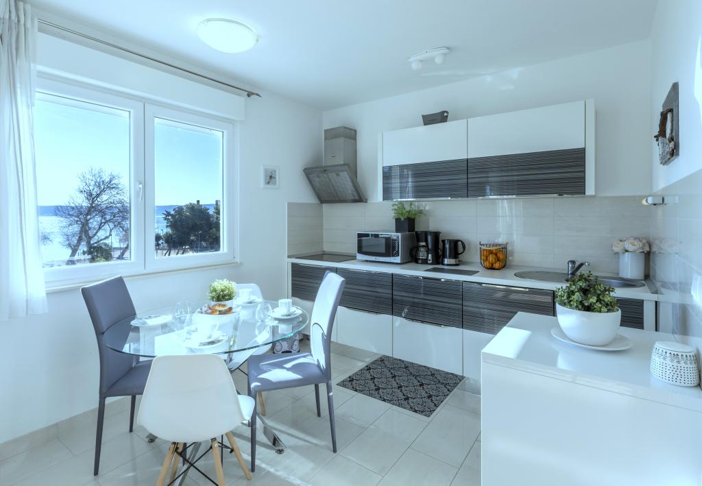 Iris Apartments au fost construite în 2013th an și include trei apartamente moderne, cu aer condiționat și interior elegant, situat în apropiere de promenada principală și loc de joacă plaže.Dječje de nisip se află la o distanță de 100 apartament metara.Prednost este aproape de marile orașe din Split și Trogir, care sunt bogate in culturală plimbări baštinom.Ljubitelji se pot bucura de plimbări lungi de-a lungul coastei trece prin șapte castele. Apartamentele includ o bucătărie complet utilată, living, doua dormitoare si baie cu dus. Toate spațiile de cazare includ un dulap, o zonă de relaxare și TV cu plasmă.