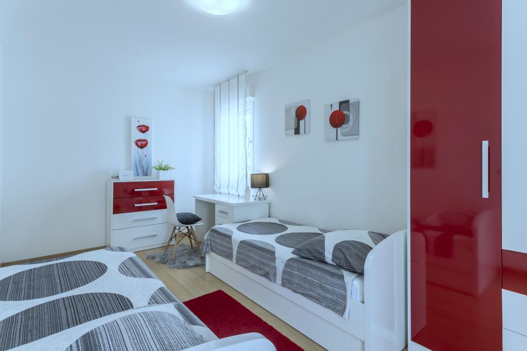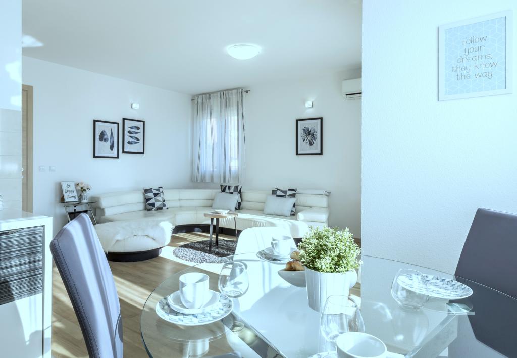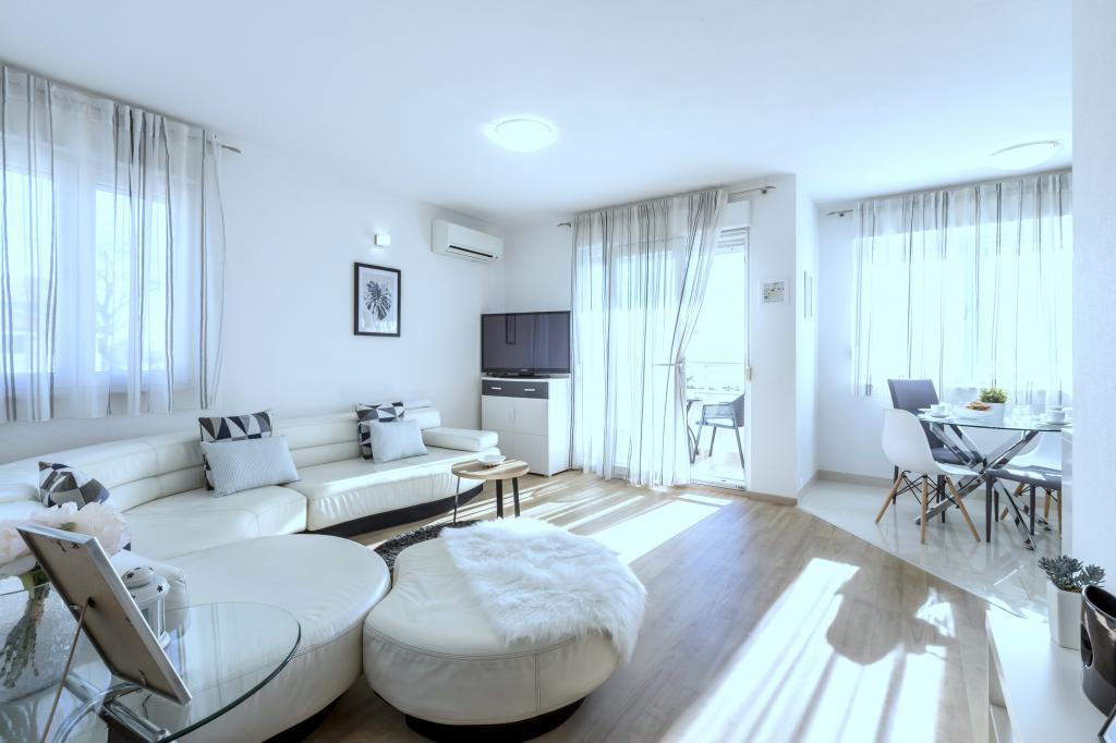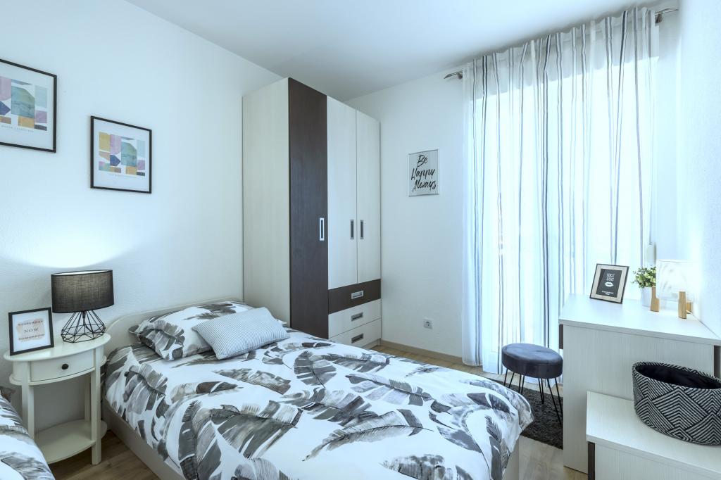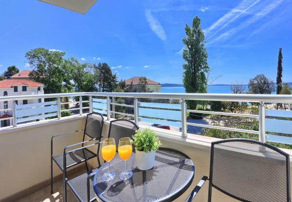 Iris Apartments au fost construite în 2013th an și include trei apartamente moderne, cu aer condiționat și interior elegant, situat în apropiere de promenada principală și loc de joacă plaže.Dječje de nisip se află la o distanță de 100 apartament metara.Prednost este aproape de marile orașe din Split și Trogir, care sunt bogate in culturală plimbări baštinom.Ljubitelji se pot bucura de plimbări lungi de-a lungul coastei trece prin șapte castele. Apartamentele includ o bucătărie complet utilată, living, doua dormitoare si baie cu dus. Toate spațiile de cazare includ un dulap, o zonă de relaxare și TV cu plasmă.