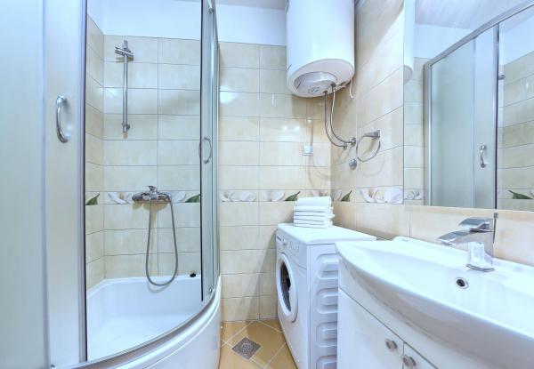 Apartament frumos, nici măcar un minut la mare. Tot ce ai nevoie este în apropiere. Cafenele, magazine, oficiu postal, farmacie. Proprietarul este foarte amabil și mereu disponibil pentru orice întrebare. Apartamentul este foarte curat si spatios. Apartamentul avea tot ce ai nevoie. Mașină de spălat și detergent, mașină de spălat vase și tablete. Când am ajuns, în frigider era apă și suc, ceea ce a fost foarte frumos la început, așa că nu a fost nevoie să mergem imediat la magazin. Apartamentul a fost, de asemenea, plăcut de mișto. Nota 10/10 si il recomand cu siguranta.