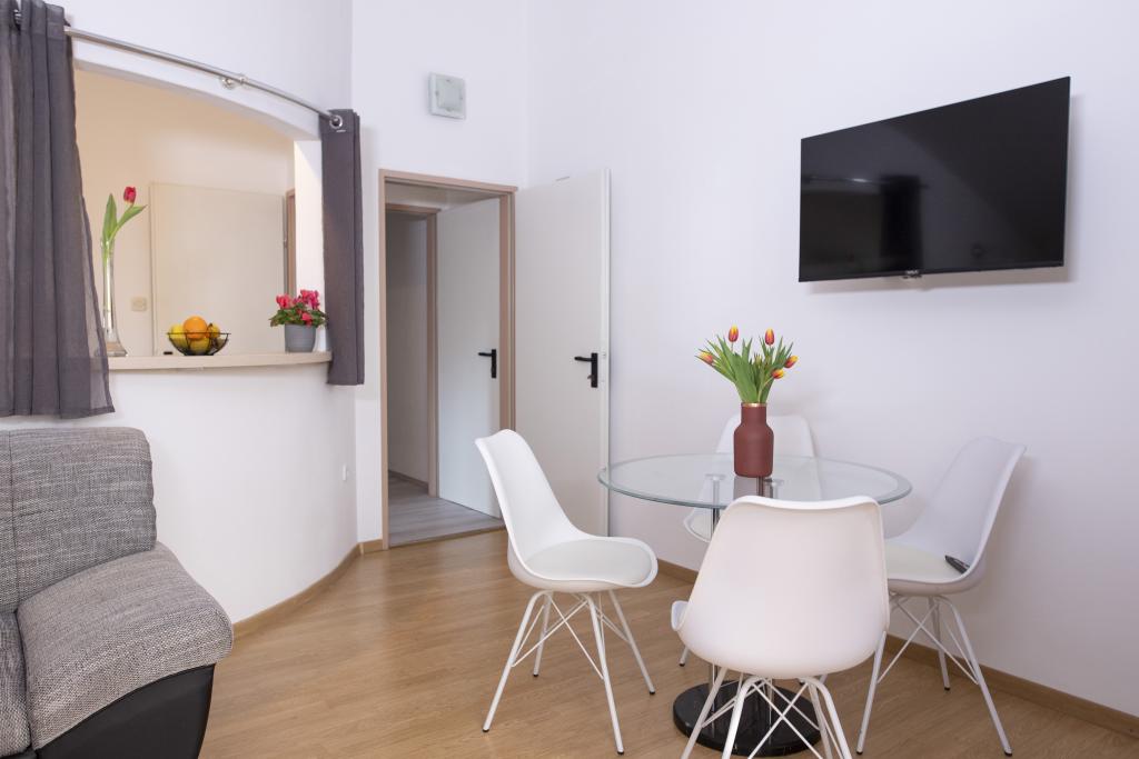 Şederea în apartament a fost foarte plăcută. Gazdele sunt foarte amabile și primitoare. Apartamentul este îngrijit, curat, dotat cu tot ce este necesar pentru o familie. Locul este linistit si potrivit pentru cazare cu copii deoarece majoritatea plajelor au umbra naturala. Stația de autobuz este chiar vizavi de apartament, așa că pentru turiștii fără mașină este mai ușor să mergi la Split sau Trogir.
