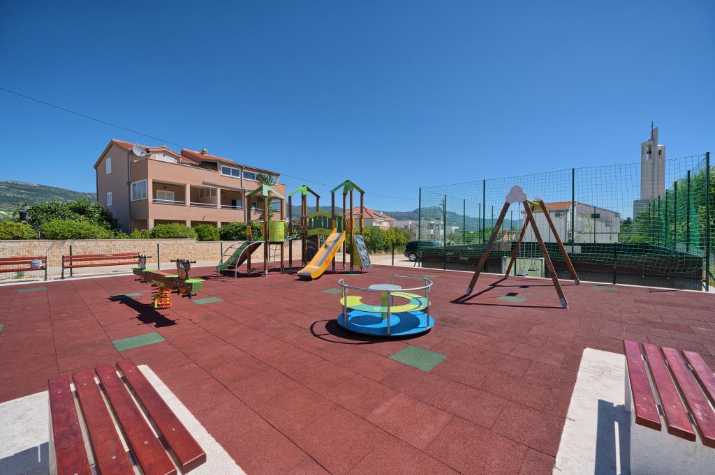 Apartamentele Samac sunt situate în apropierea orașelor aflate sub protecția UNESCO, Trogir (4 km), Split (18 km) și Solina-antička Salona (15 km). Suntem la 100 de metri de plaja organizată a hotelului. Există, de asemenea, un sat turistic Resnik cu conținut bogat de sport pentru recreere. Există, de asemenea, posibilitatea unei excursii organizate în insulele din apropiere și a unei excursii în Parcul Național Krka (50 km). Apartamentele au parcare proprie și vedere la mare. Toate acestea permit o vacanță plăcută. Ne puteti ajunge pe autostrada A1, iar iesirea de pe autostrada este la iesirea \\\\Prgomet\\\\. Apartamentul A4 1 este compus din 2 dormitoare, bucatarie, baie, 2 balcoane (15m2 8m2). Apartamentul A6 2 este format din 3 dormitoare și un living mare cu o canapea mare pentru două persoane, baie, bucătărie cu sufragerie și o terasă mare de 40 m2. Toate apartamentele au bucătărie complet utilată.