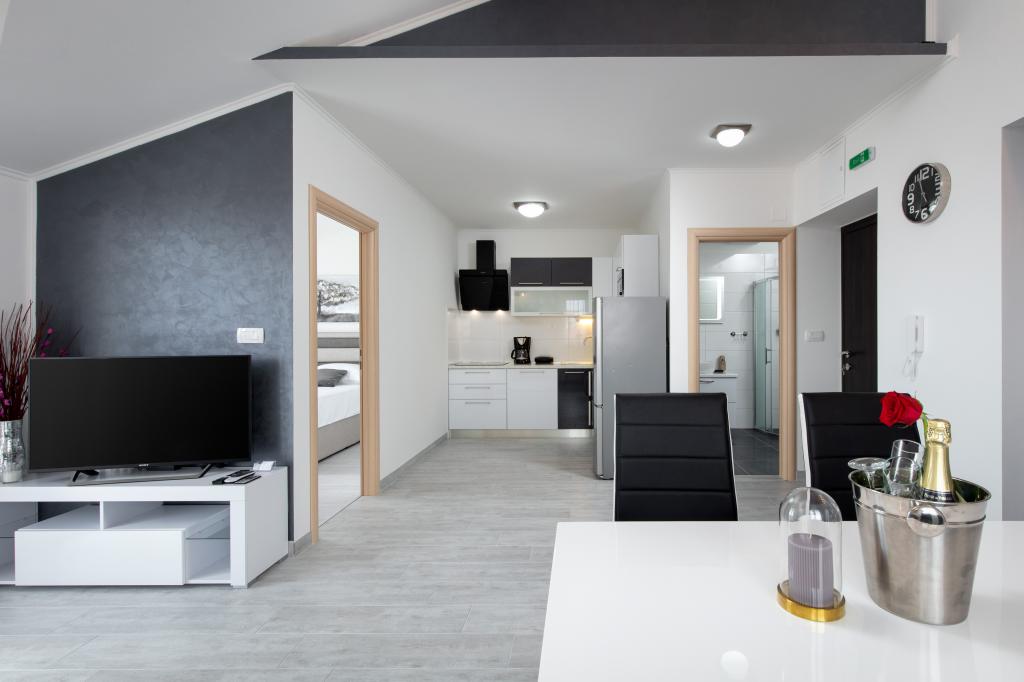 Citește mai mult Unități de cazareDacă sunteți în căutarea unui loc calm și liniștit pentru a se odihni din taxele de zi cu zi, un loc unde vă puteți bucura în totalitate amestecul magic de istorie, cultură și natură, apoi Villa Kordic, un loc perfect pentru tine si familia ta. Daca vrei sa simti o atingere de mediteraneene și petrece o vacanta de neuitat, va oferim cazare in apartamentele noastre moderne Villa Kordic, cu vederi impresionante la mare, insule și munți. În atmosfera familiară a Villa am dori să dea o mână de bun venit și doresc ca acest loc ar aminti să ne țină întoarce. Ora de plecare ideal este 10:00 și sosire după ora 14:00. Gazdele!