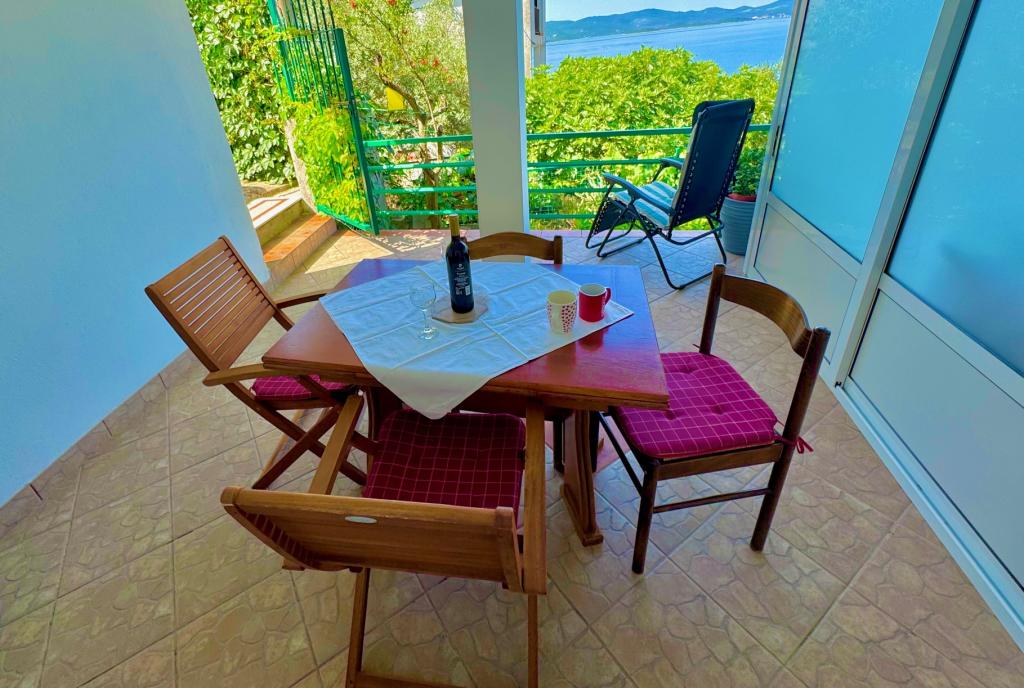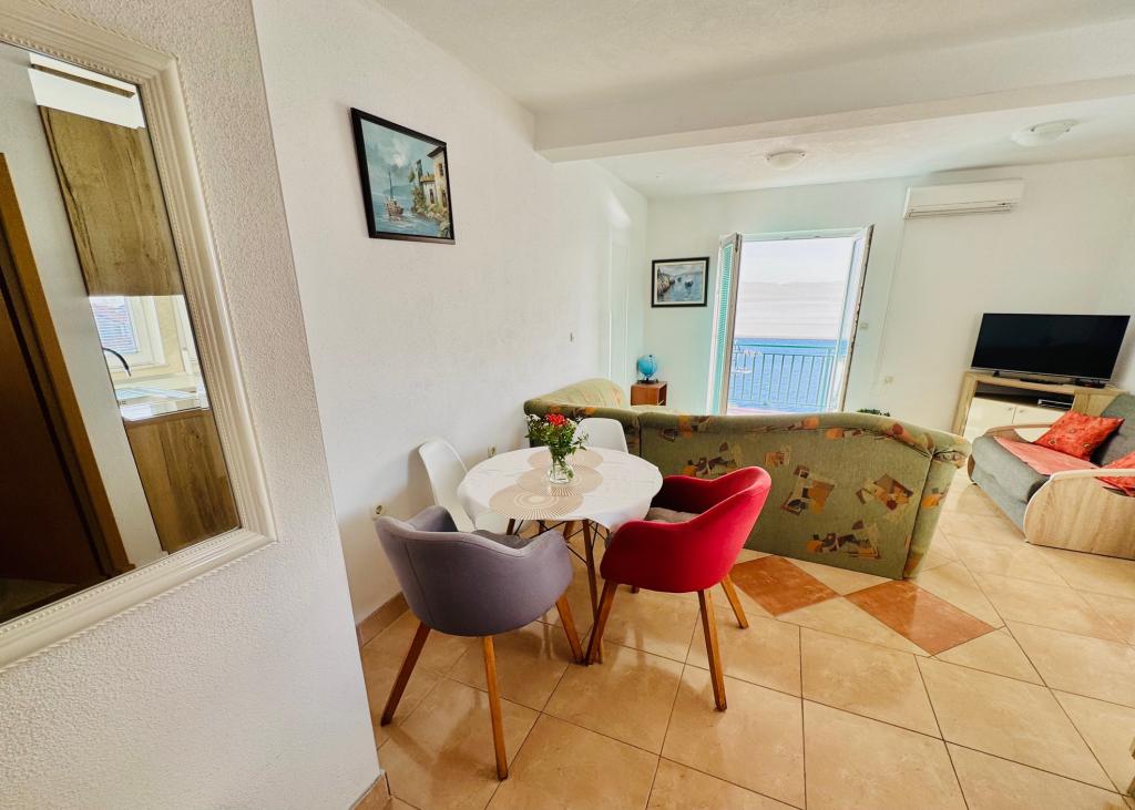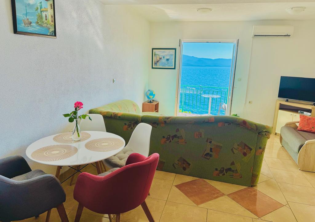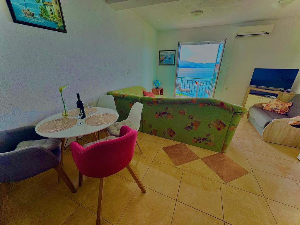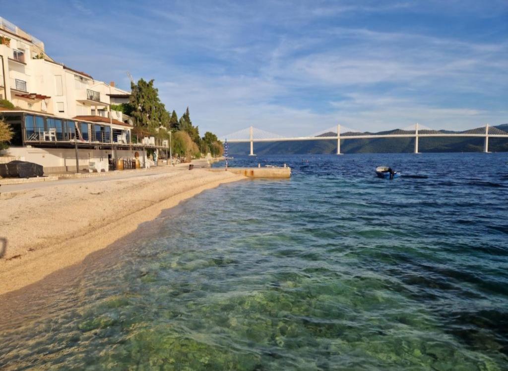 Casă la 15 m de mare la 70 km nord de DUBROVNIK, plaje cu pietriș la 1 minut de mers pe jos de casă, magazin alimentar/pâine, lapte etc./ la doar 50 m de casă, loc de joacă pentru copii 50 m etc. Toate apartamentele au terase cu vedere la mare/mese și scaune/ vedere la mare, apusuri. Apartamentele sunt mobilate complet si modern, dotate cu aer conditionat, internet WIFI gratuit, TV SAT, loc de parcare sau garaj pentru o masina, gratar exterior si gradina. Apartamentele au: dormitor, bucatarie completa cu sufragerie, living unde se afla un pat suplimentar, baie cu dus, toaleta (masina de spalat rufe, uscator de par, lenjerie de pat si prosoape. Pentru inchirieri apartamente mai lungi oferim reducere de 1%/14 saptamana). lenjerie de pat curata dupa 7 zile Restaurante BRIDGE si Storija cu peste si alte specialitati la 50 m de casa precum si crame renumite, promenada la mare, loc de joaca pentru copii la 100 m de casa Bine ati venit!