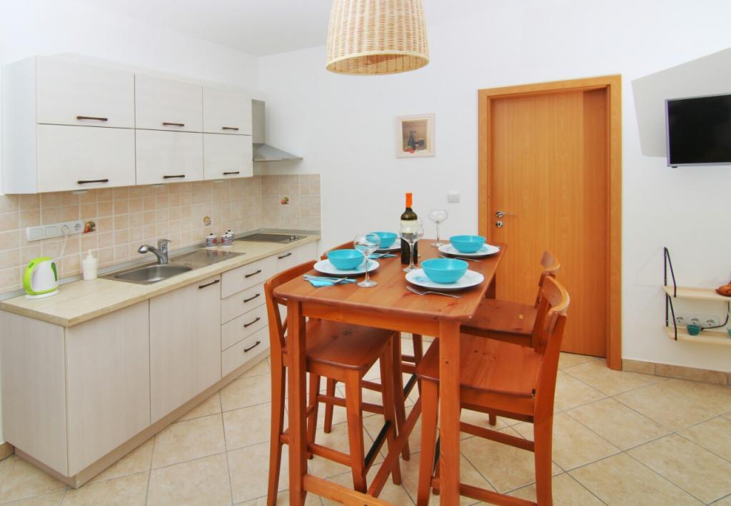 Apartamentul Eli este un apartament luminos și confortabil, cu balcon/loggia cu vedere la mare, la doar 50 m de plajă. Apartamentul este situat într-un sat liniștit, Smokvica Krmpotska, care are un total de aproximativ 50 de case și 15 locuitori permanenți, și se află la doar 7 km de Novi Vinodolski și 11 km de Senj. Smokvica este un loc ideal pentru persoanele care doresc să-și petreacă vacanța în liniște, departe de ritmul agitat al vieții și să se bucure de ciripitul păsărilor, sunetul valurilor și de o liniște frumoasă în fiecare zi. Apartamentul Eli este ideal pentru un sejur de două persoane, care se află la mică distanță de diverse opțiuni din apropiere. Intrarea în apartamentul Eli se face printr-un hol cu un mic dulap care duce la bucătărie și sufragerie, conectate la living, dormitor și baie. Un loc special în apartament este balconul/loggia, care este dotat cu o masă pentru 4 persoane și un grătar electric. Apartamentul este dotat cu aer condiționat, Wi-Fi, televizor, cuptor cu microunde, frigider cu congelator, prăjitor de pâine, fierbător electric, masă și fier de călcat, uscător de păr, prăjitor de pâine.....