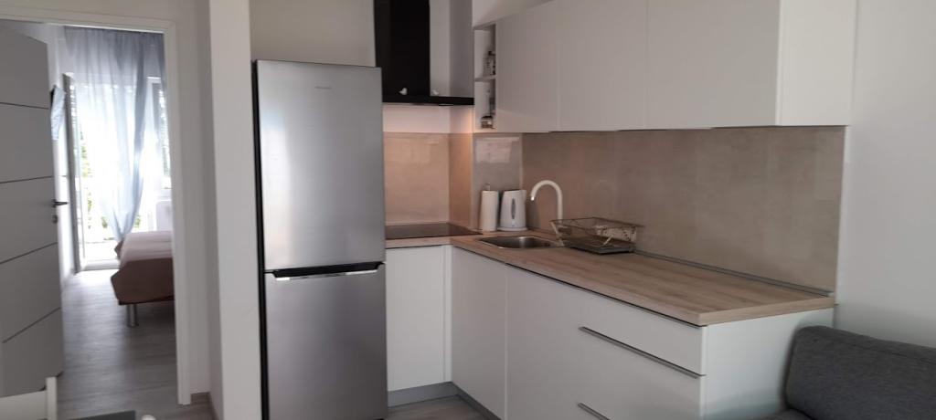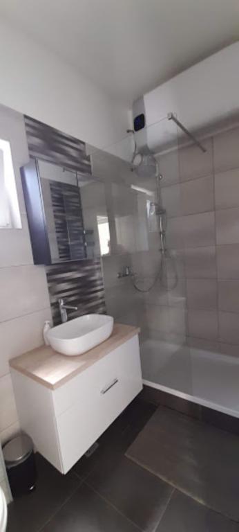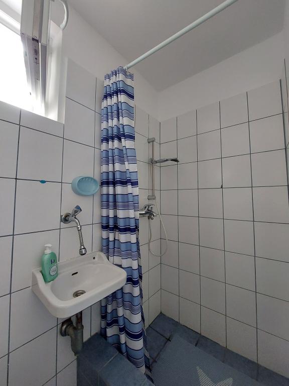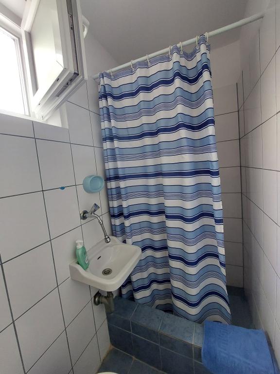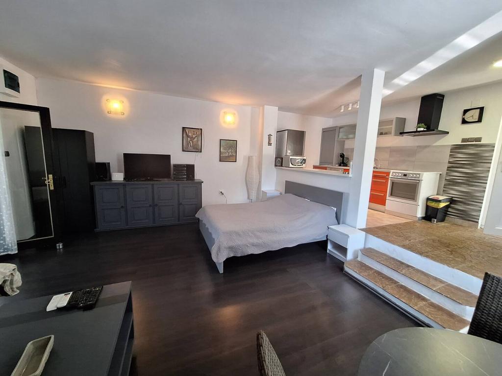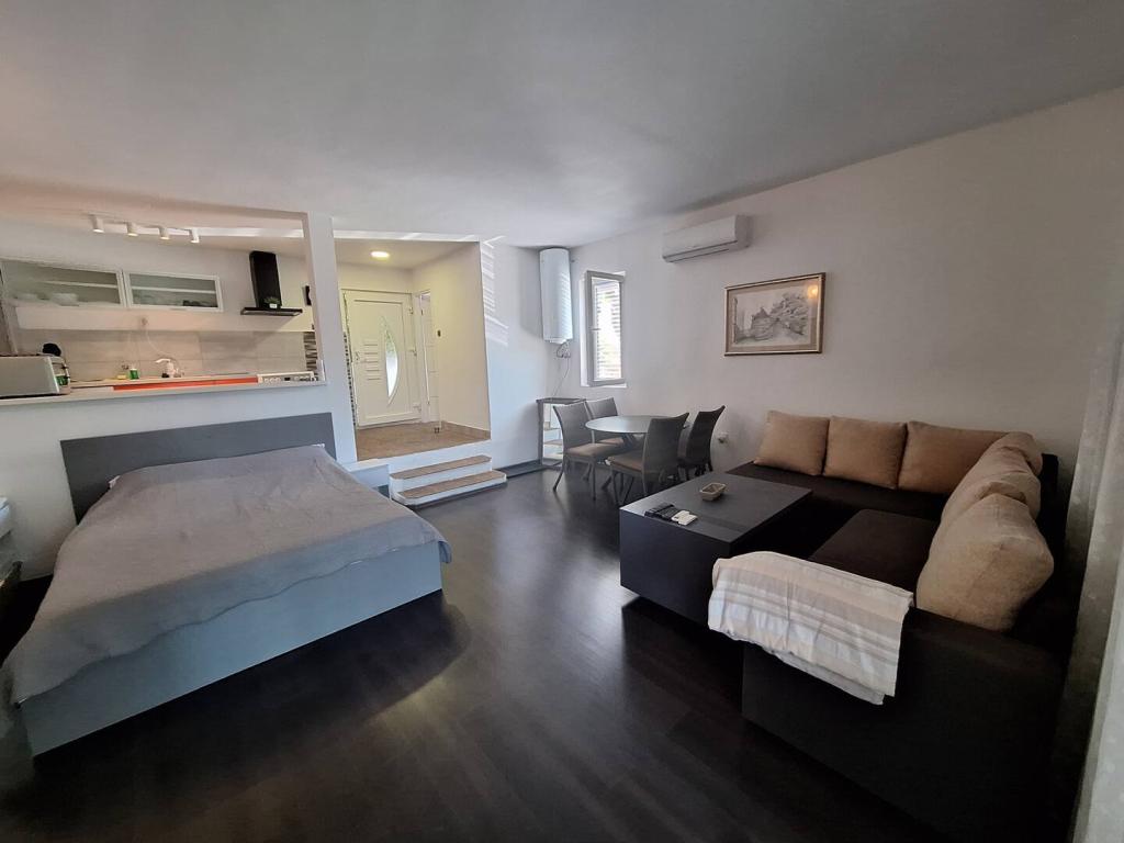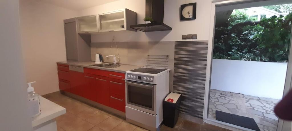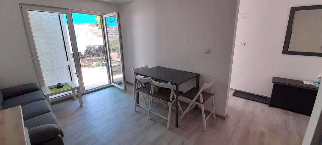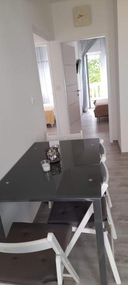 Casa noastră din Klimno din golful Soline, cunoscută pentru noroiul său vindecător și peștera Biserjuka, este formată dintr-o garsonieră pentru 2 persoane la parter cu o terasă de 20 m2 și un apartament la etajul 1 cu intrare separată și 2 terase pentru 4 persoane cu 3 stele într-un loc liniștit, înconjurat de natură. Avem o grădină cu un grătar pe lemne pe care îl poți folosi gratuit și un duș în aer liber. Suntem la 250 m de mare. Apartamentul mare are un hol de intrare, o baie cu dus mare, 2 dormitoare fiecare cu televizor, aer conditionat si acces la o terasa cu masa si scaune pentru sezut si sezlonguri, o bucatarie cu living cu acces la o alta terasa cu mobilier de relaxare. Apartamentul studio de 50 m2 are o baie mică și o terasă cu masă și scaune și șezlong. Bucătăriile din ambele apartamente au frigider, congelator, cuptor cu microunde, plită vitroceramică, hotă, prăjitor de pâine, ceainic, filtru de cafea, toate tacâmurile și uscător de păr. WIFI este gratuit. Animale de companie la cerere. Utilizarea gratuită a lenjeriei de pat, prosoapelor, aer condiționat.