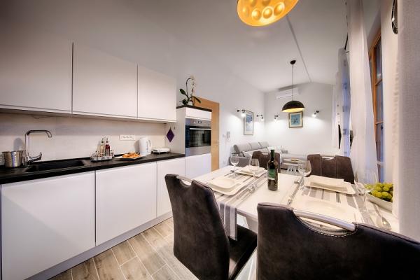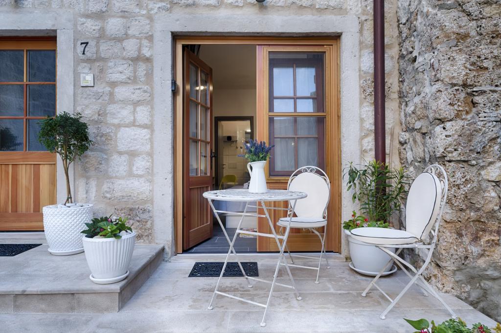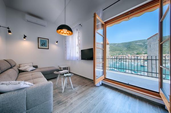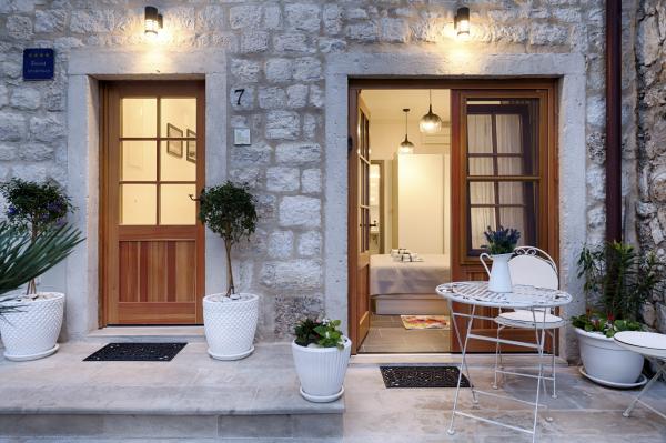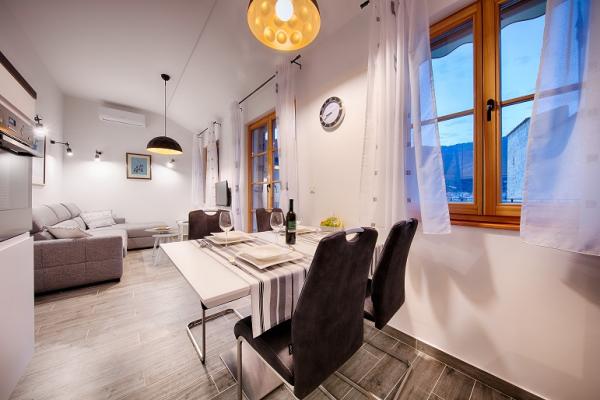 Apartamentul este situat la etajele 2 si 3 intr-o casa veche de piatra din secolul al XVIII-lea, primul rand la malul apei si la 20 de metri de mare. La doar câțiva pași se află Comuna, un turn de piatră, simbolul Komiža. Cea mai apropiata plaja este la doar 100 de metri distanta La etajul doi sunt 2 camere duble, fiecare cu baie proprie; La etajul al treilea se află o bucătărie complet utilată, sufragerie și un living care sunt conectate la o terasă cu vedere frumoasă la golf si sufrageria sunt dotate cu aer conditionat. Există o conexiune wireless WI-FI în apartament. Casa a fost renovata in 2017 dupa cele mai inalte standarde, cu sfatul conservatorilor, folosind materiale naturale. Camera Demaria a fost recent renovată în 2019 și are baie proprie. Este situat la parterul casei. Camera este dotata cu televizor, aer conditionat, internet wireless si frigider. În fața camerei se află o mică terasă cu masă și scaune, care este la dispoziția oaspeților.