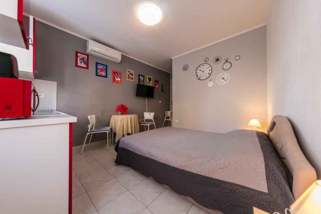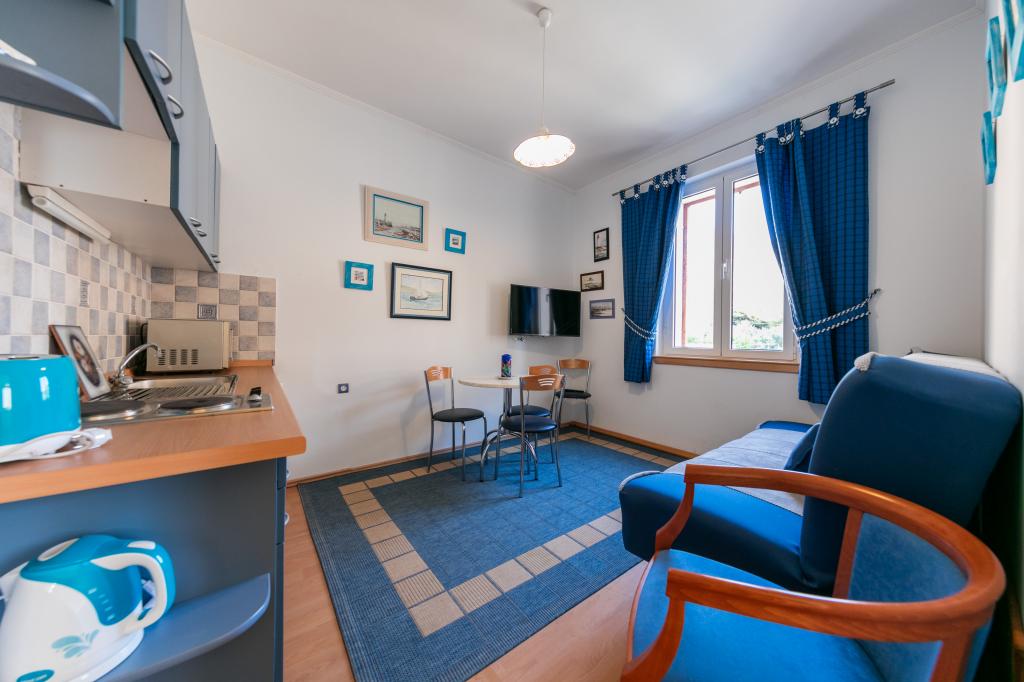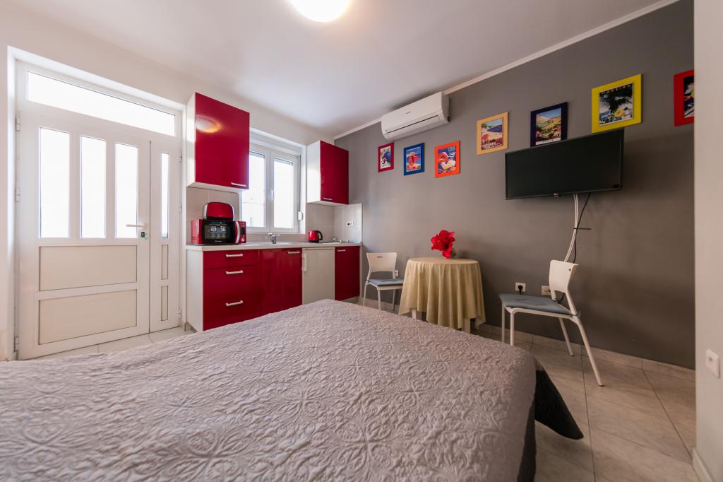 Casa Kastelani a fost construită în 1939, renovată de mai multe ori, iar în 2016 a primit o fațadă termică, deci este plăcut să stați în lunile fierbinți de vară. Vă oferim 3 apartamente și 1 garsonieră numită după nepoții noștri: Alen, Izabela, Roko și Sofia. Studio Studio Sofia și apartamentul Alen sunt situate la parter și sunt destinate unui sejur pentru 2 persoane; apartamentul Izabela este situat la etajul 1 (2 + 1) și apartamentul Roko la etajul 2 (2 + 1). Toate unitățile sunt dotate cu aer condiționat, oferă internet wireless, parcarea publică este situată la 100m de casă, de asemenea parcare privată (rezervare + taxă). Terasa pentru plajă și relaxare este situată la etajul 1 al clădirii noastre și este disponibilă pentru oaspeții de la etajul 1 și 2. Apartamentele Kastelani sunt situate într-o locație liniștită, la 300 m distanță de centru, frumoasa plajă "Kamenice" și plaja orașului "Lucica" și centrul de scufundări B-24.