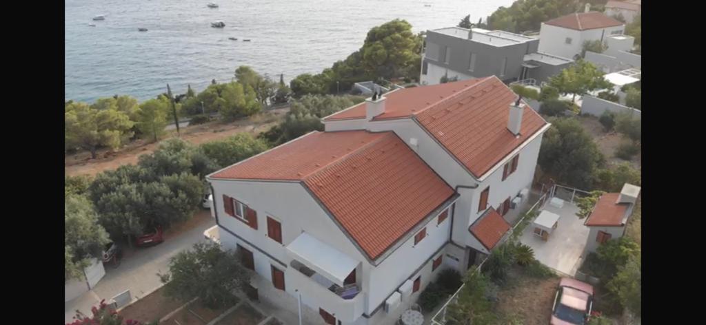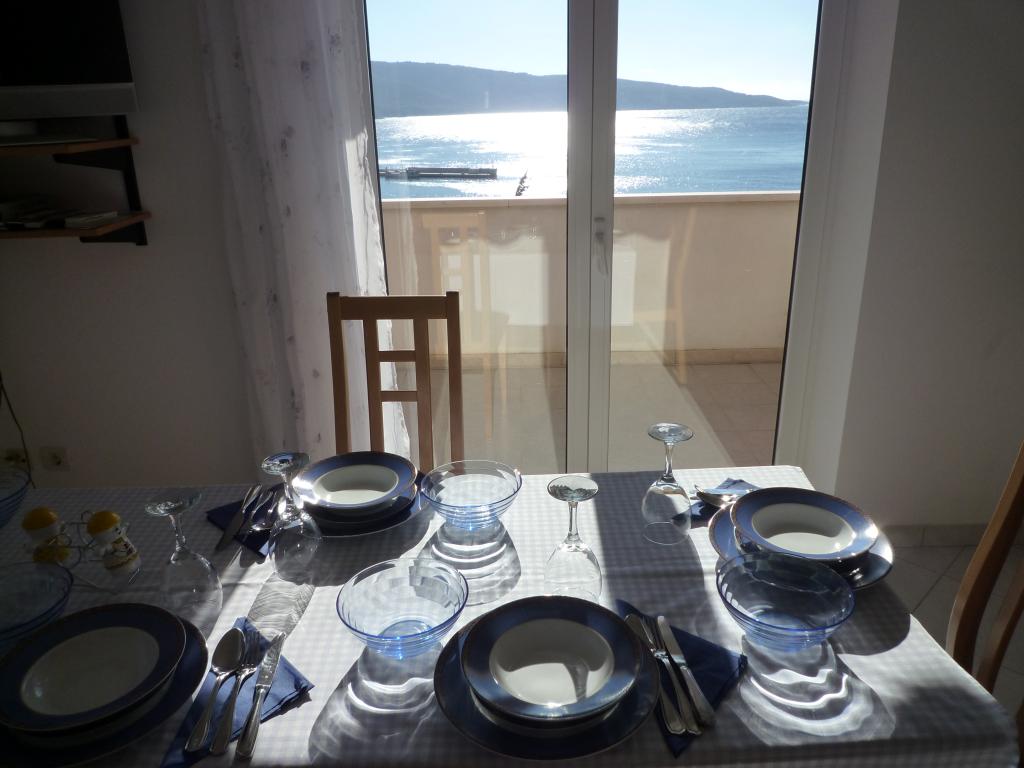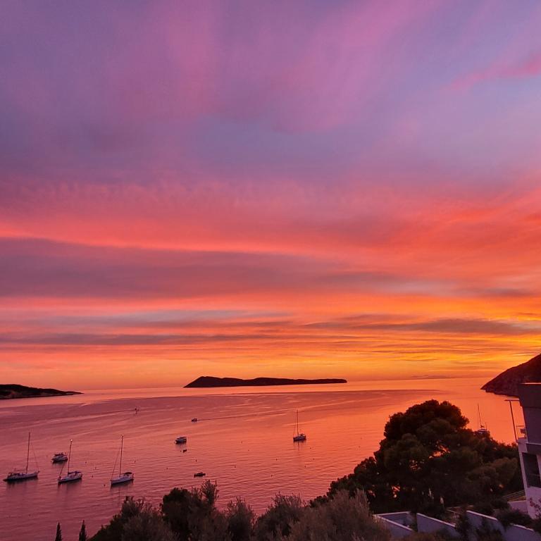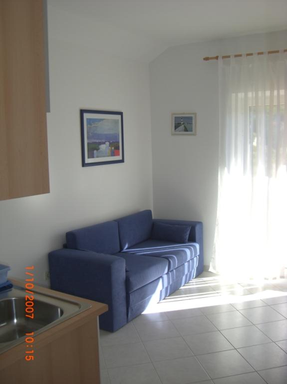 Casa Kolelastra este situată în mijlocul vegetației, pe dealul de deasupra plajei orașului (la 5 minute de mers pe jos prin parcul de pini până la plajă și la doar 8-10 minute de mers pe jos până la Riva, adică până la centru). Datorită locației favorabile, toate apartamentele din casa Kolelastra au o vedere largă asupra întregului golf până la munții italieni, care poate fi admirată în condiții meteorologice bune. Fotografiile atașate reprezintă vederi autentice de pe balconul unui apartament individual și suntem bucuroși să le împărtășim cu dumneavoastră, deoarece noi înșine suntem adesea fascinați de culorile aprinse sau argintii din fața noastră. Apartamentele sunt dotate cu tot ce are nevoie o persoană pentru un sejur și o vacanță plăcută (de la prosoape de bucătărie la congelatoare). Casa are parcare proprie în mijlocul vegetației și un rezervor de apă de 100 m3, astfel încât, în caz de vreme uscată, oaspeții nu vor simți în niciun fel o posibilă scădere a nivelului apei. Ceea ce subliniază în mod special oaspeții în recenziile lor sunt: o priveliște frumoasă de pe balconul tuturor apartamentelor, curățenie impecabilă, dotări funcționale și gazde prietenoase.
