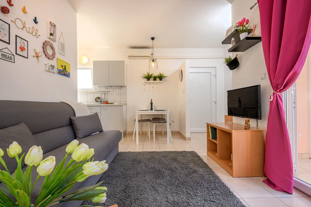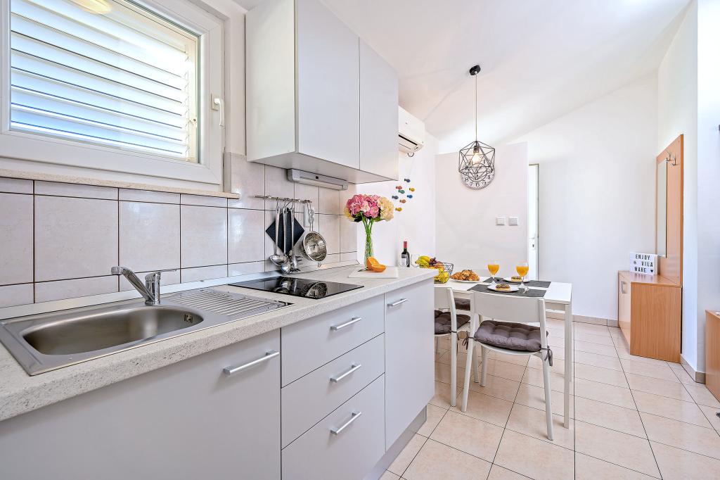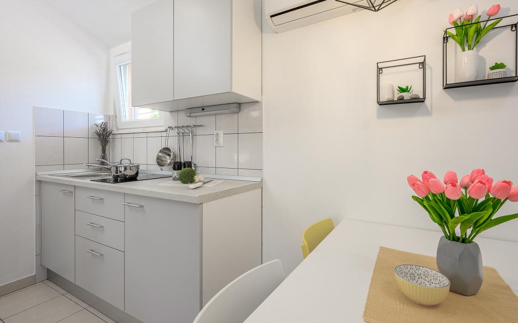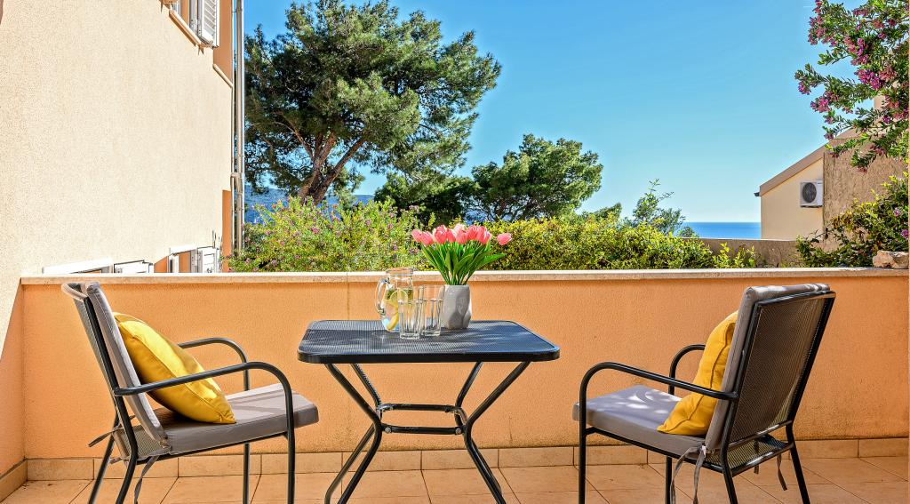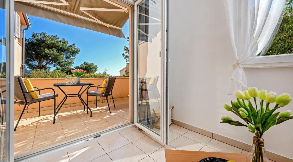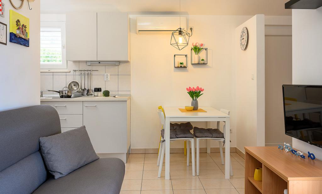 Oferim 6 apartamente recent renovate (2 1) cu parcare privată, intrări separate și balcoane care oferă vedere la golful mării și insulele din apropiere. Suntem situati la cateva minute de centru si plaja orasului. Ideal pentru relaxare într-un mediu plin de cântece de păsări și sunet de valuri.
