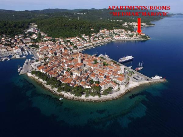 Soția mea și cu mine am fost călătoresc în Korcula, la sfârșitul lunii septembrie și au avut noroc de a fi rezervat Medmar Marovic. Camera are tot ce ai nevoie cu facilități de duș bune și o mică bucătărie. Ne-a placut in special balconul cu vedere incredibila a muntelui peste apă și orașul vechi Korcula. Într-adevăr uimitoare, pentru a face o experiență foarte memorabil. Noi recomandăm cu tărie.