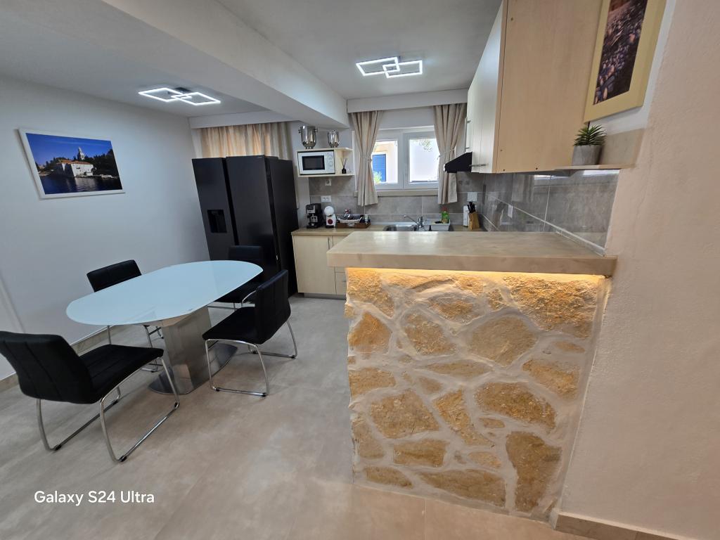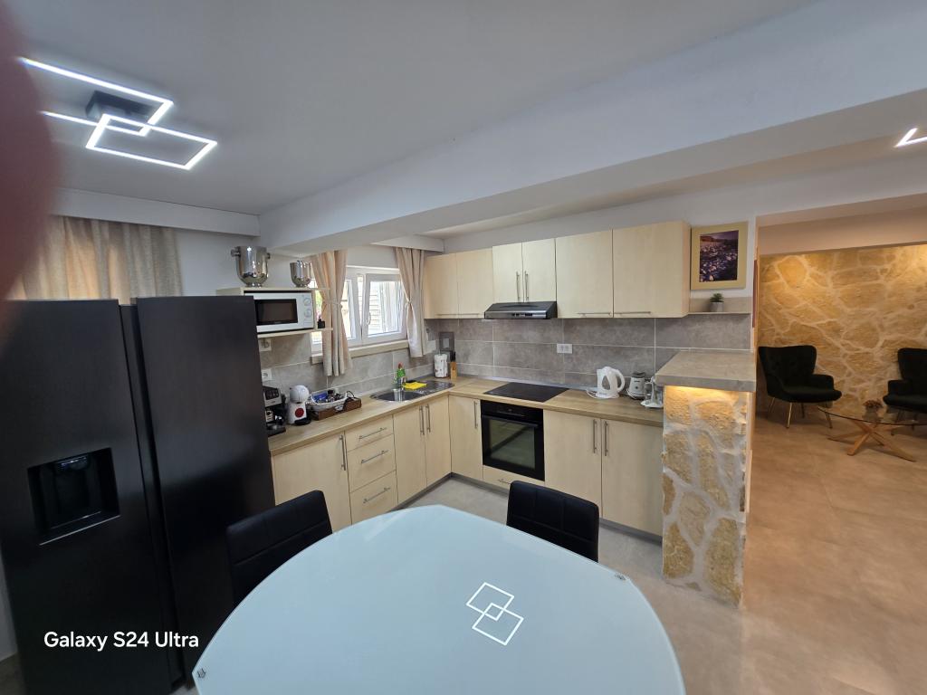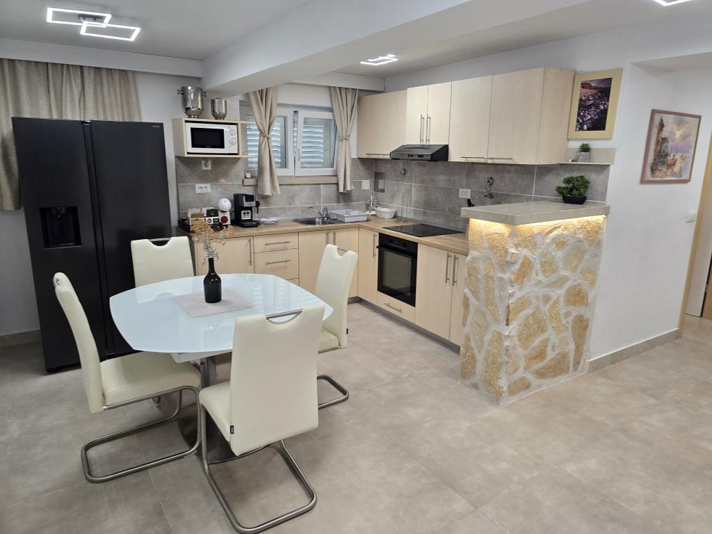 Apartamentul ID 759 are 86 m2. Mobilat luxos și situat într-o zonă frumoasă a orașului Korcula, lângă mare. Apartamentul are piscină proprie, două terase mari și o terasă pentru plajă. Apartamentul are absolut tot ce ai nevoie pentru o vacanță. Două unități de aer condiționat, o baie mare, două televizoare, un spațiu frumos și confortabil, două camere și ai propriul loc de parcare pentru vehiculul tău. Te afli la literalmente 5 minute de mers pe jos de centrul orașului și la 2 minute de plajă. Grătar pe terasă pentru plăcerea ta gastronomică. Apartamentul are mașină de spălat și uscător, mașină de spălat vase, două aparate de cafea, prăjitoare de pâine, aparate de stors suc etc. Apartamente complet utilate modern, într-o zonă liniștită a orașului Korcula, situată în primul rând la mare; Facilitatea este situată la 5 minute de mers pe jos de centrul orașului, iar plaja și parcarea sunt chiar în față. Apartamentele și camerele ID 760 și ID 761 și camerele ID 5589 și ID 5599 sunt luxoase. Terasa din spate este, de asemenea, acoperită cu o pergolă și o prelată. Aveți propria parcare. Parcarea pentru vehicule este doar pentru apartamente.