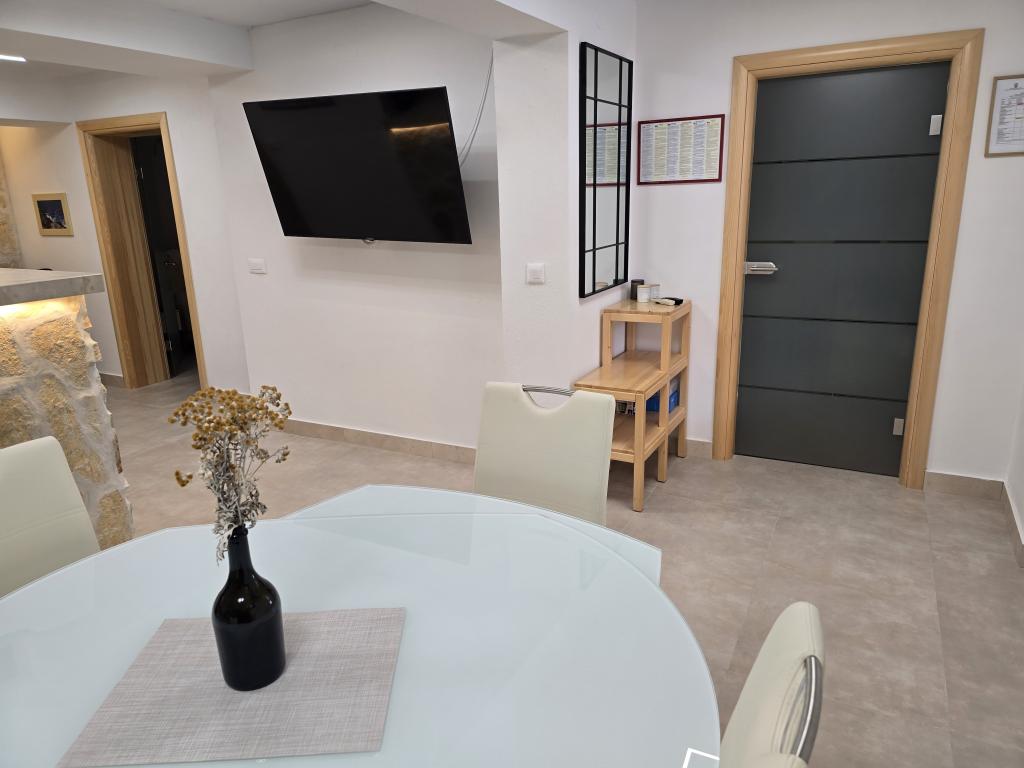 Piscina din imagini este destinată exclusiv oaspeților din apartamentul A4 ID: 759. Animalele de companie nu au voie să înoate în piscină. În acest caz, oaspetele plătește costul schimbării complete a apei și al curățării piscinei. Orice daună cauzată de oaspete în apartamente și camere se taxează. Ordinea și liniștea casei trebuie respectate, aspect evidențiat în toate zonele. Lenjeria de pat, prosoapele și cârpele de bucătărie sunt furnizate de noi și nu este nevoie să le aduceți cu dumneavoastră. Trebuie să vă aduceți propriile prosoape de plajă. Curățenia apartamentelor și camerelor se taxează separat de prețul cazării (curățenia apartamentului ID 759 50 de euro; curățenia apartamentelor ID 760 și 761 40 de euro și a camerelor 30 de euro). Parcarea pentru mașini este asigurată doar pentru apartamente și doar pentru camere, dacă utilizatorii apartamentelor nu au vehicule, astfel încât utilizatorii camerelor pot folosi propria noastră parcare. Contactați-ne prin e-mail: marovicp@yahoo.com sau prin telefon mobil: +38598244974