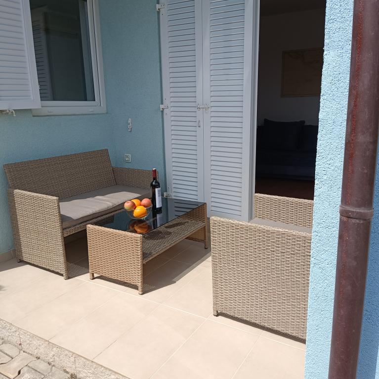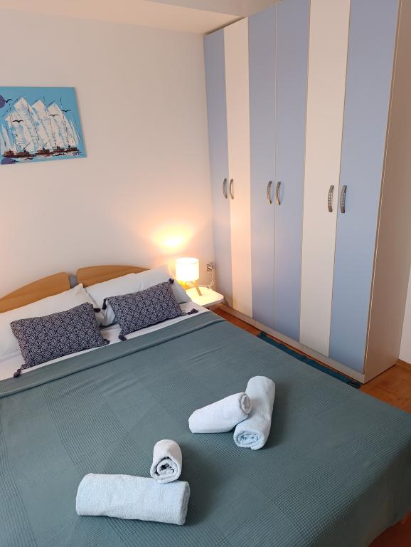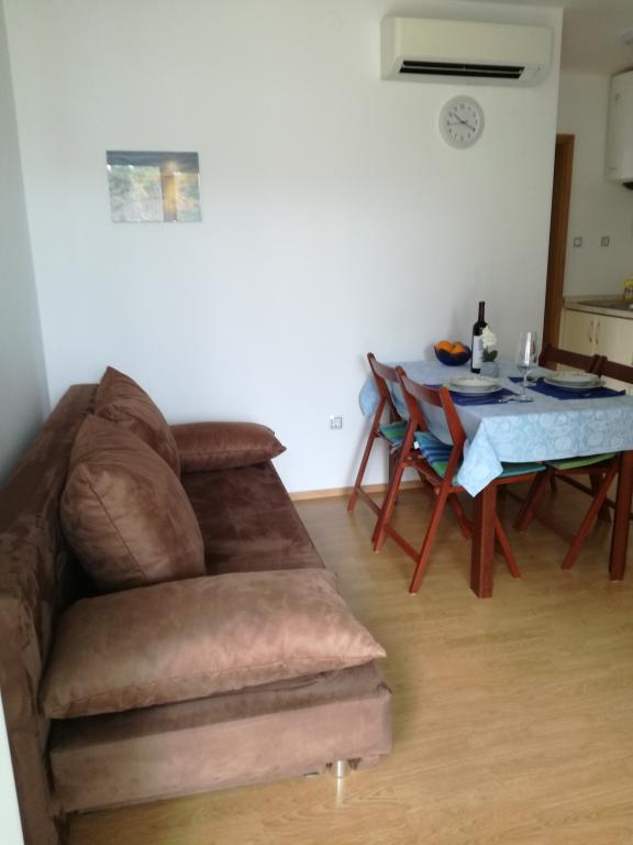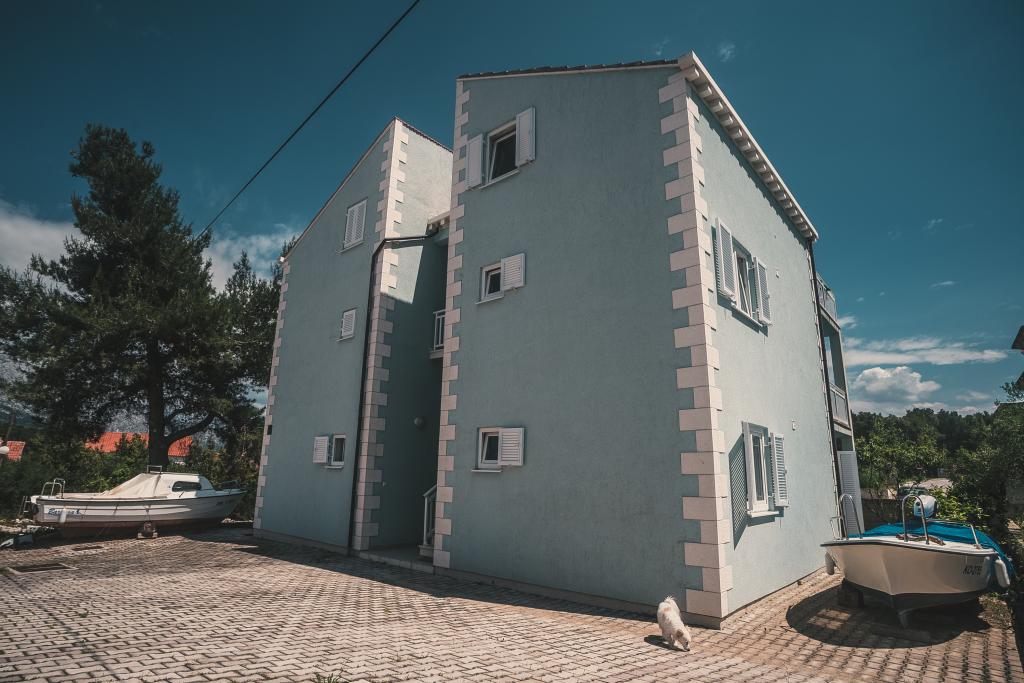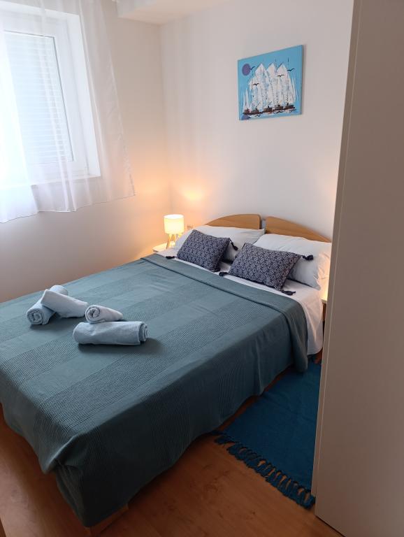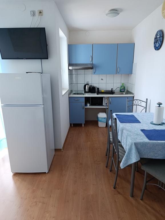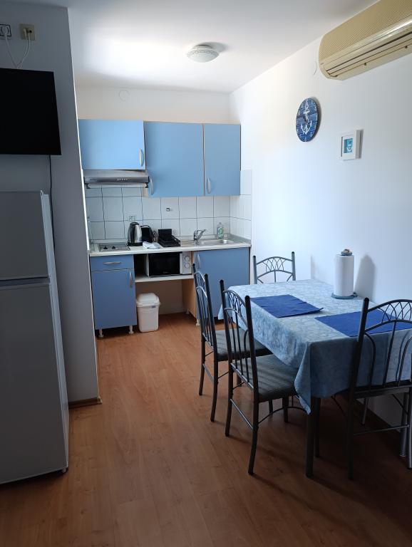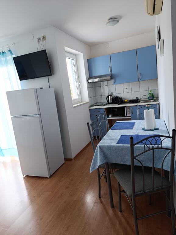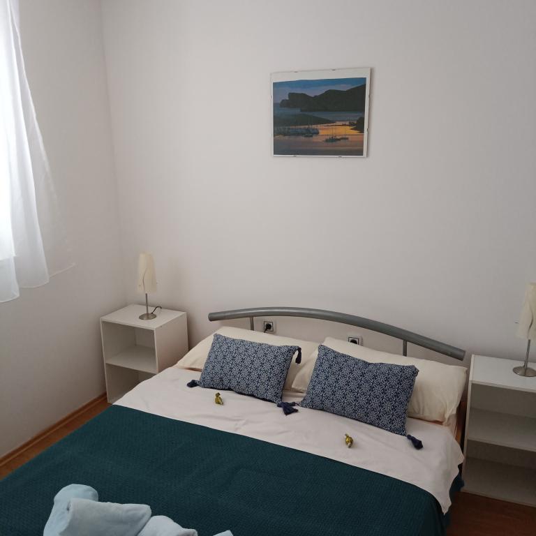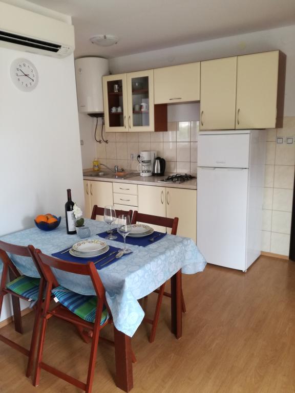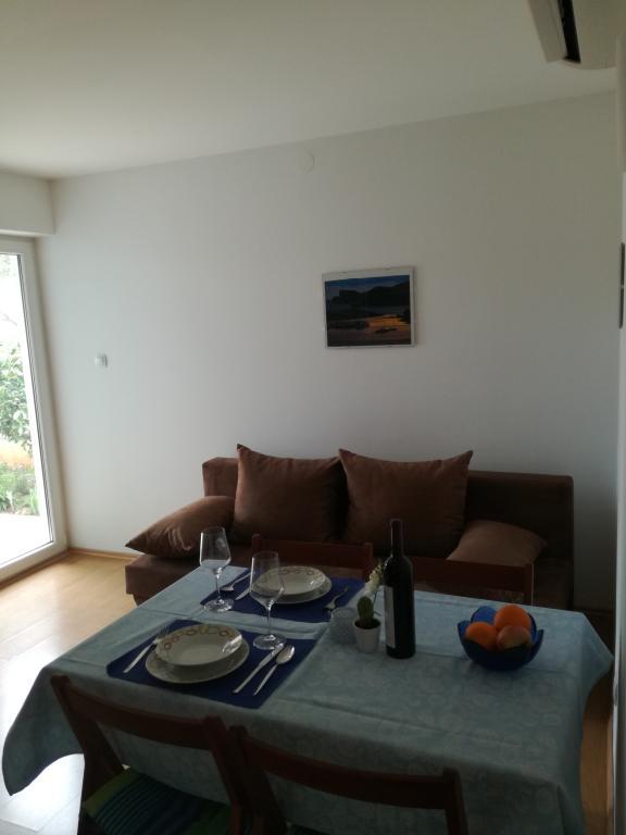 Apartamente ***, TV/SAT, aer condiționat, balcon, dormitor separat, loc de parcare, la 10 minute de mare și plajă, magazine și cafenele, la 25 de minute de mers pe jos de orașul vechi. Casa este situată într-o zonă liniștită a orașului, lângă piscina Gojko Arneri, care are o piscină interioară și sală de sport și poate fi folosită tot timpul anului. Apartamente cu un dormitor separat cu pat dublu, bucătărie în living cu toate facilitățile necesare, baie cu duș, complet utilată, balcon cu masă și patru scaune, loc de parcare în fața casei. Prețul include: curățenie finală, parcare, Wi-Fi, aer condiționat, uscător de păr, grătar comun, umbrelă de soare, taxă de turist.
