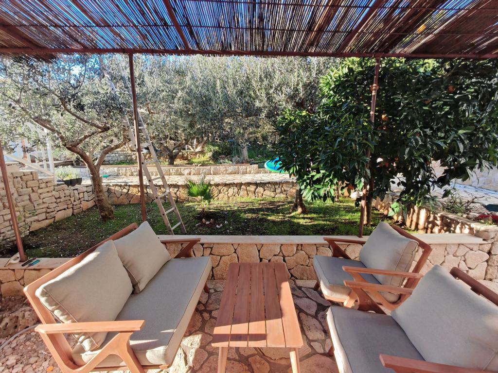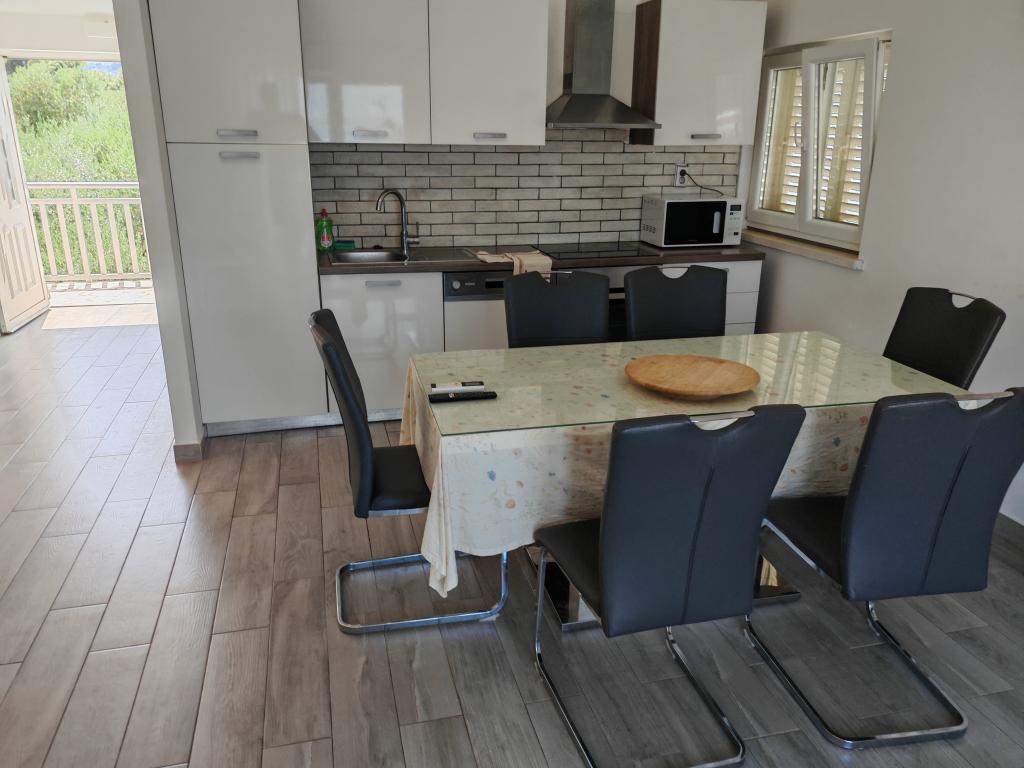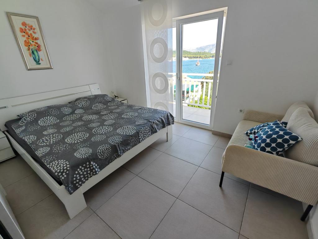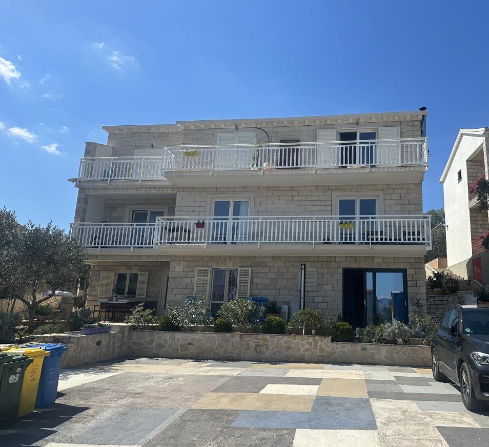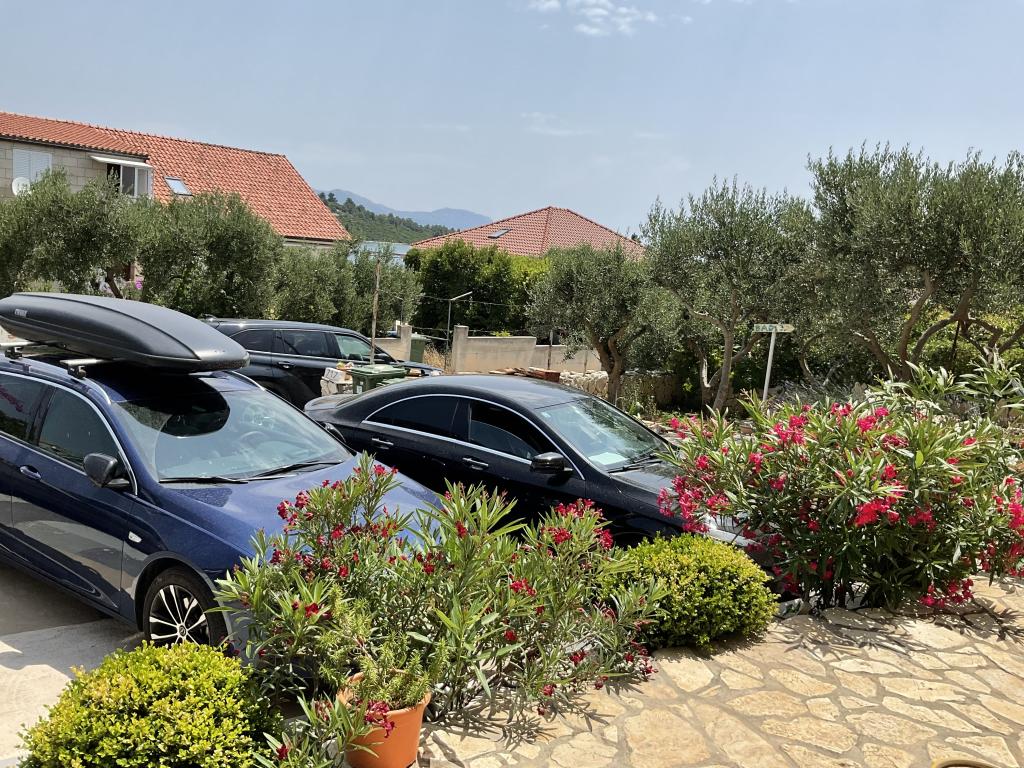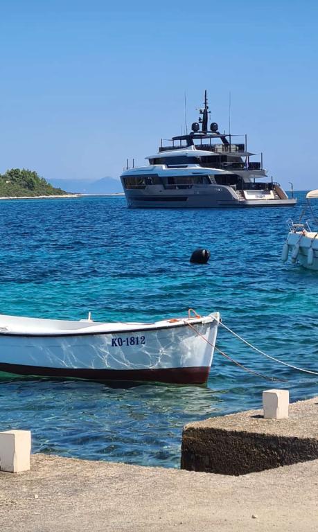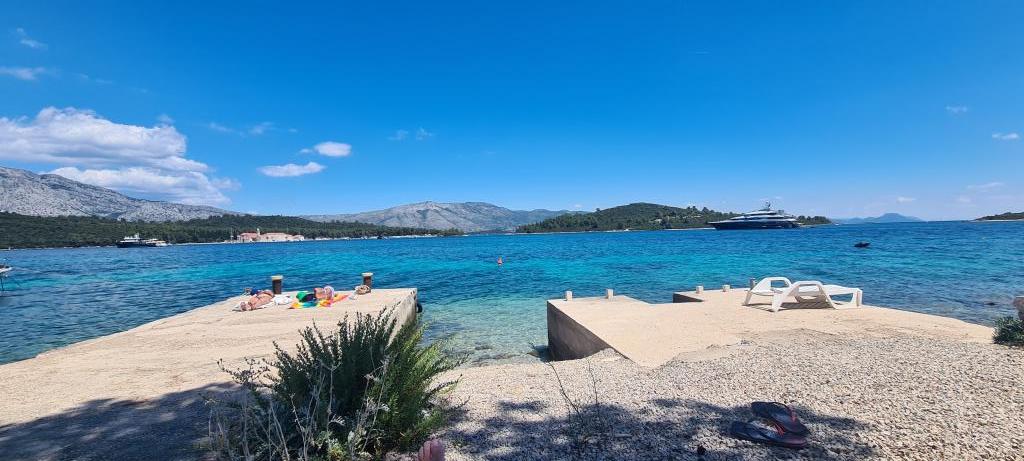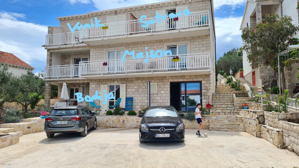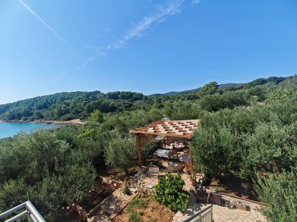Casă Škoji de închiriat pe insula Korčula, paradisul Croației. Nou construit și complet echipat, situat între orașul Korčula și orașul Lumbarda de-a lungul golfului Soline, "Škoji" oferă o vedere extraordinară asupra întregului golf și a insulelor și insulițelor din jur. Patru apartamente, arhitectură tradițională mediteraneană minimală și un living spațios în aer liber, cu grătar, grădină mediteraneană, sup boards, biciclete și șezlonguri...toate utilitățile...toate incluse în ofertă. Petreceți-vă vacanța într-un loc unde vă puteți bucura de natură și pregătiți mesele cu ulei de măsline extravirgin din grădină. Sub casă se află o mică plajă, suficientă pentru relaxare și înot, iar lângă plajă se află barca cu motor Key Largo Sessa cu 60 CP, care este oferită, cu care este relaxant să navighezi spre insulele și golfurile din apropiere, o experiență minunată. . Există patru locuri de parcare, iar Wi-Fi este disponibil în întreaga unitate. Apartamente complet echipate Badija/4+2/, Majsan/4+2/, Sutvara/4+2/ și Vrnik/2+2/ cu vedere frumoasă la mare, în timp ce grădinile din jur creează un spațiu ideal pentru living , în timp ce decorarea interioară este calmă, liniștitoare și simplă - vă face să vă simțiți ca acasă aici, pe Korčula, cu noi.