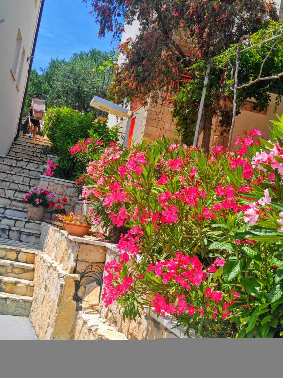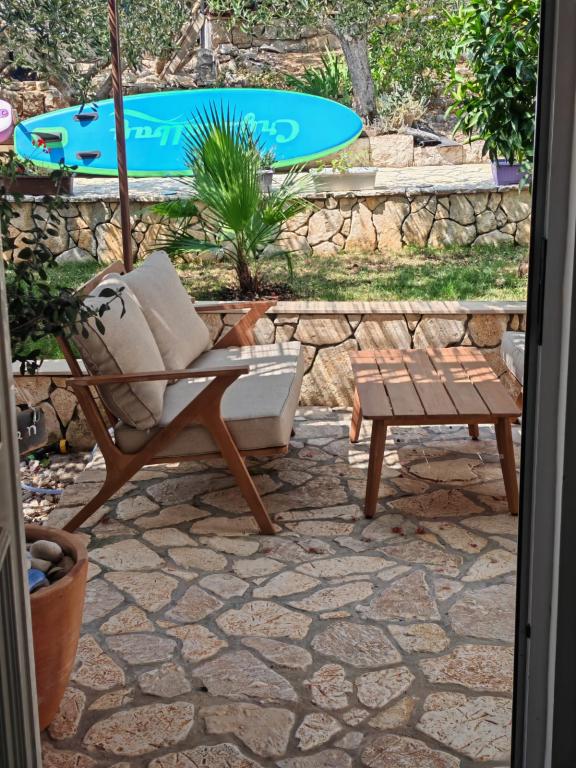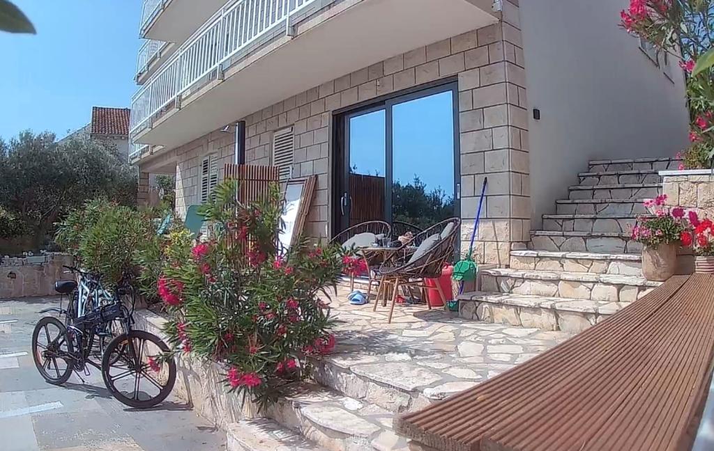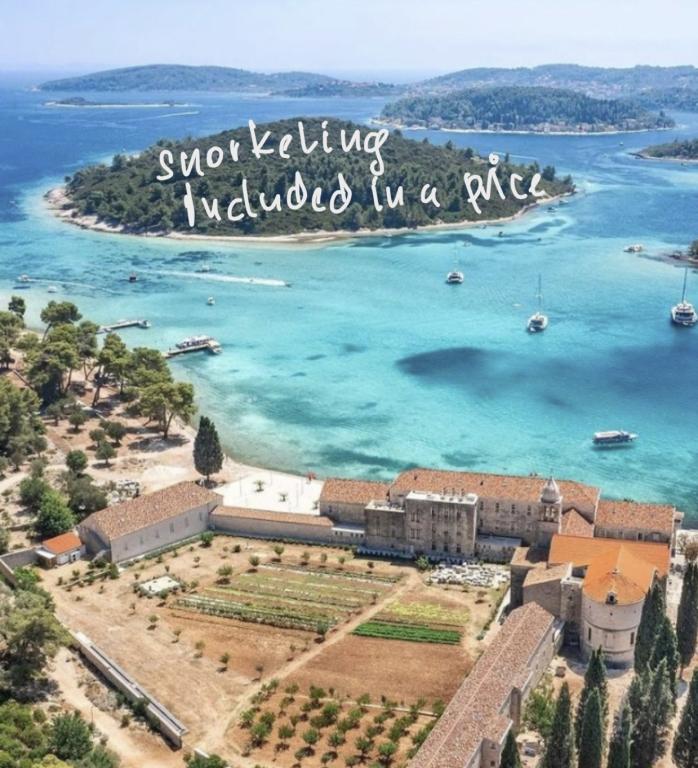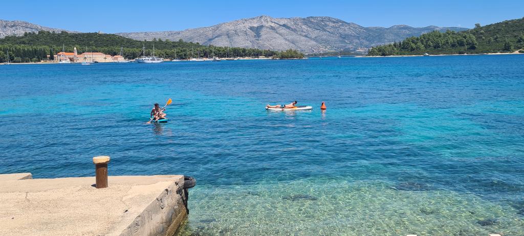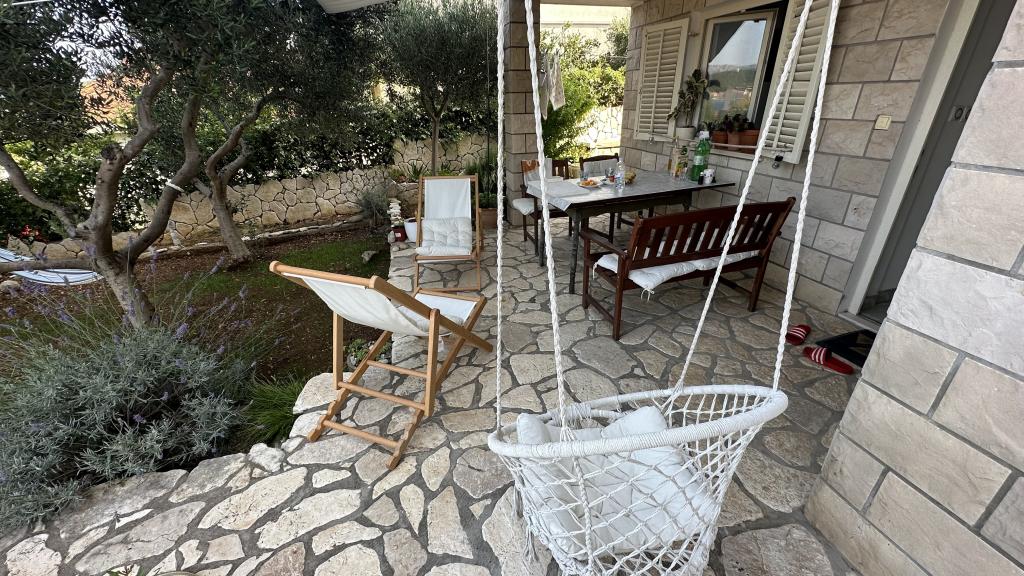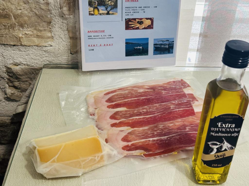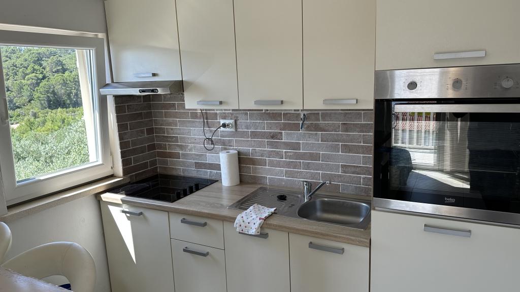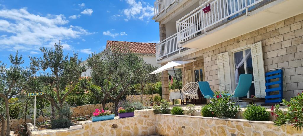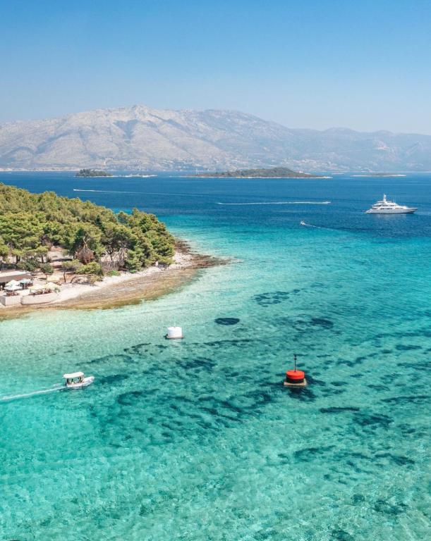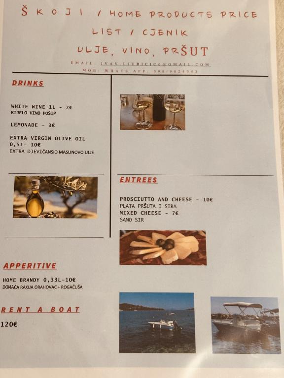 Casă Škoji de închiriat pe insula Korčula, paradisul Croației. Nou construit și complet echipat, situat între orașul Korčula și orașul Lumbarda de-a lungul golfului Soline, "Škoji" oferă o vedere extraordinară asupra întregului golf și a insulelor și insulițelor din jur. Patru apartamente, arhitectură tradițională mediteraneană minimală și un living spațios în aer liber, cu grătar, grădină mediteraneană, sup boards, biciclete și șezlonguri...toate utilitățile...toate incluse în ofertă. Petreceți-vă vacanța într-un loc unde vă puteți bucura de natură și pregătiți mesele cu ulei de măsline extravirgin din grădină. Sub casă se află o mică plajă, suficientă pentru relaxare și înot, iar lângă plajă se află barca cu motor Key Largo Sessa cu 60 CP, care este oferită, cu care este relaxant să navighezi spre insulele și golfurile din apropiere, o experiență minunată. . Există patru locuri de parcare, iar Wi-Fi este disponibil în întreaga unitate. Apartamente complet echipate Badija/4+2/, Majsan/4+2/, Sutvara/4+2/ și Vrnik/2+2/ cu vedere frumoasă la mare, în timp ce grădinile din jur creează un spațiu ideal pentru living , în timp ce decorarea interioară este calmă, liniștitoare și simplă - vă face să vă simțiți ca acasă aici, pe Korčula, cu noi.