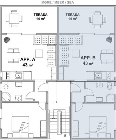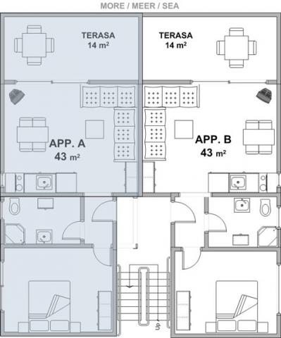 Apartamentele sunt situate în satul liniștit Kožino, la 5 kilometri de Zadar, la 4 kilometri de Zaton și la numai 2 kilometri de Petrčani, unde există o frumoasă plajă cu nisip. Imobilul este format din patru apartamente cu 2 camere. Toate apartamentele au o terasă cu vedere la mare. În fața casei există o parcare privată mare, iar distanța de la plajă este de doar 70 de metri. Liniștea și liniștea oferite de loc precum și locația apartamentului și proximitatea orașului Zadar vă vor asigura o vacanță plăcută.