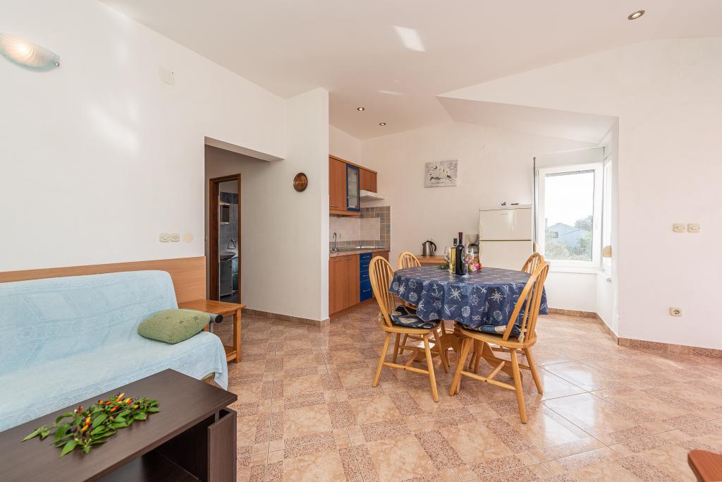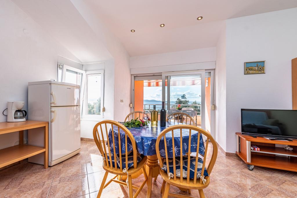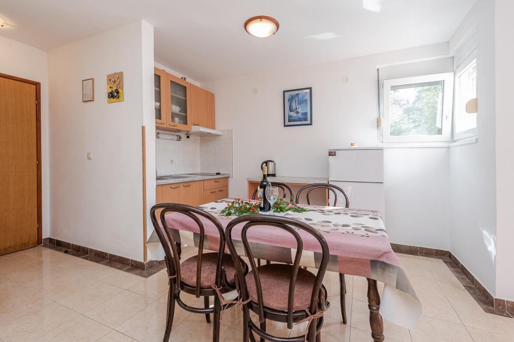Șederea a fost plină de sunete ale naturii și liniște datorită abundenței de verdeață din jurul apartamentului. Ne-am simțit ca acasă. Apartamentul frumos decorat, complet utilat și curat, iar afară există o curte cu grătar și duș. Patul era puțin mai puțin confortabil. Am petrecut momente plăcute în compania proprietarilor, care ne-au făcut să ne simțim primiți cu căldură. Plaje bine întreținute, apă curată, umbră naturală. În apropiere se află mai multe magazine și restaurante de calitate. Există multe opțiuni pentru drumeții. Cea mai bună este poteca pietonală de macadam, în mare parte umbroasă, spre Petrčane. De asemenea, este posibil să vizitați un cinematograf în aer liber în oraș.