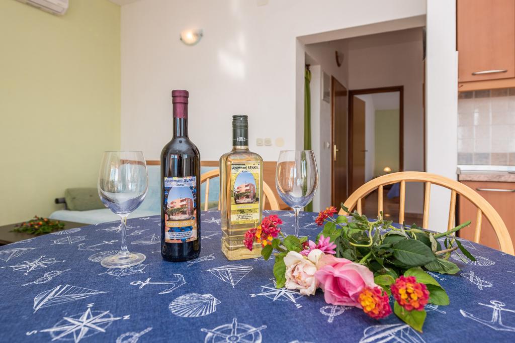 Taxa de rezidenta este inclusa in pret.Prețul de închiriere include o băutură de bun venit, precum și consumul de vin local și coniac în timpul șederii dumneavoastră în apartament. Pretul include si consumul de fructe si legume bio de sezon (cartofi, ceapa alba si rosie, rosii, castraveti, pepeni, pepeni, telina, smochine...). Pentru un sejur mai lung de 10 zile, prețul include o cină ecologică gratuită (o specialitate a Dalmației).