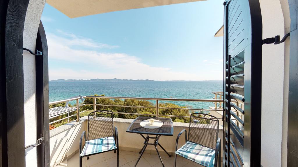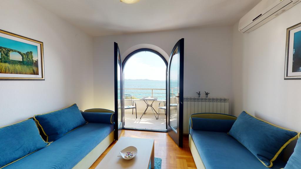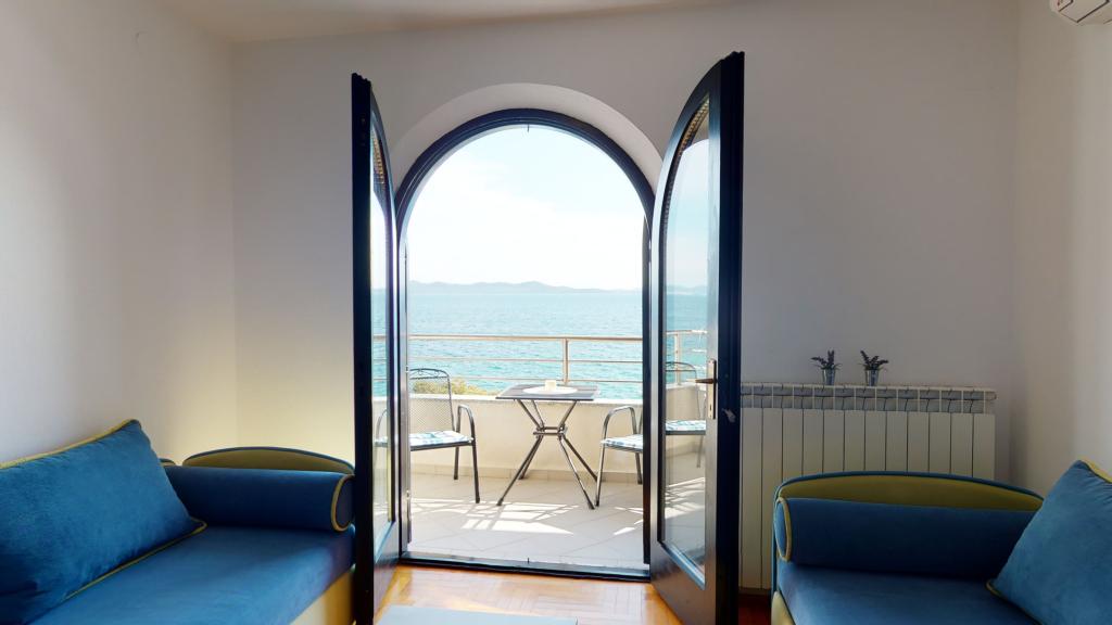 Apartamente moderne și mobilate la doar 15m de la mare! Vila Mirella este situat într-un sat liniștit Kožino, la 5 km de Zadar și la 10 km de Nina. Toate apartamentele au vederi frumoase la mare (I și II podea), se așteaptă apartament studio Mirella 5 la parter. Oaspeții pot parca în fața casei este o di și Grill. Contactati-ne pentru mai multe detalii! Servicii suplimentare: biciclete, barci, aer, șezlonguri, internet, console de jocuri, gastronomie, excursii, scaune de plajă ...