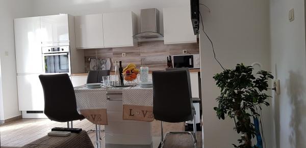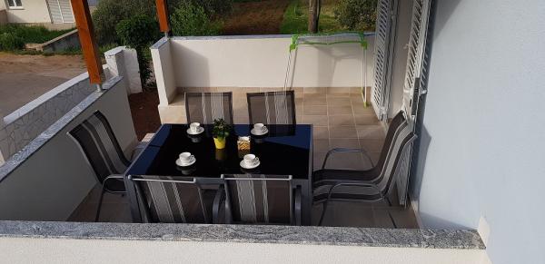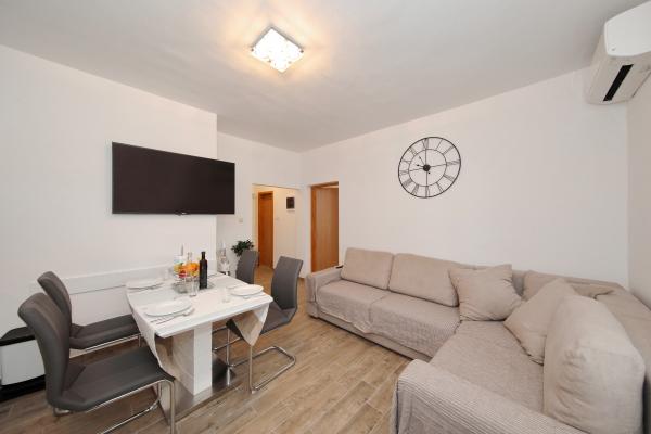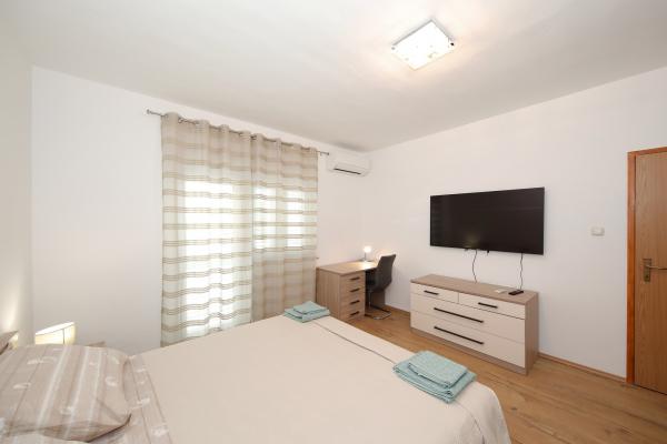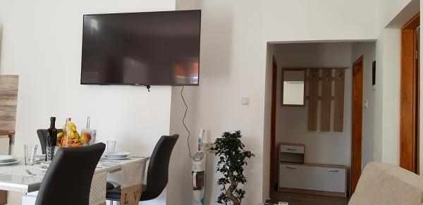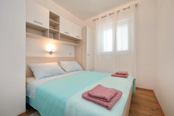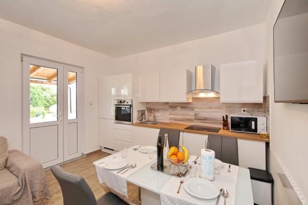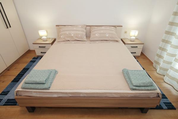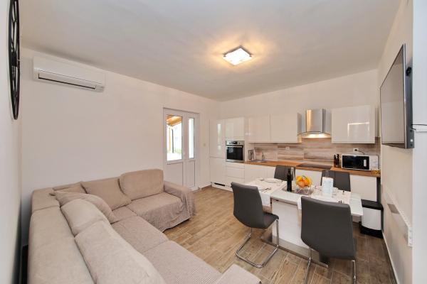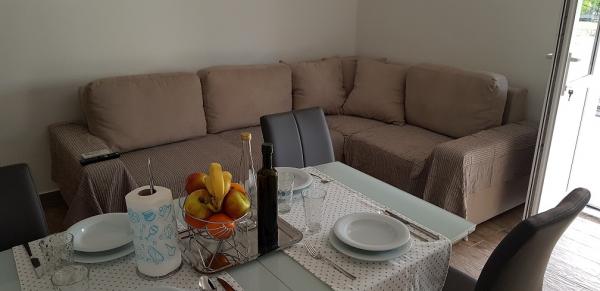Apartamentul nou adaptat (4 1) este situat la parterul unei case de familie la numai 70m de mare și o plajă de nisip puțin adâncă potrivită pentru copii mici. Apartamentul este alcătuit dintr-o bucătărie și o cameră de zi cu un fotoliu extensibil, terase mari acoperite cu soare, două dormitoare, o baie, un grătar comun și parcare privată. Apartamentul este dotat cu aer condiționat și dotat cu ustensile de bucătărie și ustensile. Bucătăria și camera de zi includ aparate de uz casnic moderne, cum ar fi frigidere cu congelatoare, cuptor, plăci de inducție, cuptor cu microunde, mașini de spălat vase, televizoare prin satelit și on-line și internet.