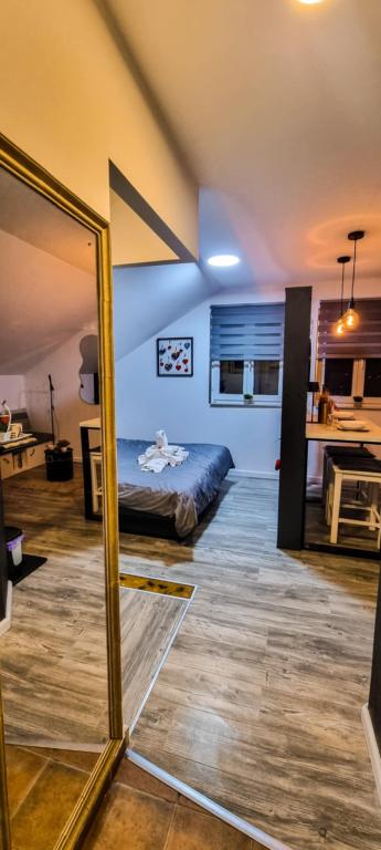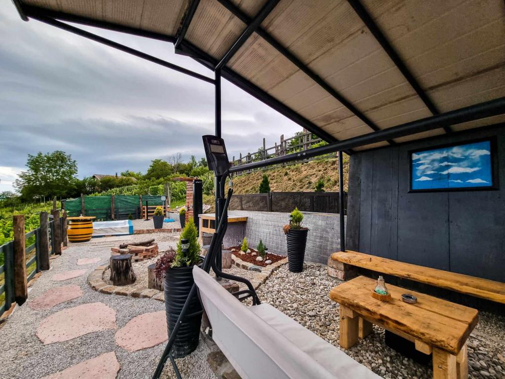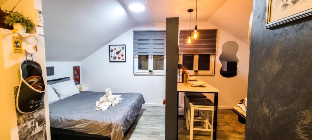 Apartament studio 7th heaven, capacitate 2+0, situat în Trško Vrh, în imediata apropiere a orașului Krapina. 7. nebo este o combinație perfectă de rustic și modern și o opțiune excelentă pentru a lua o pauză de la zgomotul orașului și viața urbană cu natura și orașul natal Zagorje. Garsoniera este compusă dintr-o bucătărie și o sufragerie, un pat, un living și o baie. Cazarea include parcare, wi-fi, aer conditionat, TV, radio, ceainic, cuptor cu microunde, plita cu inductie, frigider si diverse jocuri de societate pentru distractie (fotbal, darts electrice, fotbal de masa, bowling suspendat etc.). Unitatea este înconjurată de livezi și grădini de flori și o mică parte din pădure. Oaspeții au, de asemenea, opțiunea de a folosi un grătar, un foc de tabără, șezlonguri, leagăne, un foișor și o terasă, precum și o mică piscină în aer liber și duș în zilele calde de vară. Nu există taxe suplimentare pentru animalele de companie și sunt binevenite! Bine ați venit la noi!