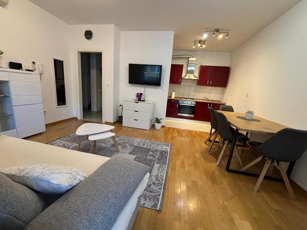 Apartament Dora este situat chiar în centrul orașului Krapinske Toplice, aproape de toate facilitățile importante. La 100 metri de Baia Termala Aquae Vivae, farmacie, clinica. La 50 de metri de un magazin si bancomat, si la 200 de metri de Spitalul de Recuperare, Cardio-chirurgie Magdalena, Acromion-ortopedie. Apartamentul are o suprafață de 50 m2 și este situat la etajul 2 al unei clădiri rezidențiale moderne, cu utilizarea unui lift. Parcarea gratuită și internetul WI-FI sunt disponibile pentru utilizatorii de apartamente.