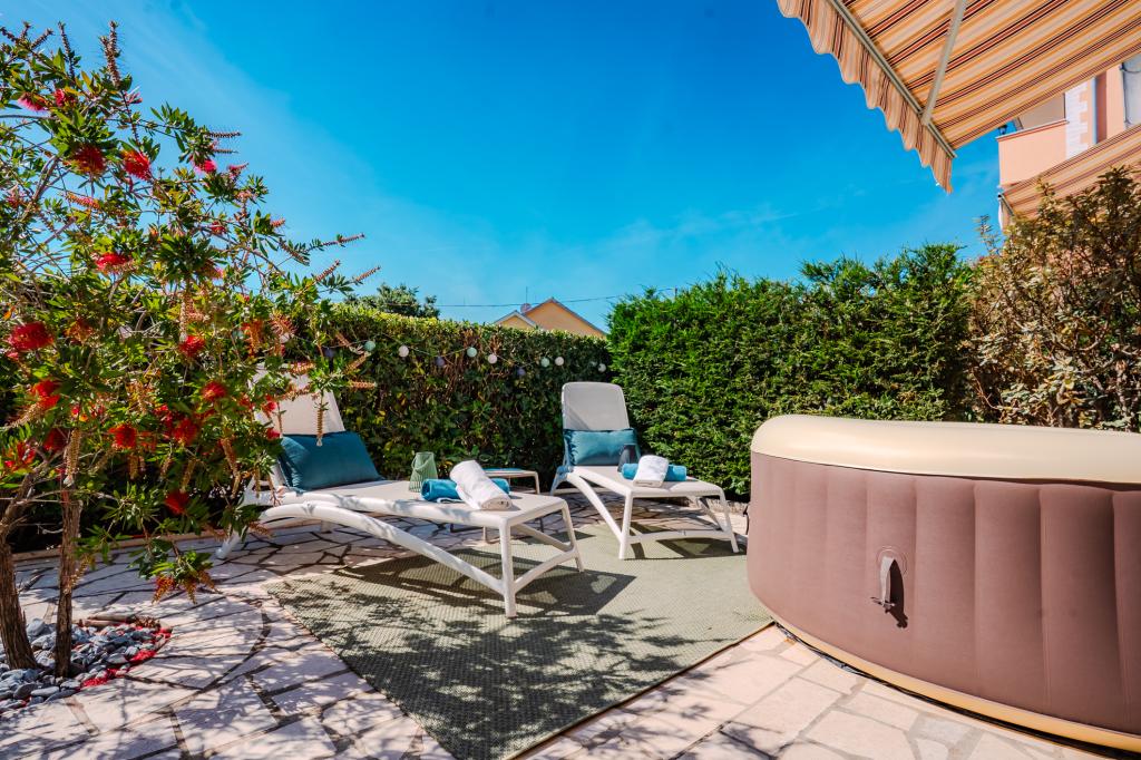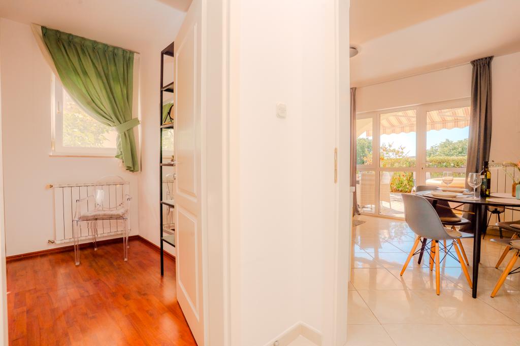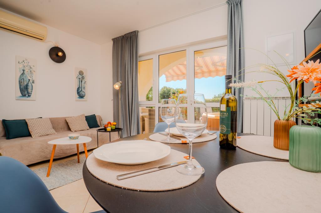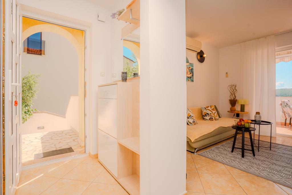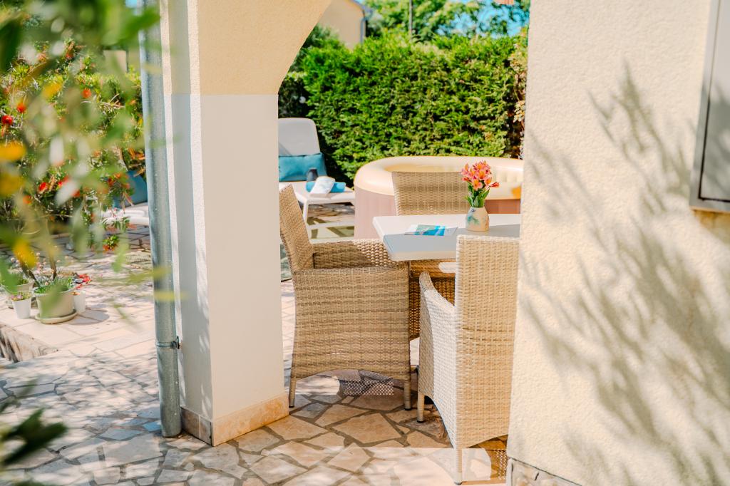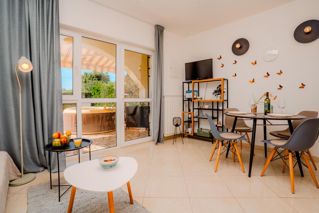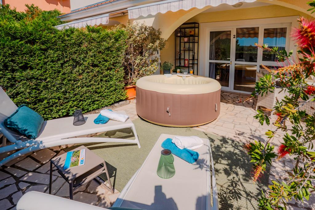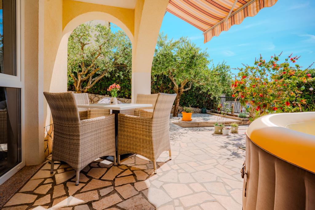 Patru apartamente decorate modern sunt situate în satul liniștit Čižić de pe insula Krk, ideale pentru o vacanță relaxantă în familie sau o vacanță romantică. Apartamentele 1 și 2 sunt situate la parter și oferă terase cu șezlonguri înconjurate de verdeață mediteraneană parfumată, în timp ce apartamentul 2 are suplimentar un jacuzzi încălzit și un colț de lounge la umbra plăcută a măslinilor. Apartamentele 3 și 4 de la primul etaj au un balcon cu vedere la mare. Toate apartamentele au aer condiționat, Wi-Fi gratuit, TV prin satelit, bucătărie utilată, baie, lenjerie de pat, prosoape și parcare gratuită. Animalele de companie sunt binevenite. Plaja este la 500 m distanță.