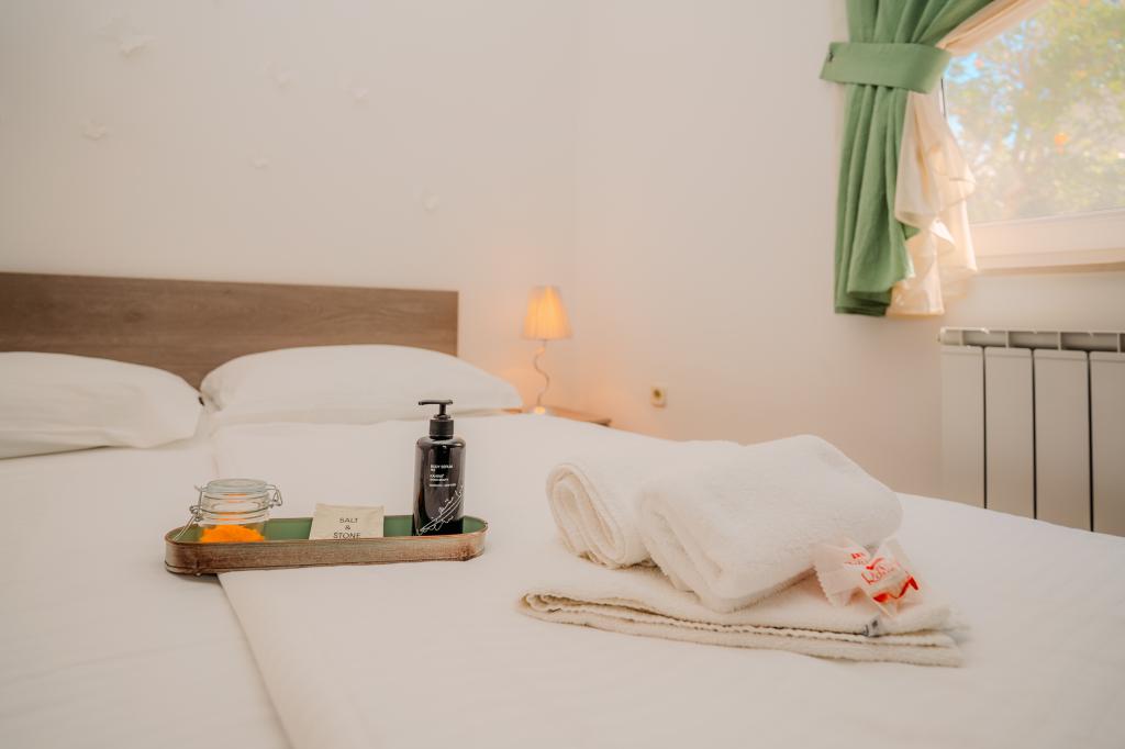 Oaspeții apartamentului Fanuko se bucură de numeroase beneficii care le fac șederea și mai plăcută. La cerere, este posibil să se asigure un loc de acostare pentru barcă în apropierea apartamentului. Oferim tuturor oaspeților noștri o reducere de 10% la restaurantul de familie „Žal” din Klimno, cunoscut pentru specialitățile sale din pește proaspăt și bucătăria locală. Ca semn de bun venit, am pregătit o băutură de bun venit și un pachet special de frumusețe și wellness pentru relaxare și bucurie încă din prima zi. Toate beneficiile sunt concepute pentru a vă face șederea cât mai relaxantă posibil, plină de aromele, parfumurile și atmosfera unei adevărate vacanțe mediteraneene. Pat suplimentar pentru a treia și a patra persoană: 9 €/zi, Animalele de companie sunt binevenite: 10 €/zi, Mașină de spălat: comună; 5 € per utilizare, Aer condiționat: la cerere/9 € pe zi, jacuzzi încălzit 20 €/zi. Oaspeții apartamentelor noastre primesc o reducere de 10% la restaurantul nostru de familie „Žal” din Klimno. Pentru trei sau mai puține nopți, prețul crește cu 30%.