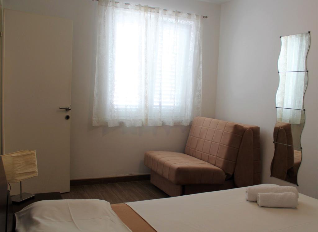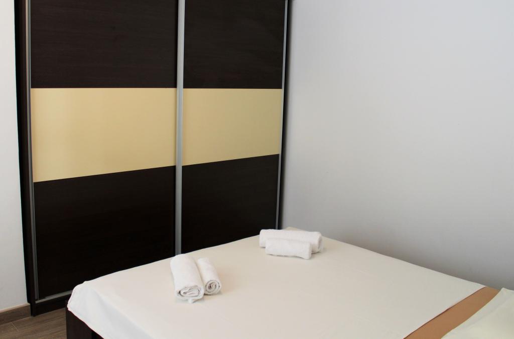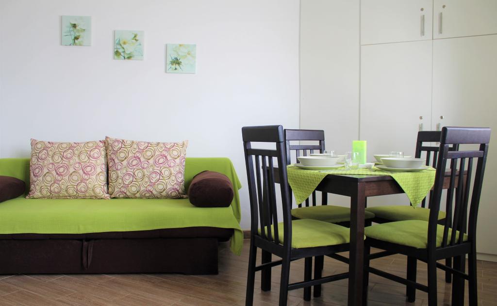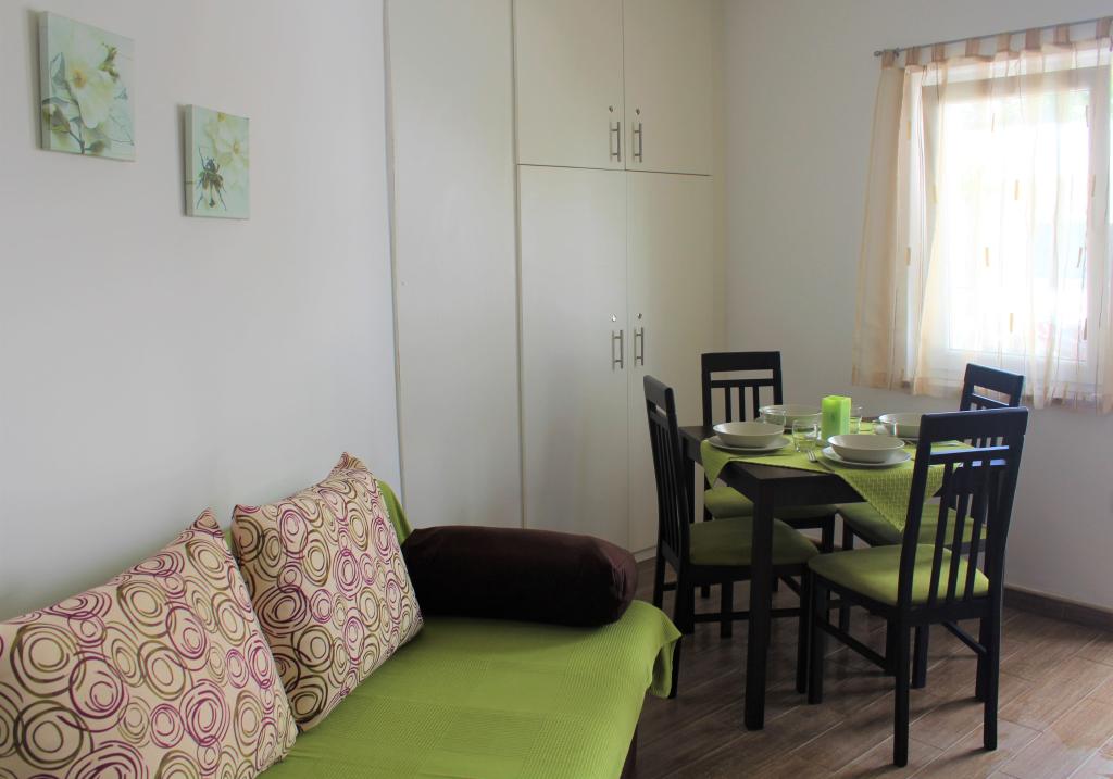Acest apartament este situat intr-o zona linistita. Are o terasă cu vedere la grădină. Este situat la 5 minute de mers pe jos de plajă și de centru. Este langa statia de autobuz. Oferă WiFi gratuit și parcare privată. Bucătăria este dotată cu cuptor, frigider, ceainic și aparat de cafea. Sunt disponibile lenjerie de pat și prosoape.