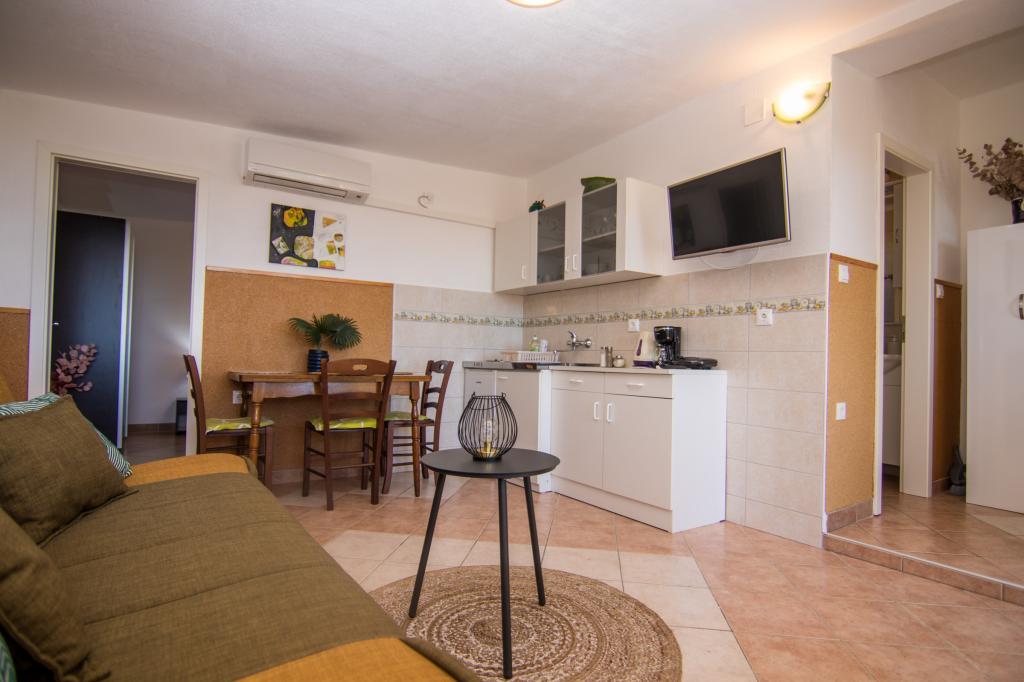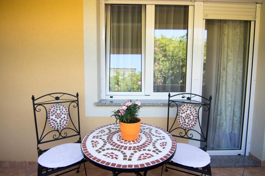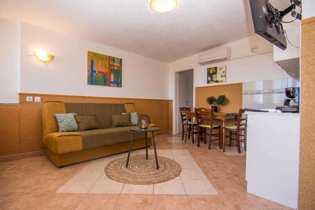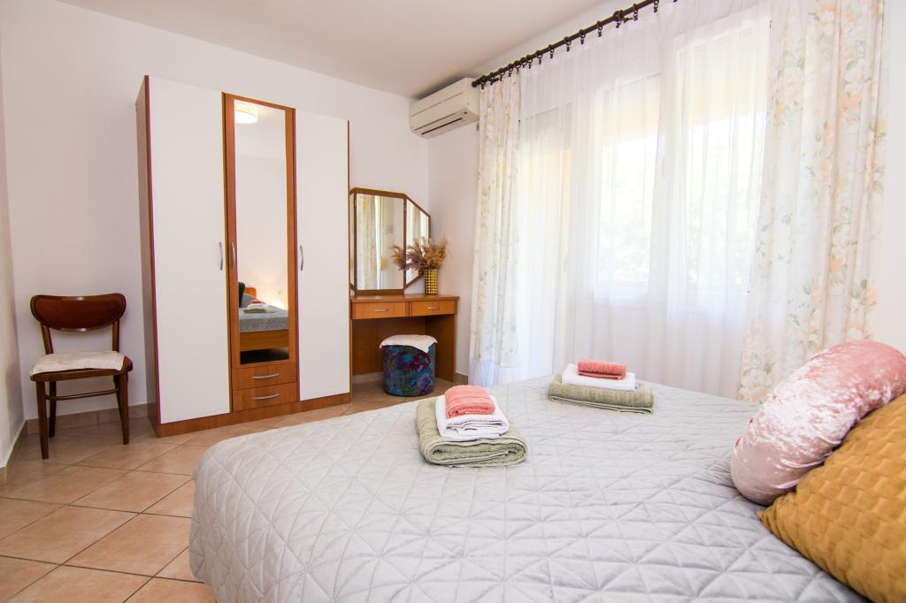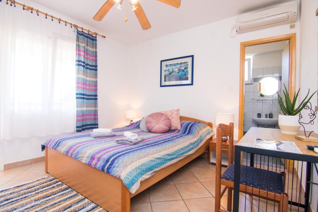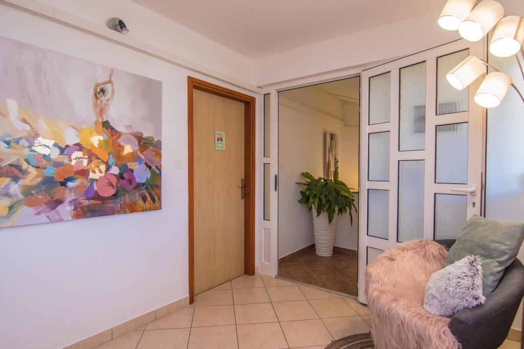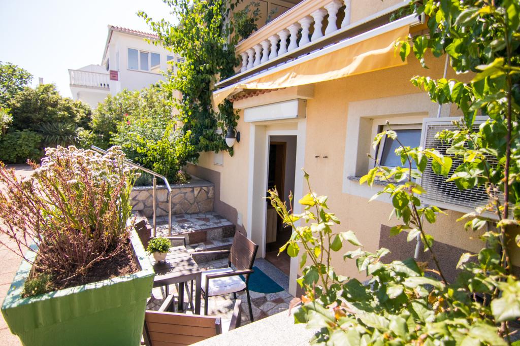 Casa este situată chiar în centrul orașului, la doar 90 m de mare și de o frumoasă promenadă cu numeroase restaurante, cafenele și alte facilități. Oaspeții pot găsi magazine, o bancă, un oficiu poștal, o farmacie și altele asemenea în apropierea casei. Curtea casei este spatioasa unde este suficient spatiu pentru parcarea masinilor oaspetilor. Este înconjurat de plante și flori mediteraneene. Oaspeții pot folosi și grătarul comun situat în spatele casei. Toate apartamentele au terasă sau balcon, iar unele unități au chiar și două terase sau două balcoane. Cartierul este linistit si sigur. Din unele apartamente se vede marea. Fiecare unitate are aer condiționat, TV prin satelit, internet și aparat de cafea cu filtru.