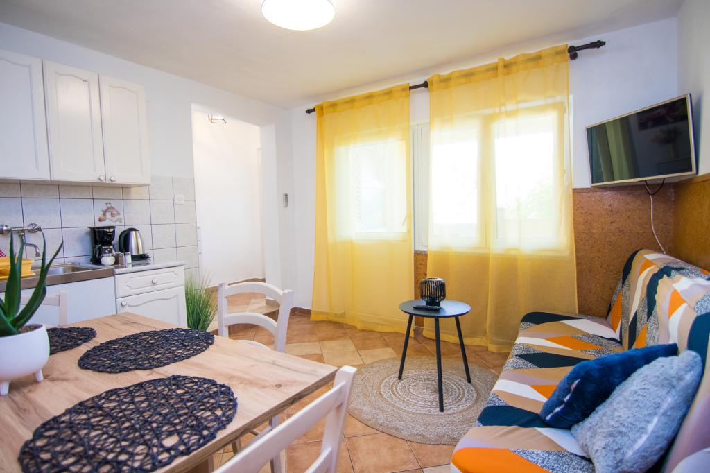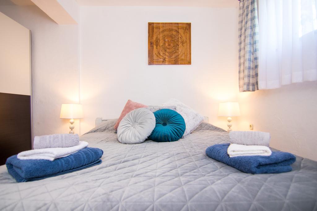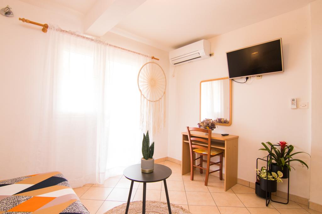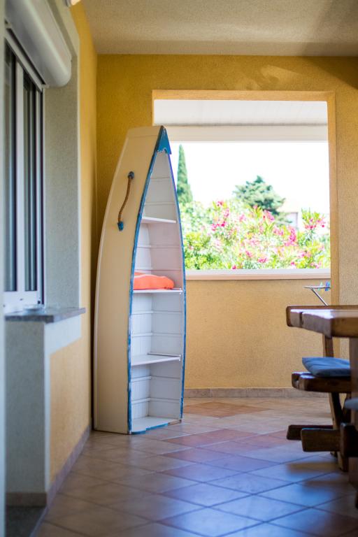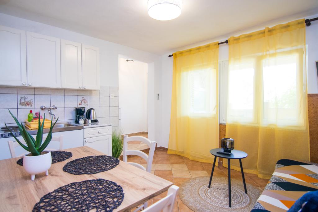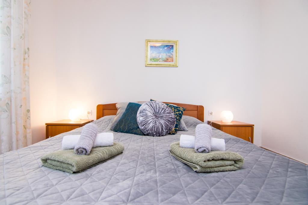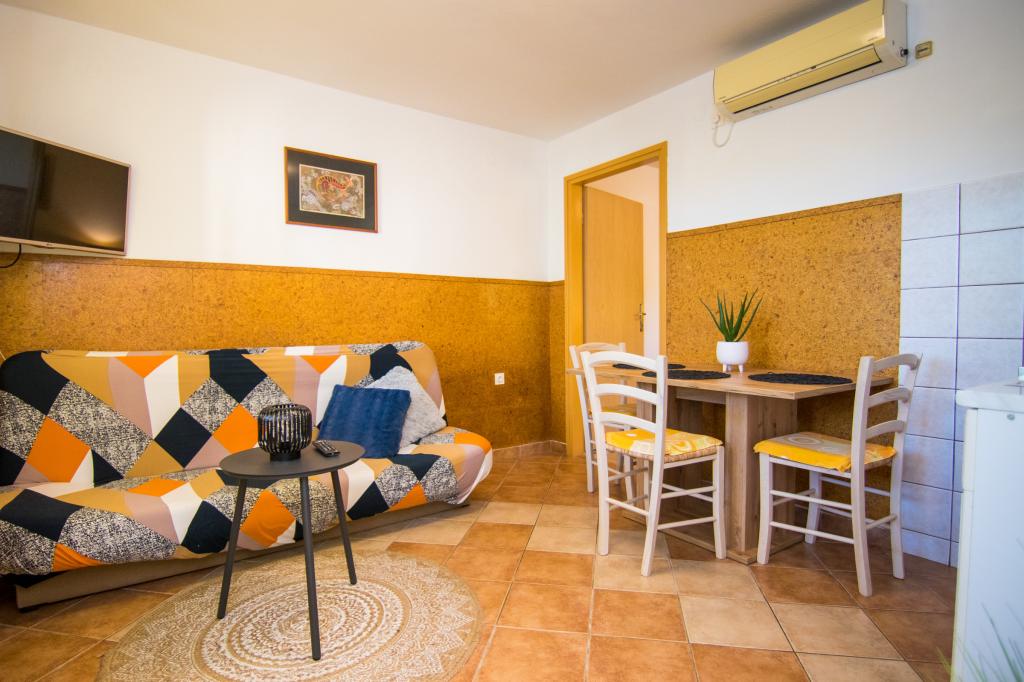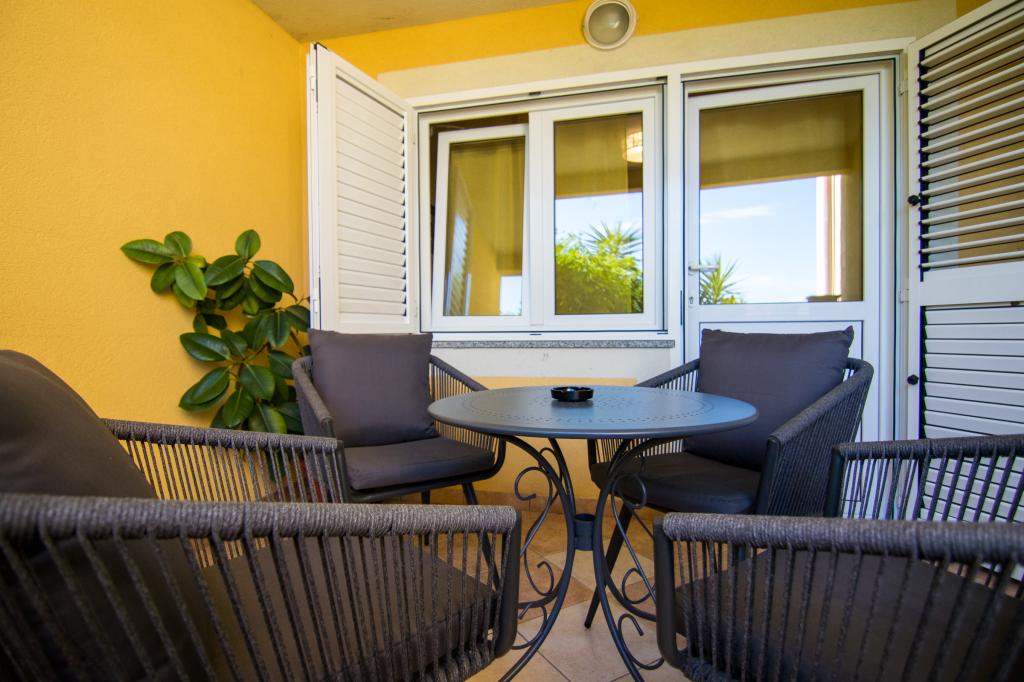 Casa este situată chiar în centrul orașului, la doar 90 m de mare și de o frumoasă promenadă cu numeroase restaurante, cafenele și alte facilități. Oaspeții pot găsi magazine, o bancă, un oficiu poștal, o farmacie și altele asemenea în apropierea casei. Curtea casei este spatioasa unde este suficient spatiu pentru parcarea masinilor oaspetilor. Este înconjurat de plante și flori mediteraneene. Oaspeții pot folosi și grătarul comun situat în spatele casei. Toate apartamentele au terasă sau balcon, iar unele unități au chiar și două terase sau două balcoane. Cartierul este linistit si sigur. Din unele apartamente se vede marea. Fiecare unitate are aer condiționat, TV prin satelit, internet și aparat de cafea cu filtru.