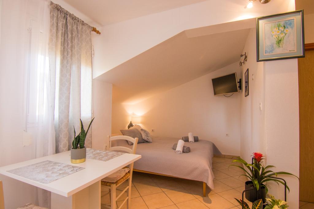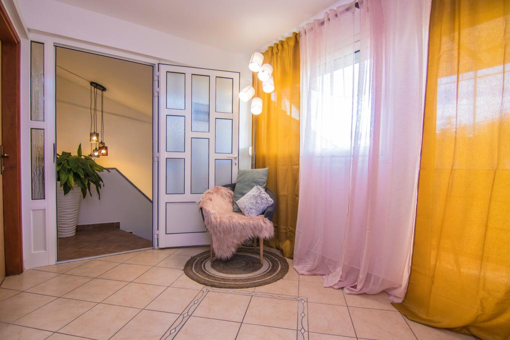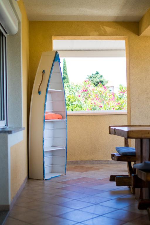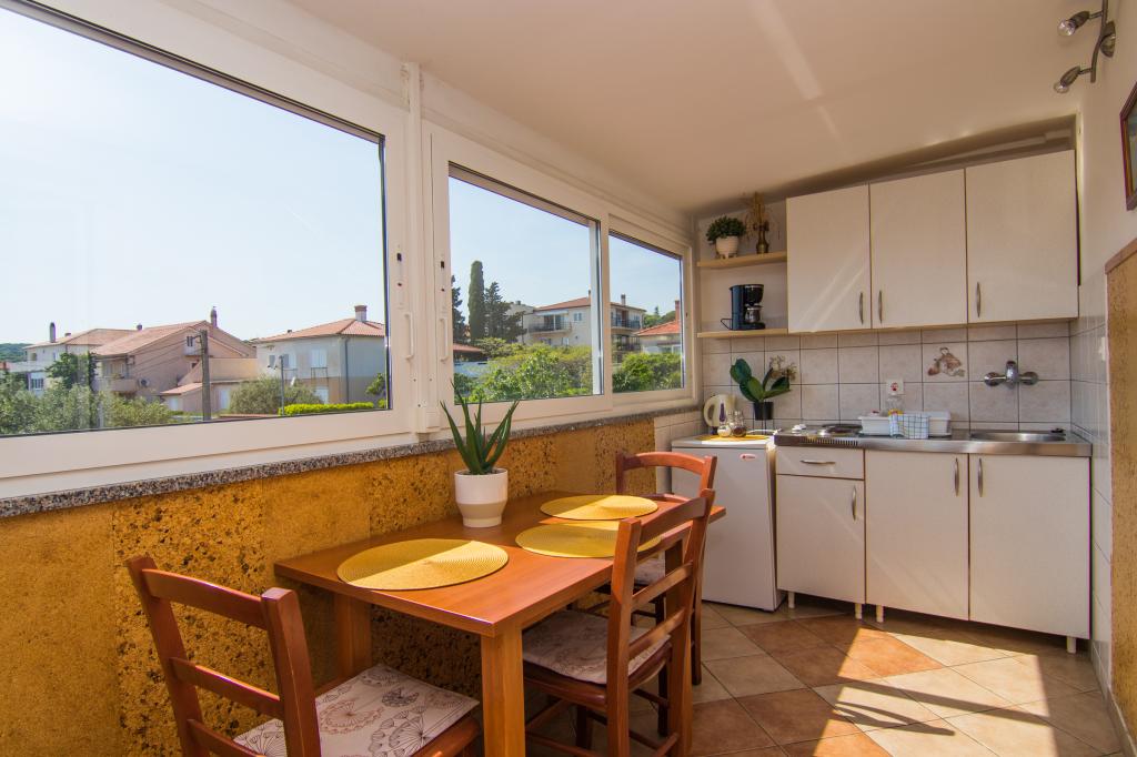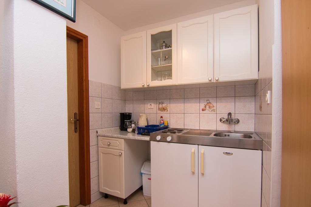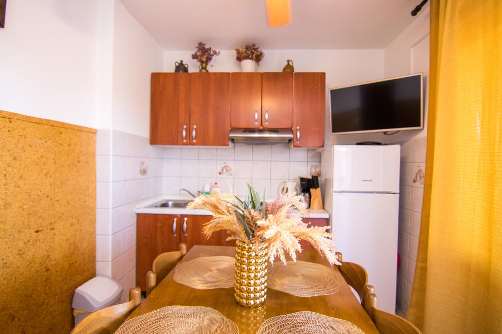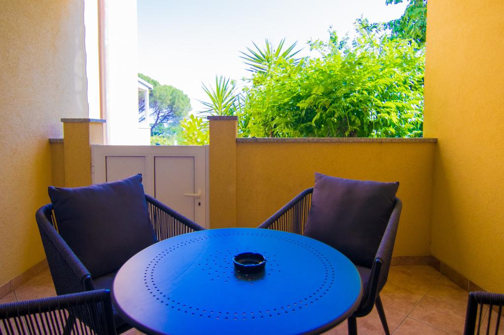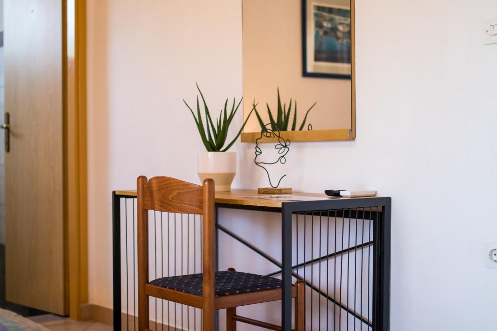 Casa este situată chiar în centrul orașului, la doar 90 m de mare și de o frumoasă promenadă cu numeroase restaurante, cafenele și alte facilități. Oaspeții pot găsi magazine, o bancă, un oficiu poștal, o farmacie și altele asemenea în apropierea casei. Curtea casei este spatioasa unde este suficient spatiu pentru parcarea masinilor oaspetilor. Este înconjurat de plante și flori mediteraneene. Oaspeții pot folosi și grătarul comun situat în spatele casei. Toate apartamentele au terasă sau balcon, iar unele unități au chiar și două terase sau două balcoane. Cartierul este linistit si sigur. Din unele apartamente se vede marea. Fiecare unitate are aer condiționat, TV prin satelit, internet și aparat de cafea cu filtru.