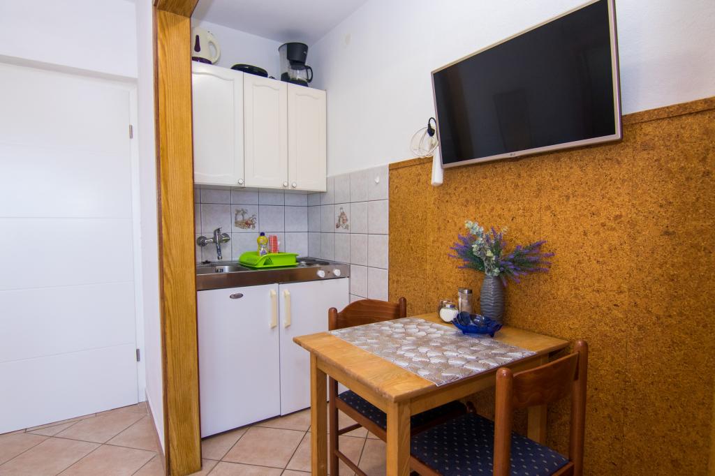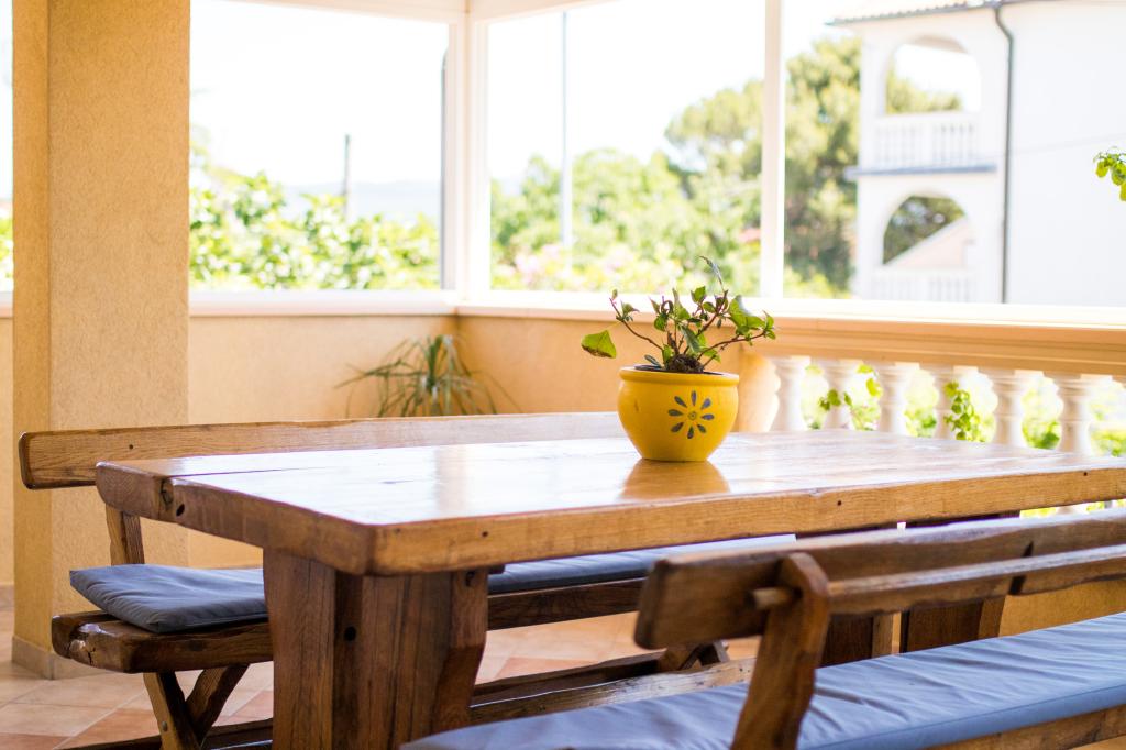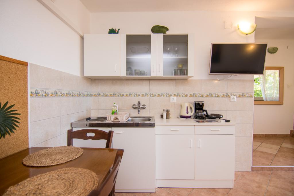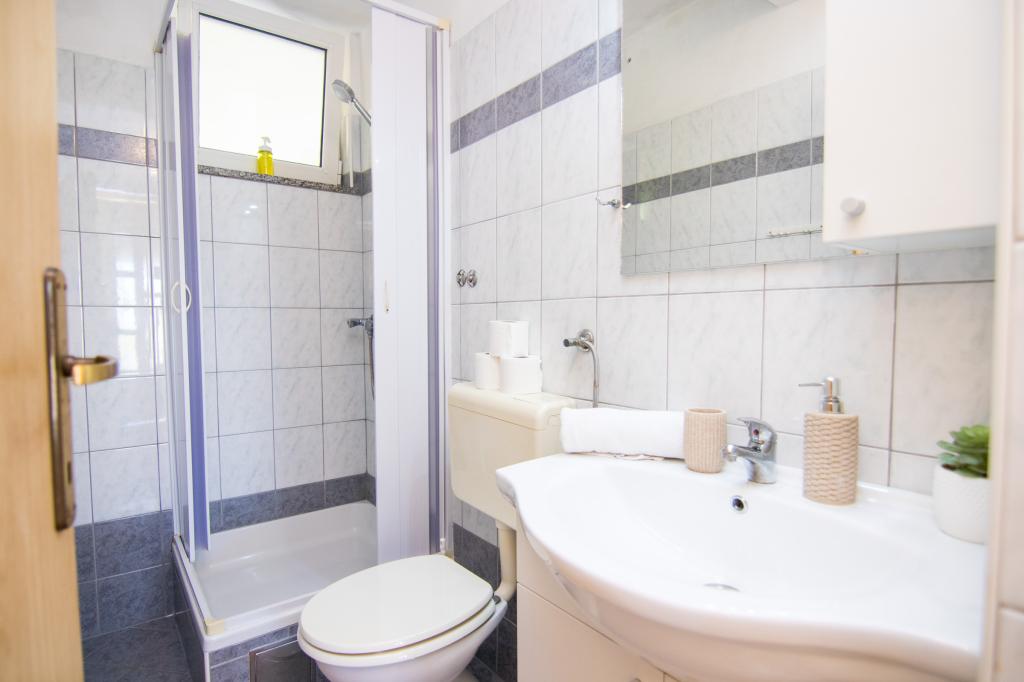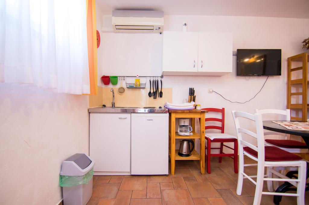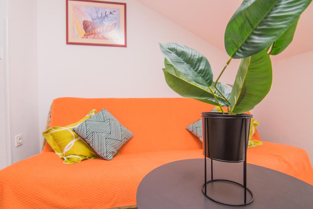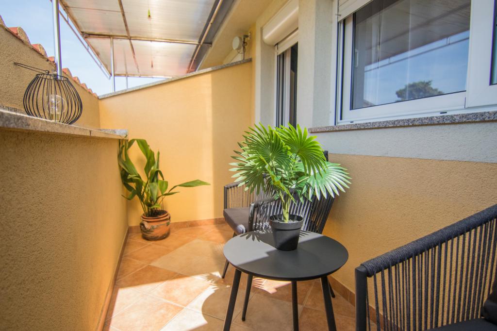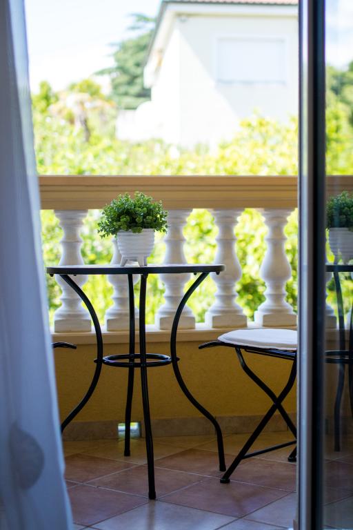 Casa este situată chiar în centrul orașului, la doar 90 m de mare și de o frumoasă promenadă cu numeroase restaurante, cafenele și alte facilități. Oaspeții pot găsi magazine, o bancă, un oficiu poștal, o farmacie și altele asemenea în apropierea casei. Curtea casei este spatioasa unde este suficient spatiu pentru parcarea masinilor oaspetilor. Este înconjurat de plante și flori mediteraneene. Oaspeții pot folosi și grătarul comun situat în spatele casei. Toate apartamentele au terasă sau balcon, iar unele unități au chiar și două terase sau două balcoane. Cartierul este linistit si sigur. Din unele apartamente se vede marea. Fiecare unitate are aer condiționat, TV prin satelit, internet și aparat de cafea cu filtru.