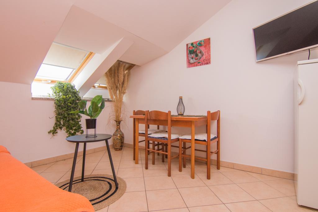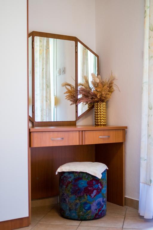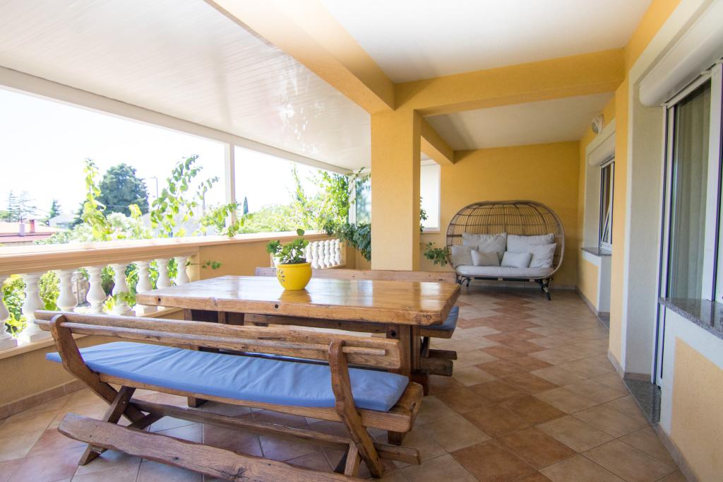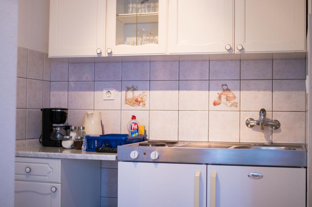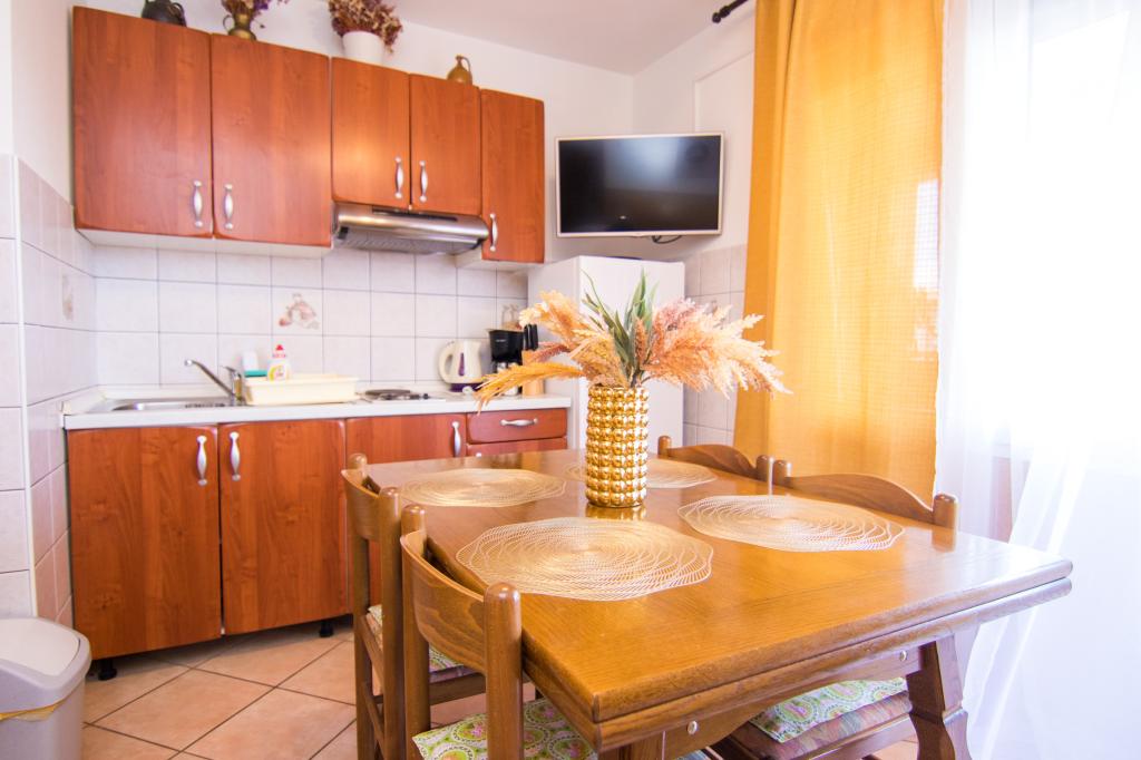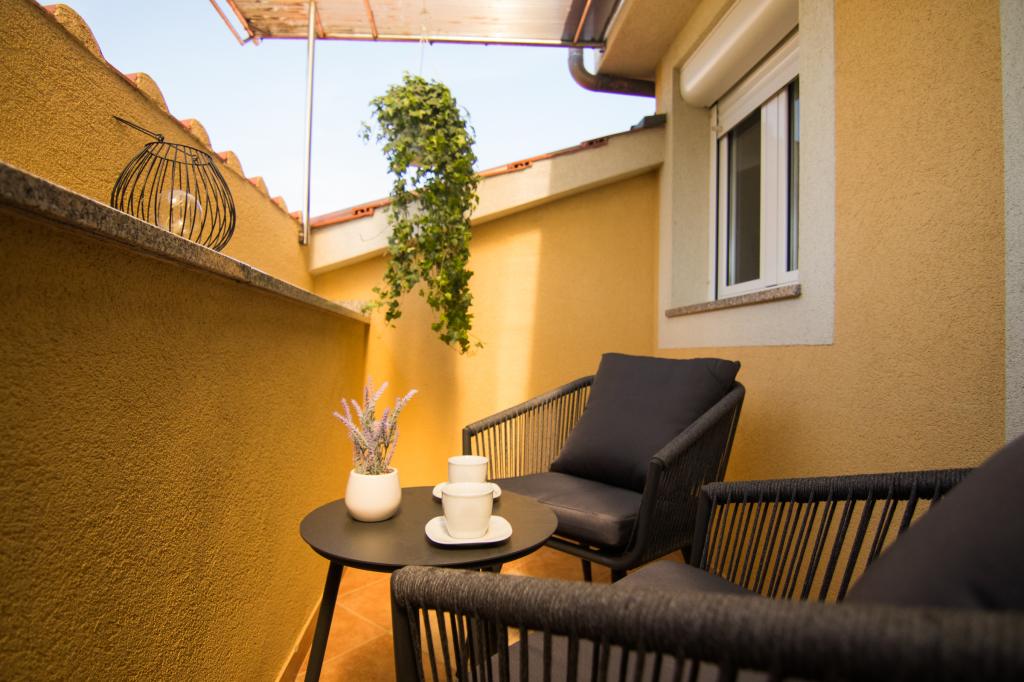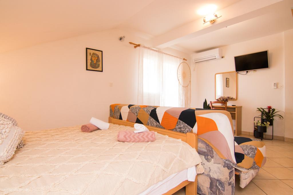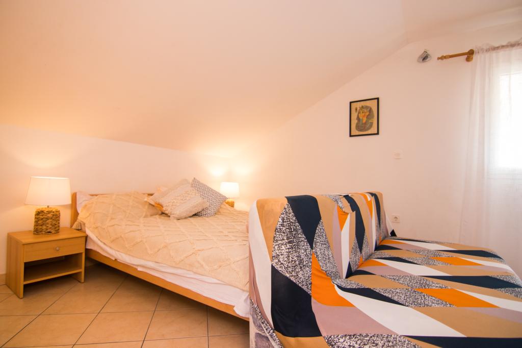 Casa este situată chiar în centrul orașului, la doar 90 m de mare și de o frumoasă promenadă cu numeroase restaurante, cafenele și alte facilități. Oaspeții pot găsi magazine, o bancă, un oficiu poștal, o farmacie și altele asemenea în apropierea casei. Curtea casei este spatioasa unde este suficient spatiu pentru parcarea masinilor oaspetilor. Este înconjurat de plante și flori mediteraneene. Oaspeții pot folosi și grătarul comun situat în spatele casei. Toate apartamentele au terasă sau balcon, iar unele unități au chiar și două terase sau două balcoane. Cartierul este linistit si sigur. Din unele apartamente se vede marea. Fiecare unitate are aer condiționat, TV prin satelit, internet și aparat de cafea cu filtru.