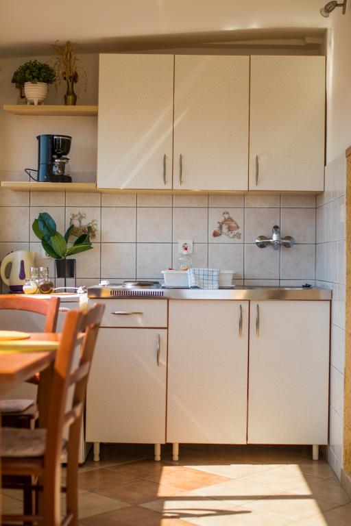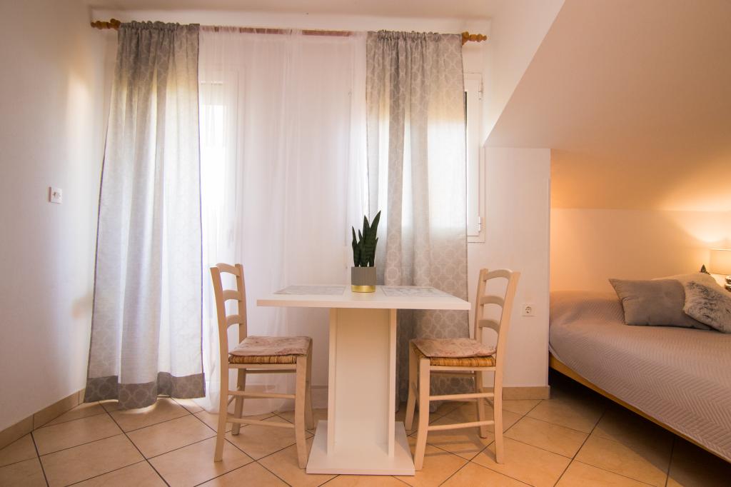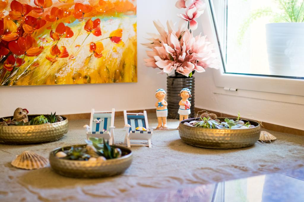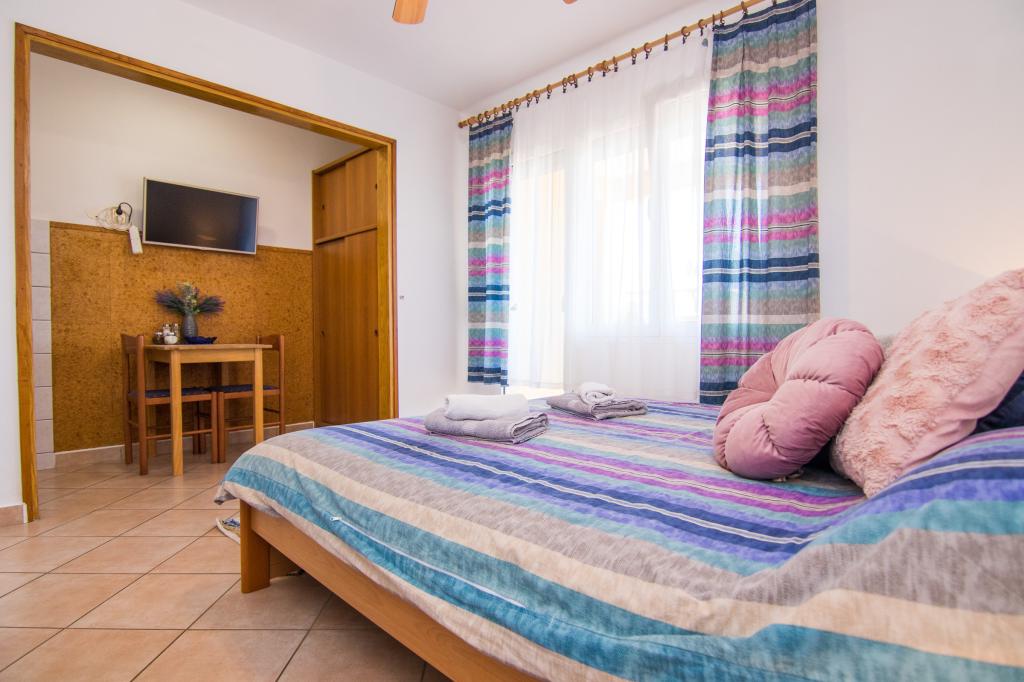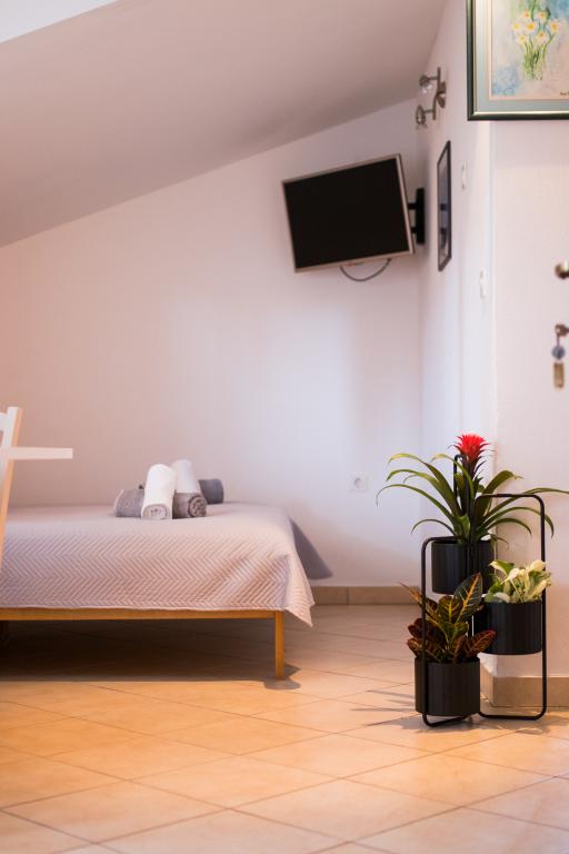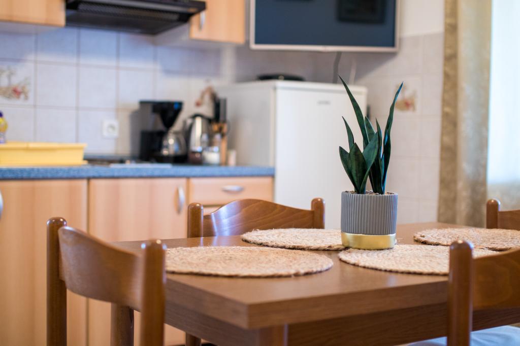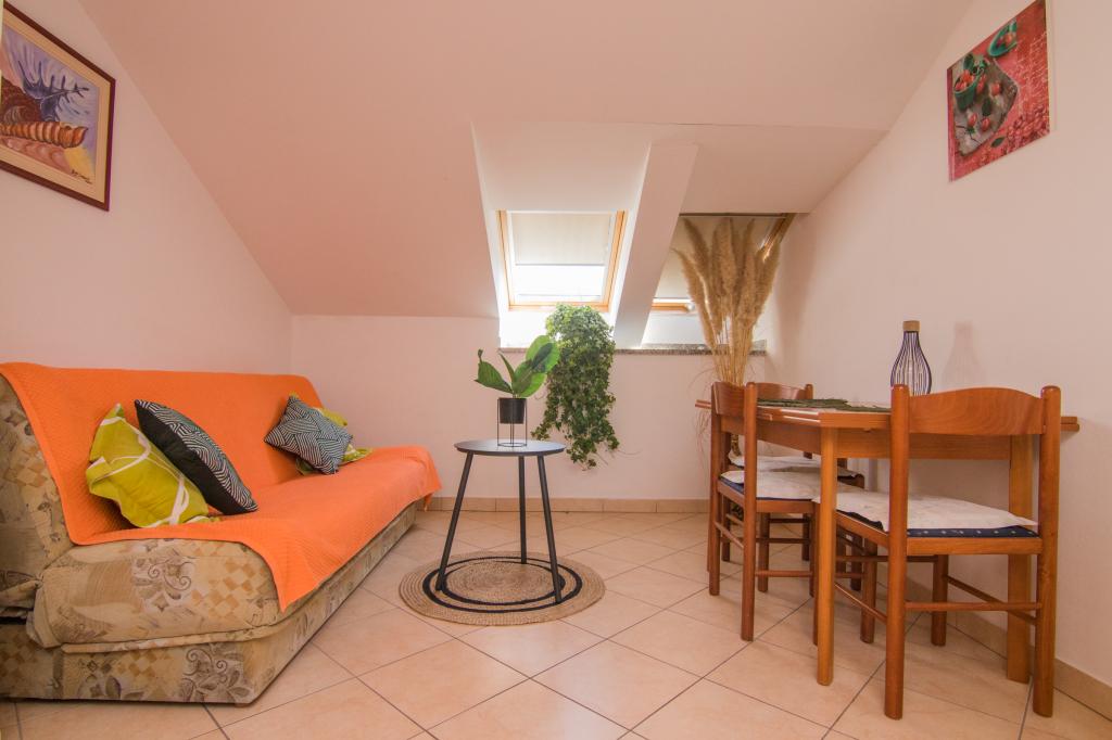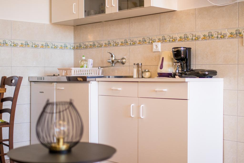 Casa este situată chiar în centrul orașului, la doar 90 m de mare și de o frumoasă promenadă cu numeroase restaurante, cafenele și alte facilități. Oaspeții pot găsi magazine, o bancă, un oficiu poștal, o farmacie și altele asemenea în apropierea casei. Curtea casei este spatioasa unde este suficient spatiu pentru parcarea masinilor oaspetilor. Este înconjurat de plante și flori mediteraneene. Oaspeții pot folosi și grătarul comun situat în spatele casei. Toate apartamentele au terasă sau balcon, iar unele unități au chiar și două terase sau două balcoane. Cartierul este linistit si sigur. Din unele apartamente se vede marea. Fiecare unitate are aer condiționat, TV prin satelit, internet și aparat de cafea cu filtru.