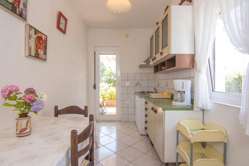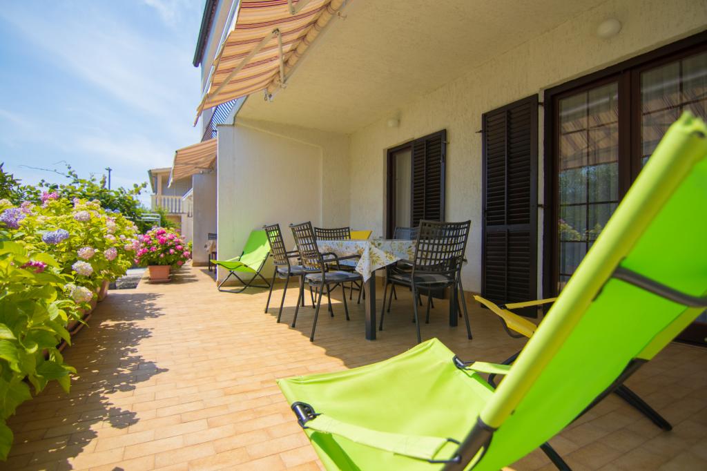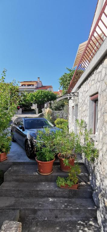 Casa noastră cu apartamente este situată într-o zonă liniștită din Krk. Apartamentele sunt situate la parter, una lângă alta. Sunt echipate modern. Fiecare are propria terasă, înconjurată de flori de hortensie. , cu vedere la grădină. Parcarea este în curte, acoperită cu copertină. Plaja PLAV este la 2-3 minute de mers pe jos de casa noastră. Proprietarii locuiesc la primul etaj al casei.