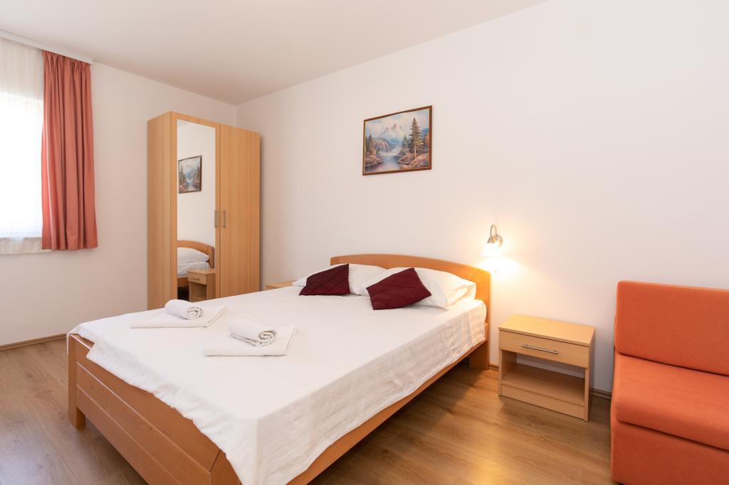 Citește mai mult Unități de cazare- Check-in: de la ora 15:00 în ziua sosirii / Check-out: până la ora 10:00 în ziua plecării - Confirmarea rezervării este valabilă după plata a 30% din suma totală a rezervării în contul specificat în ofertă, fiind necesară trimiterea unei copii a plății, după care veți primi confirmarea rezervării. - Restul sumei se plătește în numerar în ziua sosirii sau în contul bancar unde a fost plătit avansul, cu cel puțin 7 zile înainte de sosire. Costuri suplimentare: - Înregistrare: 7 EUR de persoană o singură dată - Curățenie finală per apartament: 20 EUR