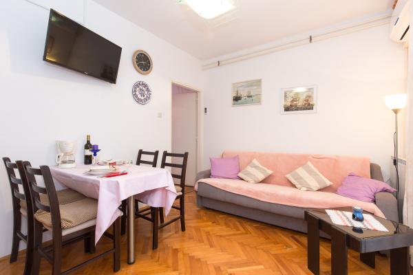 Casa este situată într-o locație liniștită în orașul Krk, un grătar, și posibilitatea de a folosi un grătar electric. Fiecare apartament are o bucătărie complet echipată (vase, tigăi, farfurii, filtru de cafea), iar baia este dotată cu uscător de păr, puteți folosi mașina de spălat.