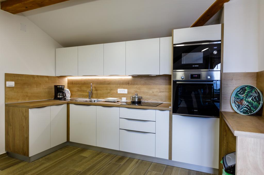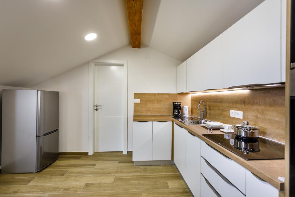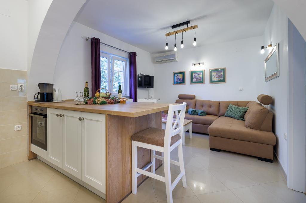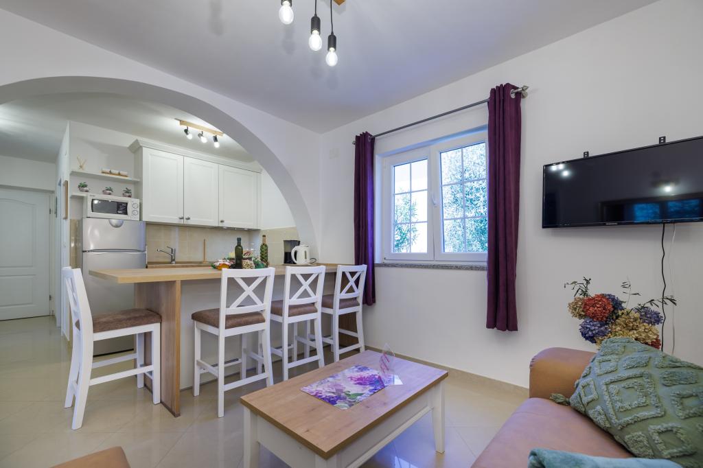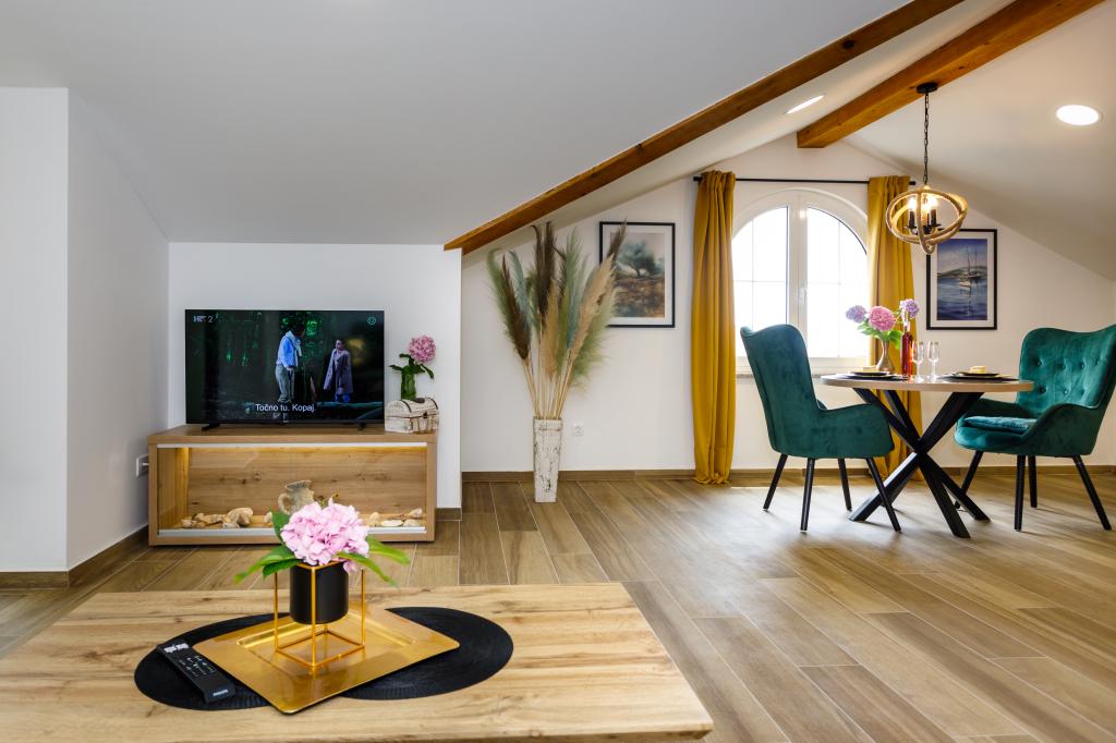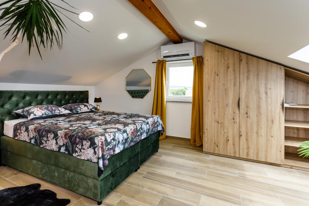 Noi apartamente moderne într-o locație liniștită, Krka și atractiv, cu vedere la mare. Casa este situat la 300 de metri de plajă și la 700 de metri de centru. Cladirea are parcare proprie și grădină. Apartamentele sunt bine echipate și confortabile pentru sejurul dumneavoastra.
