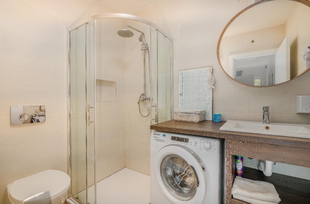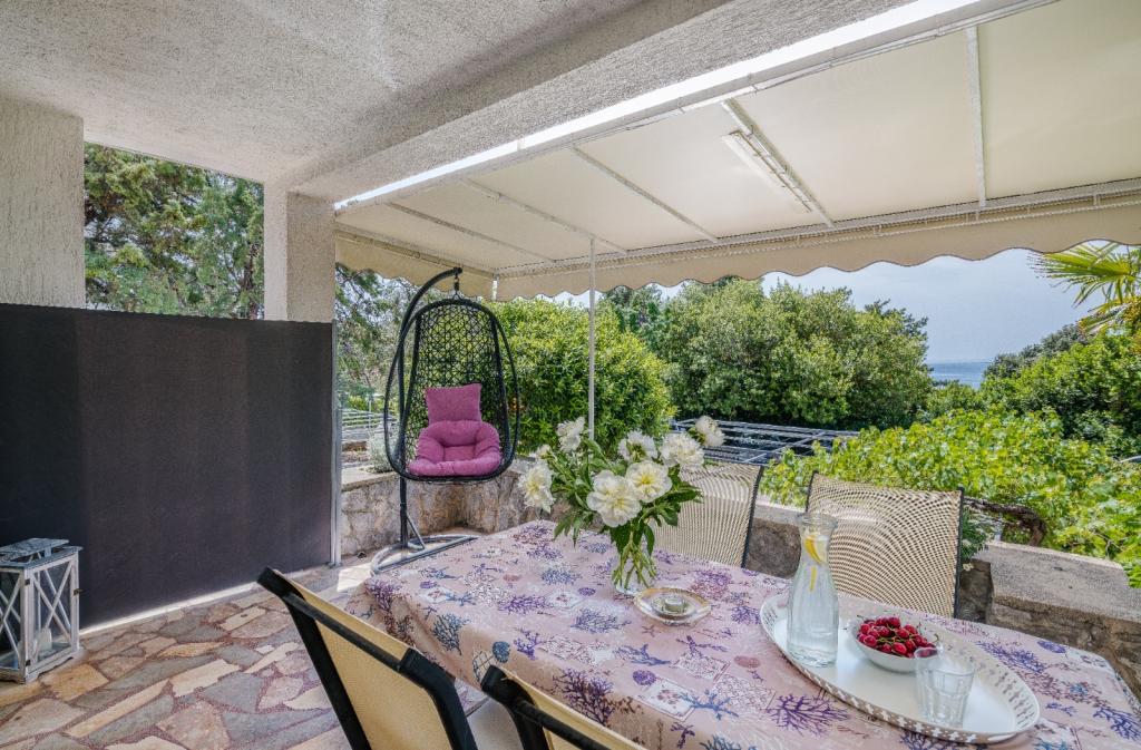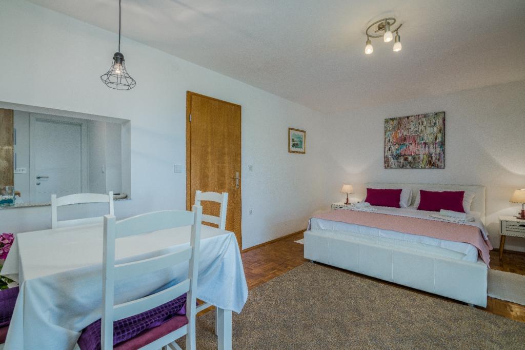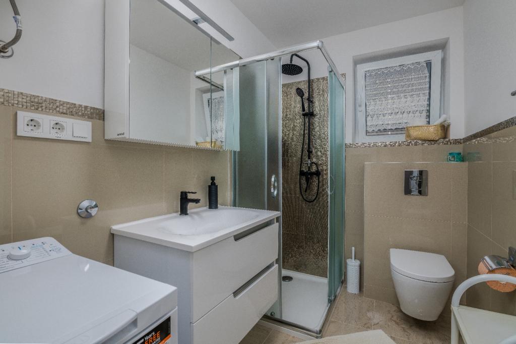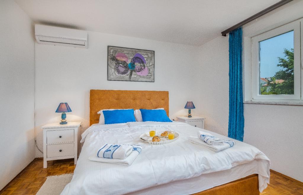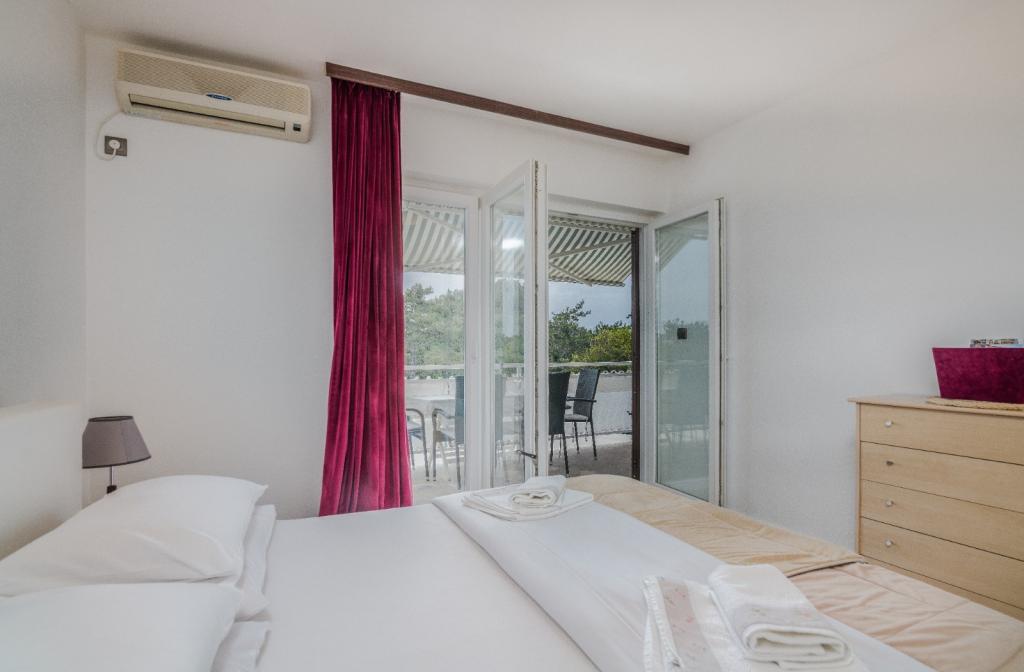 Apartments Nada sunt situate într-o locație atractivă în orașul Krk, la doar 100 de metri de mare și la 10 minute de mers pe jos de centrul orașului. Apartamentele au vedere la mare, sunt inconjurate de verdeata si o curte spatioasa. Inchiriem 3 unitati. Apartamentul 1, categorizat cu 4 stele, suprafata de 55 m2, este format din doua dormitoare separate, fiecare cu balcon si o baie cu toaleta si dus, paturi 160x200, bucatarie separata cu living. Apartamentele 2 și 3 sunt de categoria 3 stele, cu o suprafață de 46 m2, au un dormitor separat cu un pat de 160x200 și un living mai mare cu un pat de 160x200. Toate apartamentele sunt decorate modern și au mașină de spălat, mașină de spălat vase, TV LED, cuptor, cuptor cu microunde, prăjitor de pâine, aparat Nespresso... Toate camerele din apartament sunt dotate cu aer condiționat. În apropierea apartamentului se află plajele populare Dražica și Punta Di Galetto. Siturile istorice sunt la 500 de metri de apartament, de ex. Cetatea Krk. Cel mai apropiat aeroport este Aeroportul Rijeka, situat la 25 km de proprietate.