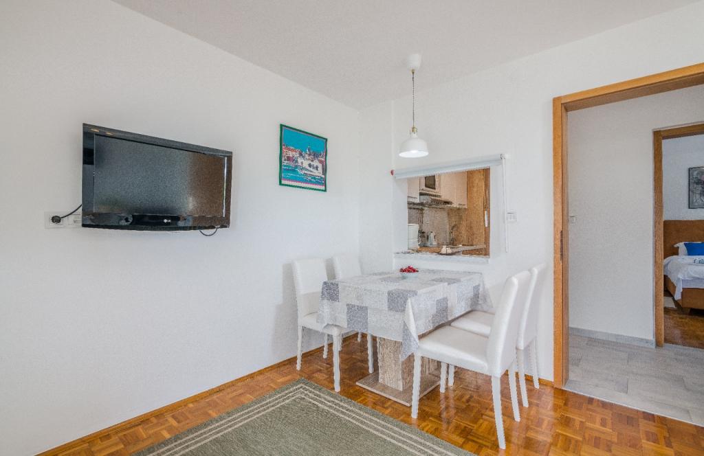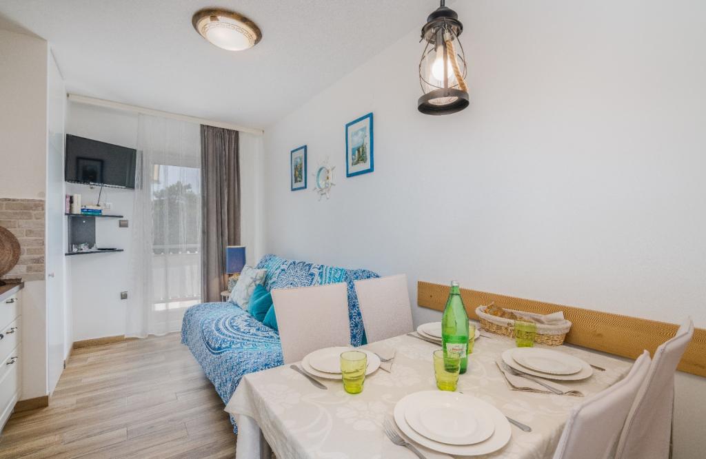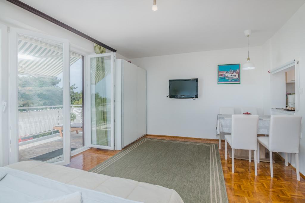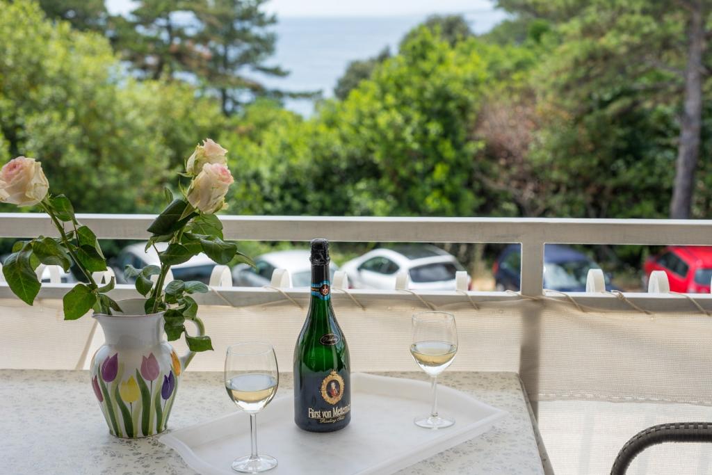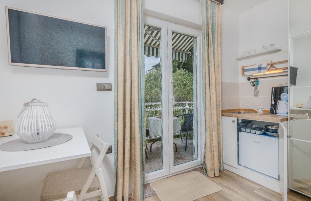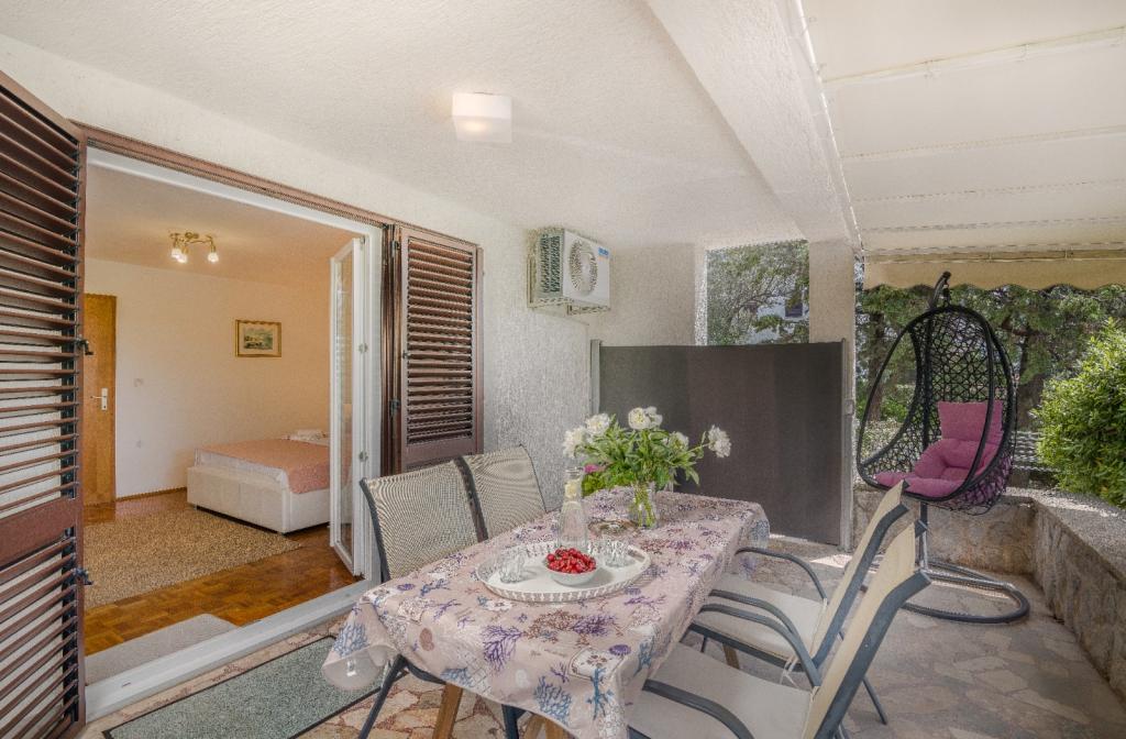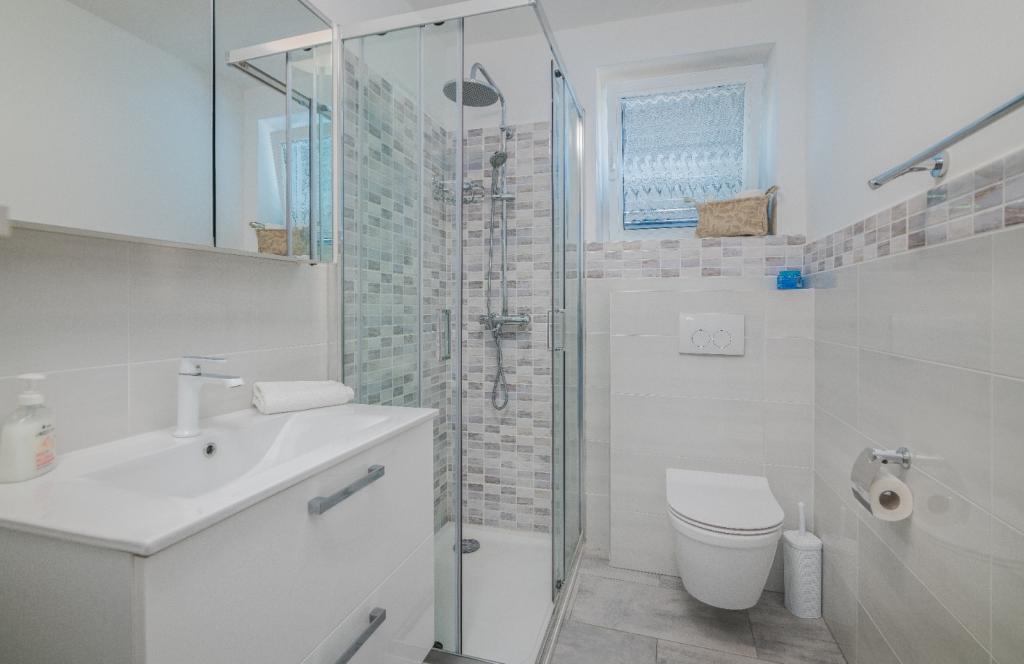 Apartments Nada sunt situate într-o locație atractivă în orașul Krk, la doar 100 de metri de mare și la 10 minute de mers pe jos de centrul orașului. Apartamentele au vedere la mare, sunt inconjurate de verdeata si o curte spatioasa. Inchiriem 3 unitati. Apartamentul 1, categorizat cu 4 stele, suprafata de 55 m2, este format din doua dormitoare separate, fiecare cu balcon si o baie cu toaleta si dus, paturi 160x200, bucatarie separata cu living. Apartamentele 2 și 3 sunt de categoria 3 stele, cu o suprafață de 46 m2, au un dormitor separat cu un pat de 160x200 și un living mai mare cu un pat de 160x200. Toate apartamentele sunt decorate modern și au mașină de spălat, mașină de spălat vase, TV LED, cuptor, cuptor cu microunde, prăjitor de pâine, aparat Nespresso... Toate camerele din apartament sunt dotate cu aer condiționat. În apropierea apartamentului se află plajele populare Dražica și Punta Di Galetto. Siturile istorice sunt la 500 de metri de apartament, de ex. Cetatea Krk. Cel mai apropiat aeroport este Aeroportul Rijeka, situat la 25 km de proprietate.