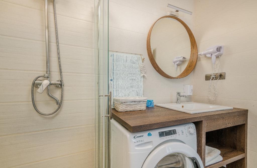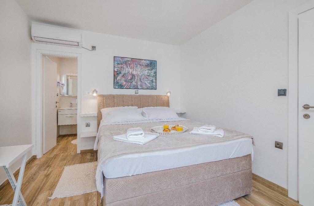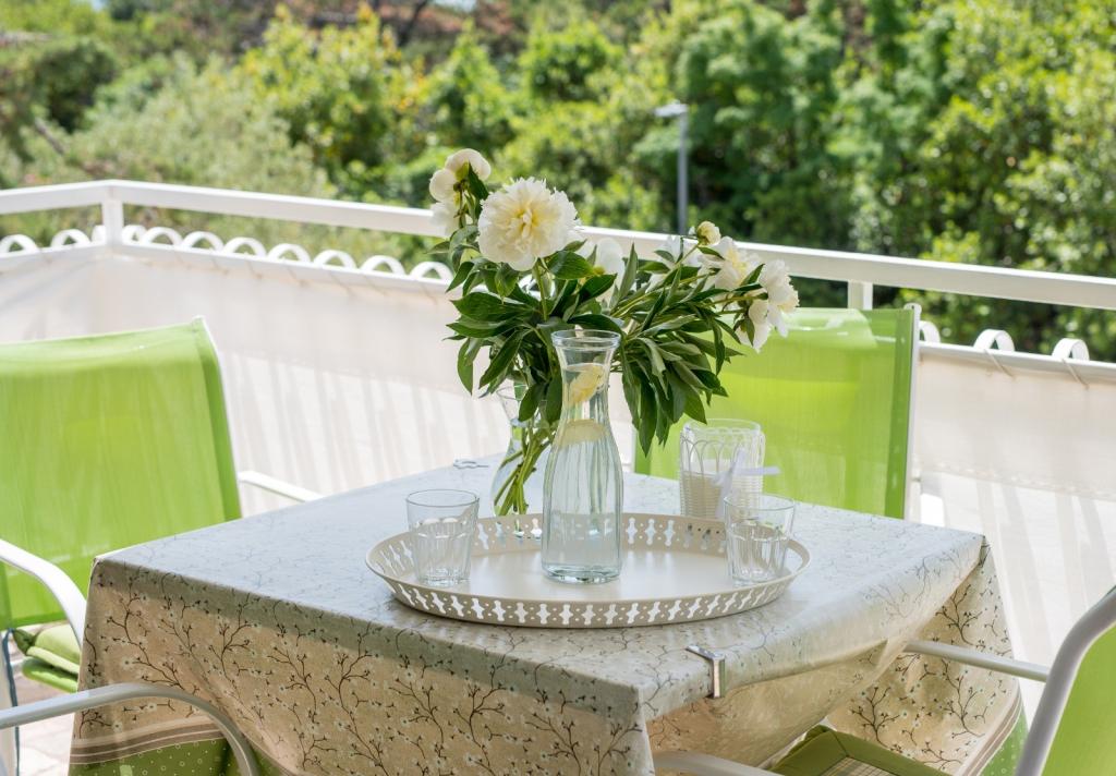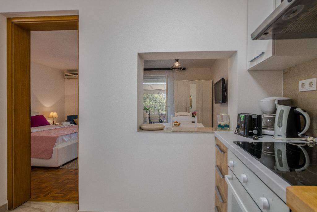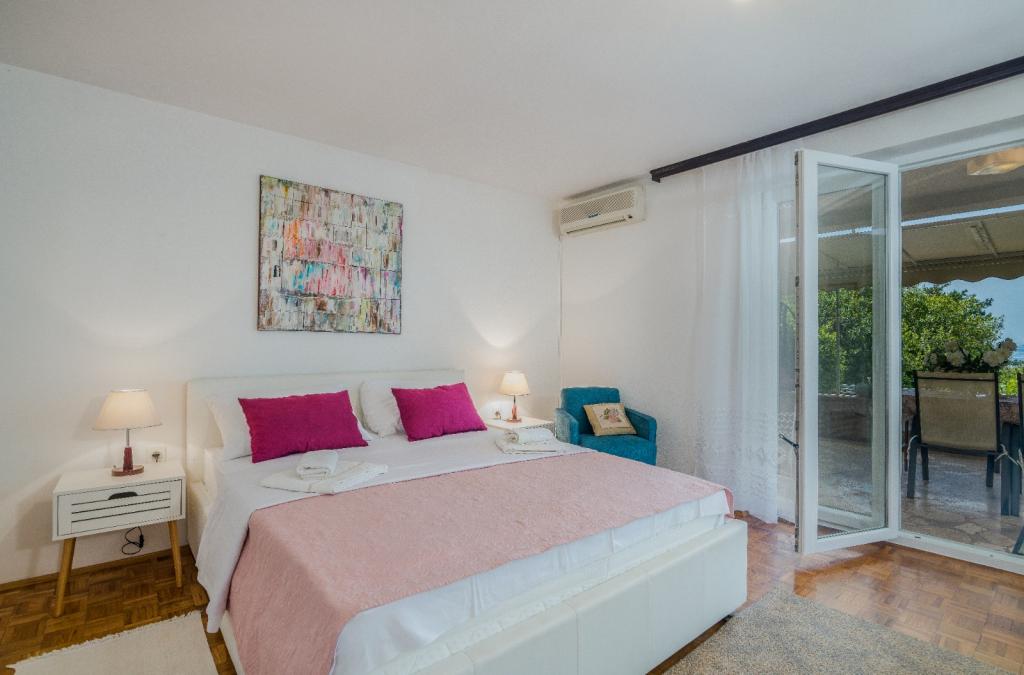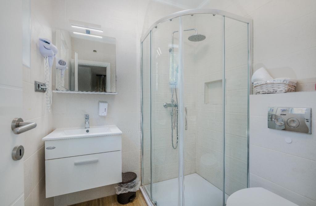 Apartments Nada sunt situate într-o locație atractivă în orașul Krk, la doar 100 de metri de mare și la 10 minute de mers pe jos de centrul orașului. Apartamentele au vedere la mare, sunt inconjurate de verdeata si o curte spatioasa. Inchiriem 3 unitati. Apartamentul 1, categorizat cu 4 stele, suprafata de 55 m2, este format din doua dormitoare separate, fiecare cu balcon si o baie cu toaleta si dus, paturi 160x200, bucatarie separata cu living. Apartamentele 2 și 3 sunt de categoria 3 stele, cu o suprafață de 46 m2, au un dormitor separat cu un pat de 160x200 și un living mai mare cu un pat de 160x200. Toate apartamentele sunt decorate modern și au mașină de spălat, mașină de spălat vase, TV LED, cuptor, cuptor cu microunde, prăjitor de pâine, aparat Nespresso... Toate camerele din apartament sunt dotate cu aer condiționat. În apropierea apartamentului se află plajele populare Dražica și Punta Di Galetto. Siturile istorice sunt la 500 de metri de apartament, de ex. Cetatea Krk. Cel mai apropiat aeroport este Aeroportul Rijeka, situat la 25 km de proprietate.