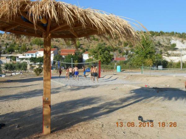 Pe plajă există facilități pentru: fotbal, tenis, bagminton, leagăne pentru copii, zona de bowling. Plaja în sine are o ușoară intrare în mare (pentru copii și înotători inferiori) și este acoperită cu pietriș. Există, de asemenea, o parte a plajei stâncoase, cu tot mai puțin adâncime pentru scufundări și unde există scări pentru a ieși din mare. Plaja are, de asemenea, o parte naturală, cu o coastă stâncoasă, unde înot și plajă sunt de asemenea posibile. Caffebar chiar pe plajă. La 1000 m distanță se află gura Zrmanja, unde este posibilă plutirea. Frumosele Peșteri Cerovec (17 km) cu stalactite. Vizită la Zadar cu multe muzee și antichități, organe de mare (ca o raritate în lume) și felicitări la soare (30 km). Plitvice Lacuri aproximativ 70 km. Parcul Național Paklenica, cascade Krka. .