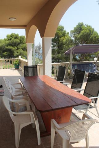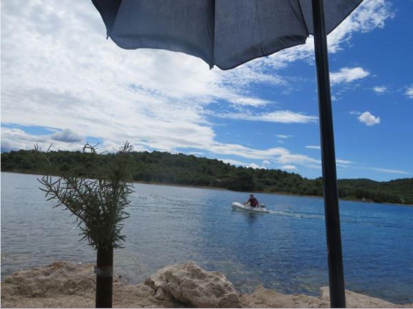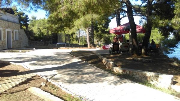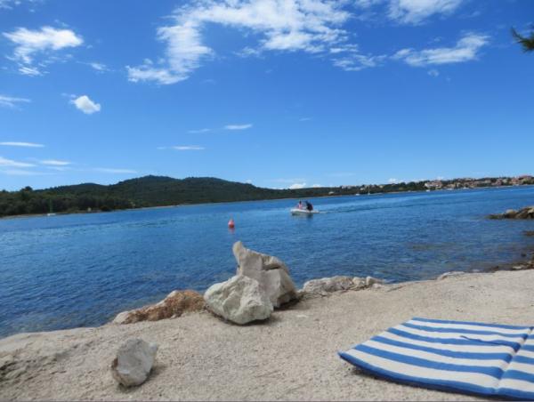 Împrejurimile casei frumoase, pentru închirierea de șezlonguri, cercuri de înot. În jurul casei ședinței, agățat leagăne, cazare lângă mare. Dar casa este situată într-un canal, trecând cu 1000 de nave în fiecare zi, mergând aproape, astfel încât nu mai puteți înota niciunde, de dimineața până seara de la valurile mari, marea și frigul, puțin mai departe în spatele bisericii este o plajă de piatră, intrarea în mare, dar o mizerie incredibilă. Locuința corespunde fotografiilor, dar nu este scris în altă parte că aveți o terasă comună cu alte persoane cu care vă uitați la farfurie.