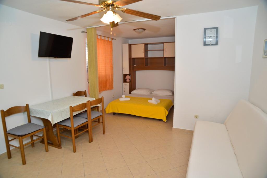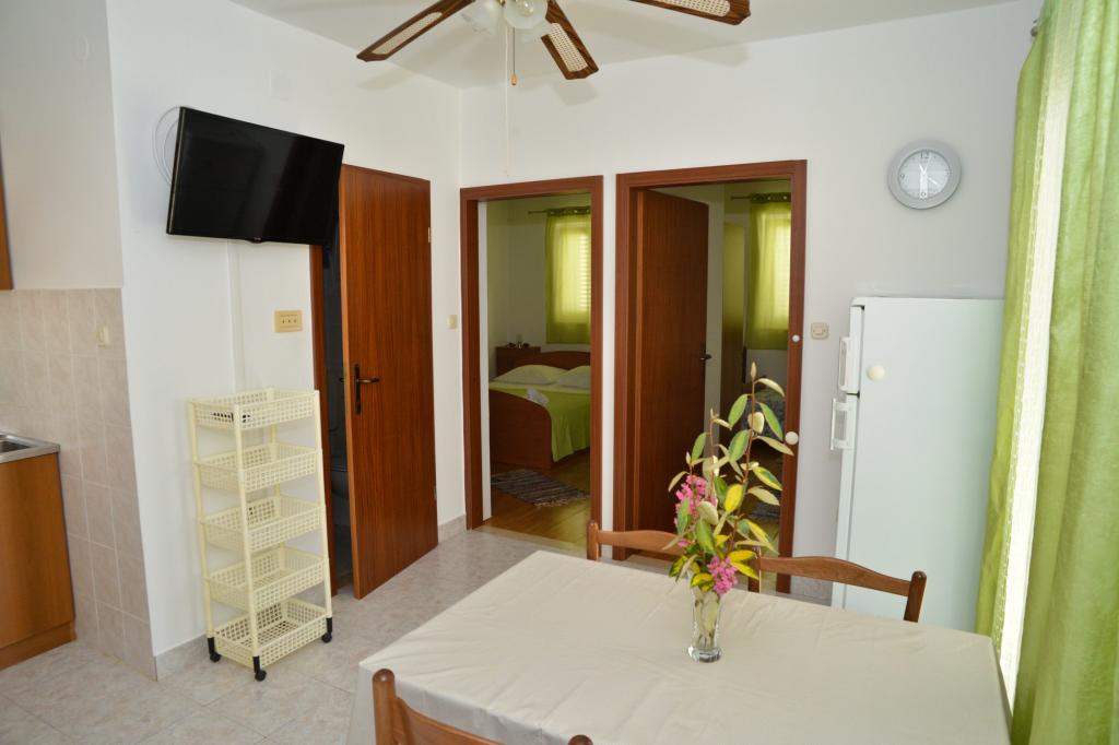 Insula Ugljan se află vizavi de Zadar și are legături foarte bune de feriboturi cu Zadar și Biograd. Orașul Kukljica este situat în golful cu același nume, care este închis pe latura de nord de o peninsulă împădurită. Vara, este plin de diverse activități culturale și sportive, cu o viață de noapte bogată. Apartamentele sunt situate într-o zonă liniștită și liniștită a orașului, de unde puteți ajunge rapid la toate plajele locale. Toate apartamentele sunt situate pe al doilea rând la mare, cu excepția garsonierei, care este situată pe primul rând la mare. Distanta fata de centrul orasului, unde se afla toate facilitatile necesare, este de 5 minute de mers pe jos. Cea mai apropiată plajă este la 2 minute de mers pe jos. Oaspeții pot folosi grătarul din grădină. Toate apartamentele sunt dotate cu TV/sat și WiFi. Toate apartamentele au aer condiționat.