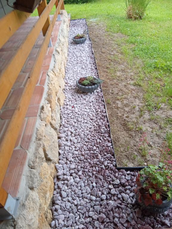 Casa de vacanță este situată pe un deal mic, cu o vedere frumoasă la valea Sutlan și Slovenia. Această casă prefabricată conține 2 dormitoare, o baie cu cabină de duș și încălzire prin pardoseală, un living mare cu televizor și acces la MAX tv și WIFI, o bucătărie mare cu echipament de gătit și mașină de spălat vase. In living se afla un semineu mare cu lemne de lut, iar casa are centrala termica pe gaz. Adiacent casei se afla o terasa acoperita in aer liber unde este o scuipa mare/gratar si un cuptor de paine. Terasa poate găzdui până la 20 de persoane. În spatele casei se află un loc destinat parcării mai multor vehicule.
