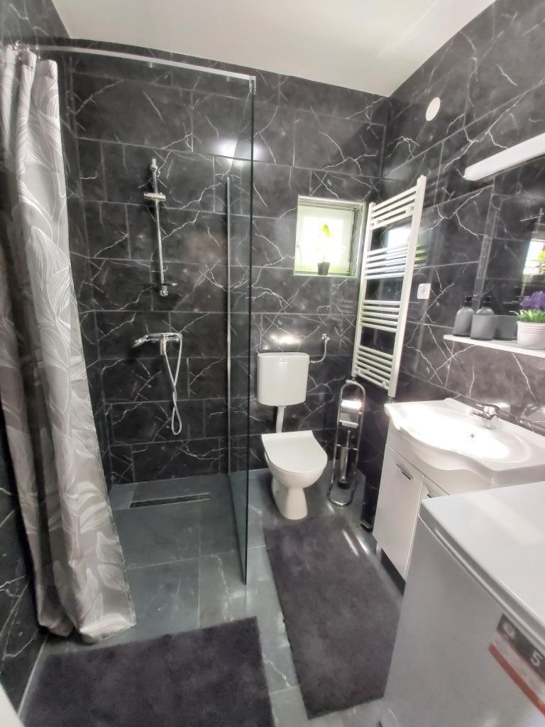 Garsoniera noua, complet utilata. Este destinat pentru două persoane, cu bucătărie complet utilată (cuptor cu microunde, frigider, aragaz, ceainic...), baie cu cabină de duș și mașină de spălat, sufragerie, pat matrimonial confortabil, dulapuri, TV (cont Netflix inclus) si terasa utilata. WiFi gratuit. Cartier linistit si linistit, ideal pentru vacanta si nu departe de mijloacele de transport in comun (tren, autobuz). Parcare securizată. De asemenea, este posibil să închiriați o vacanță zilnică fără o noapte de ședere.