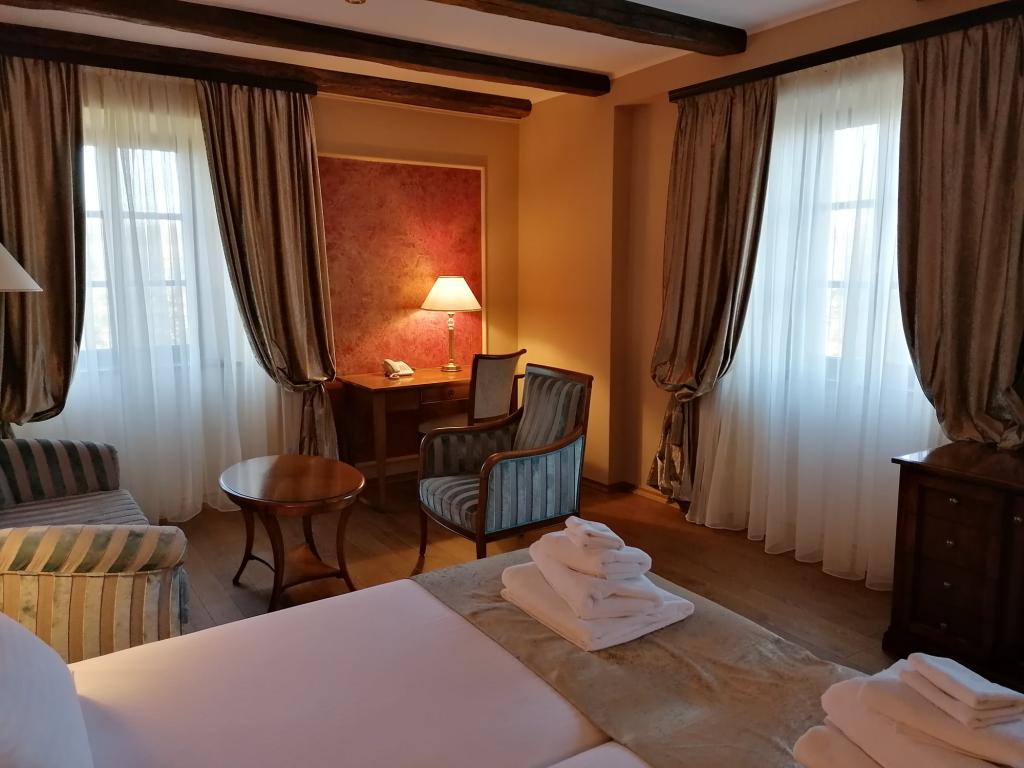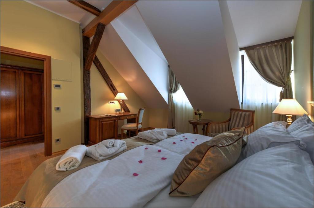 Hotelul Dvorac Jurjevec este situat în Lekenik și are un restaurant, bar, grădină și WiFi gratuit. Toate unitățile acestui hotel de 4 stele oferă vedere la oraș. De asemenea, oaspeții se pot bucura de piscina interioară și cada cu hidromasaj. Parcarea privată este disponibilă la un cost suplimentar. Camerele cu aer condiționat au dulap, seif, TV cu ecran plat și baie privată cu cadă. Toate camerele Hotelului Dvorac Jurjevec includ lenjerie de pat și prosoape. În această unitate de 4 stele, vă puteți relaxa în saună și pe terasă. Zagreb este la 37 km de hotel, iar Karlovac este la 78 km. Cel mai apropiat aeroport este Aeroportul Franjo Tuđman din Zagreb, care este situat la 26 km de Hotelul Dvorac Jurjevec.