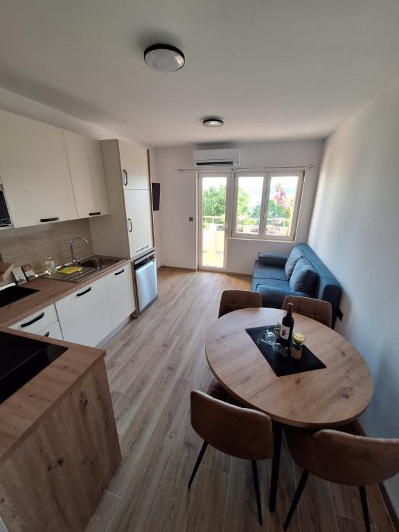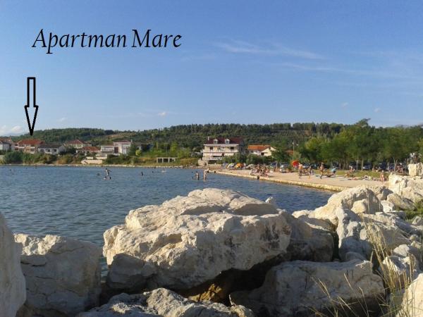 Casă de familie cu apartament recent renovat (A2+1). Terasă cu vedere la mare. Curte spațioasă, parcare, duș exterior. Locație liniștită, aproape de plajă cu nisip și loc de joacă pentru copii. Aproape de o pistă nouă de mountain bike și jogging prin plantații de măslini. Dormitor cu pat dublu și living deschis și pat suplimentar. TV în dormitor și living. Mașină de spălat vase și mașină de spălat rufe. Baie cu duș walk-in. Totul NOU!